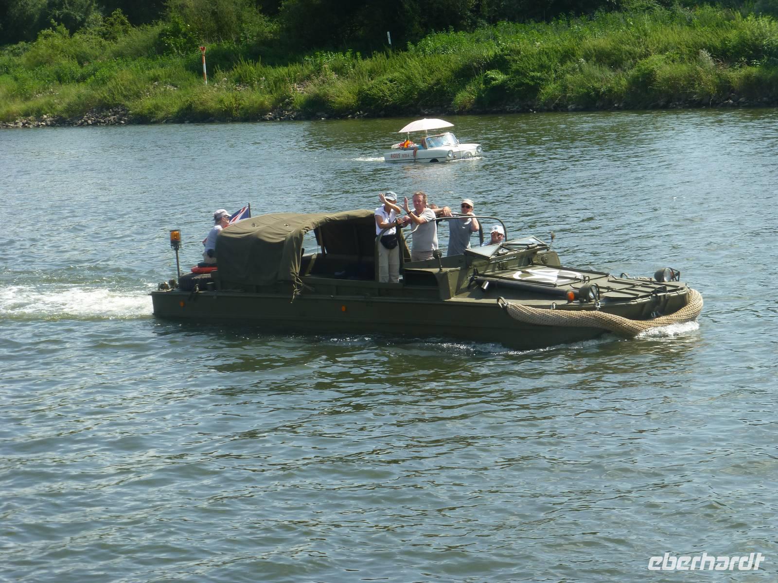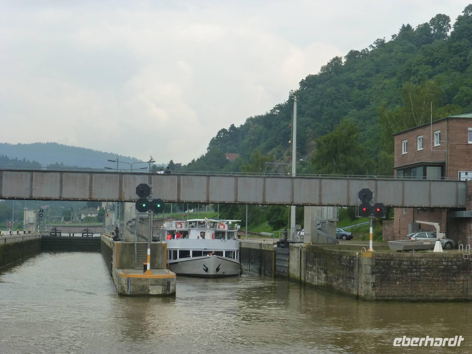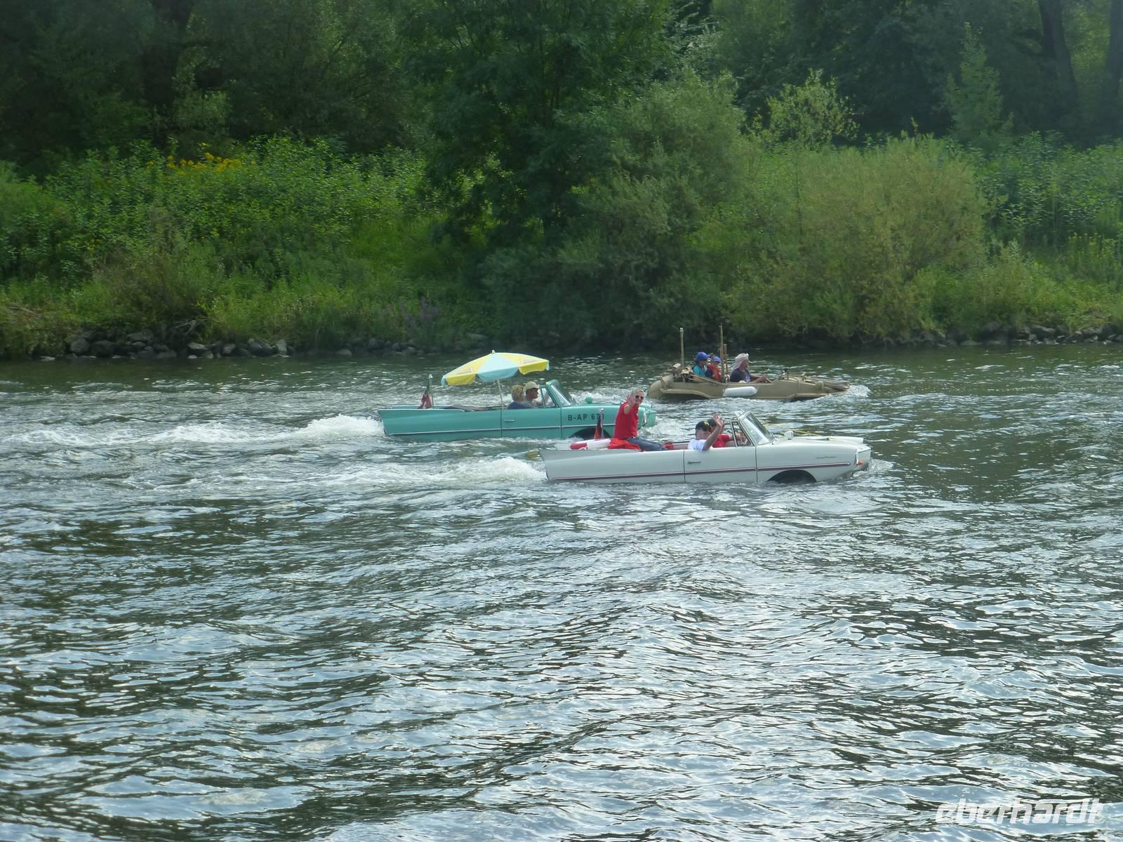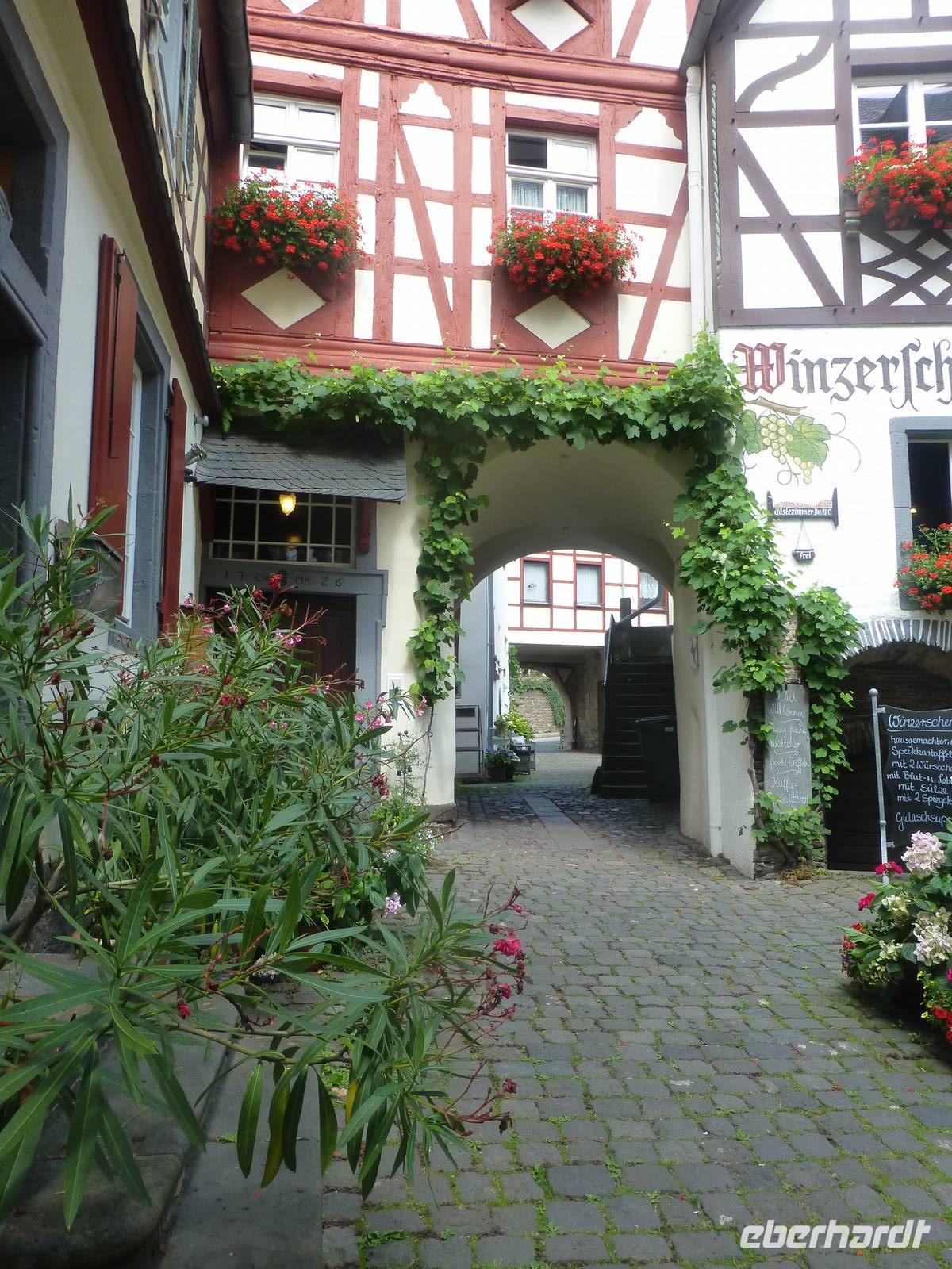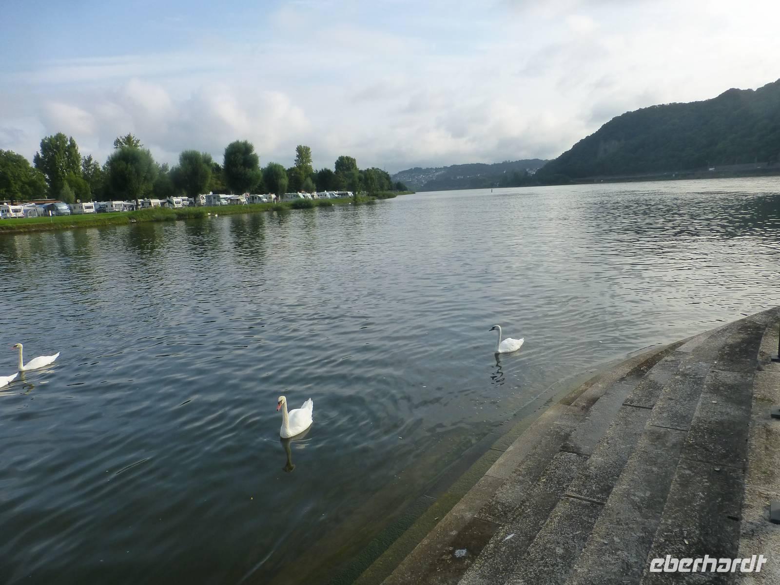 Über die Hunsrücker Höhenstrasse reisen wir heute an die Mosel. Unser erstes Ziel ist die idyllische Weinstadt Bernkastel Kues. Einer Legende nach stammt der Ortsname Bernkastel vom Begriff Bärenkessel. So lässt sich der Bär im Stadtwappen erklären, und im Bärenbrunnen finden wir gleich zwei als Brunnenfigur. Am historischen Marktplatz rund um den St.-Michaels-Brunnen stehen prächtig verzierte Giebelfachwerkhäuser aus dem 16. und 17. Jahrhundert sowie das markante Renaissance-Rathaus. Wir bummeln durch die verwinkelten Gassen des Winzerstädtchens, bevor es mit dem Schiff auf der Mosel weitergeht. Mit der "Europa" reisen wir bei strahlendem Sonnenschein bis Traben-Tarbach. Die Mosel schlängelt sich idyllisch durch weinbewachsene Berghänge. Kaum zu glauben, dass an diesen Steilhängen Wein angebaut werden kann. Plötzlich wieder eine Überraschung: Amphibienfahrzeuge kommen uns in großer Zahl entgegen. Die Eigentümer sind sichtlich stolz auf ihre fahr- und schiffbaren einzigartigen Kreationen. Kommt da ein schwimmender Trabi daher? Wir grüßen und winken und freuen uns an der "Prozession". Von Trabach geht es mit unserem Bus in die kleine, aber feine Stadt Beilstein. Diese ist recht schnell besichtigt, weil sie wirklich winzig ist, und so machen wir uns nach Cochem am Moselbogen auf. Auf den steilen Weinbergen der Umgebung gedeiht ein hervorragender Wein. Ein Weinladen neben dem anderen lädt zum Verkosten und Kaufen ein. Und das Cafe Flair wird von unserem Reiseleiter Volker wärmstens empfohlen. Deshalb begnügen wir uns mit einem Blick auf die mächtige Reichsburg, die stolz über der Stadt thront. Es war auch recht schwülwarm, ein Eis gerade recht. Die Stadt rühmt sich eines Kleinklimas, das 2 bis 3 Grad wärmer ist als anderswo...bis kurz vor Abfahrt ein schweres Gewitter ausbrach. Der Regen erwischte uns etwas heftig, aber die Sachen trockneten schnell wieder im Bus bei der Rückfahrt. Nach diesem erlebnisreichen Tag haben wir uns das deftige und reichhaltige Abendessen im Hotel redlich verdient.