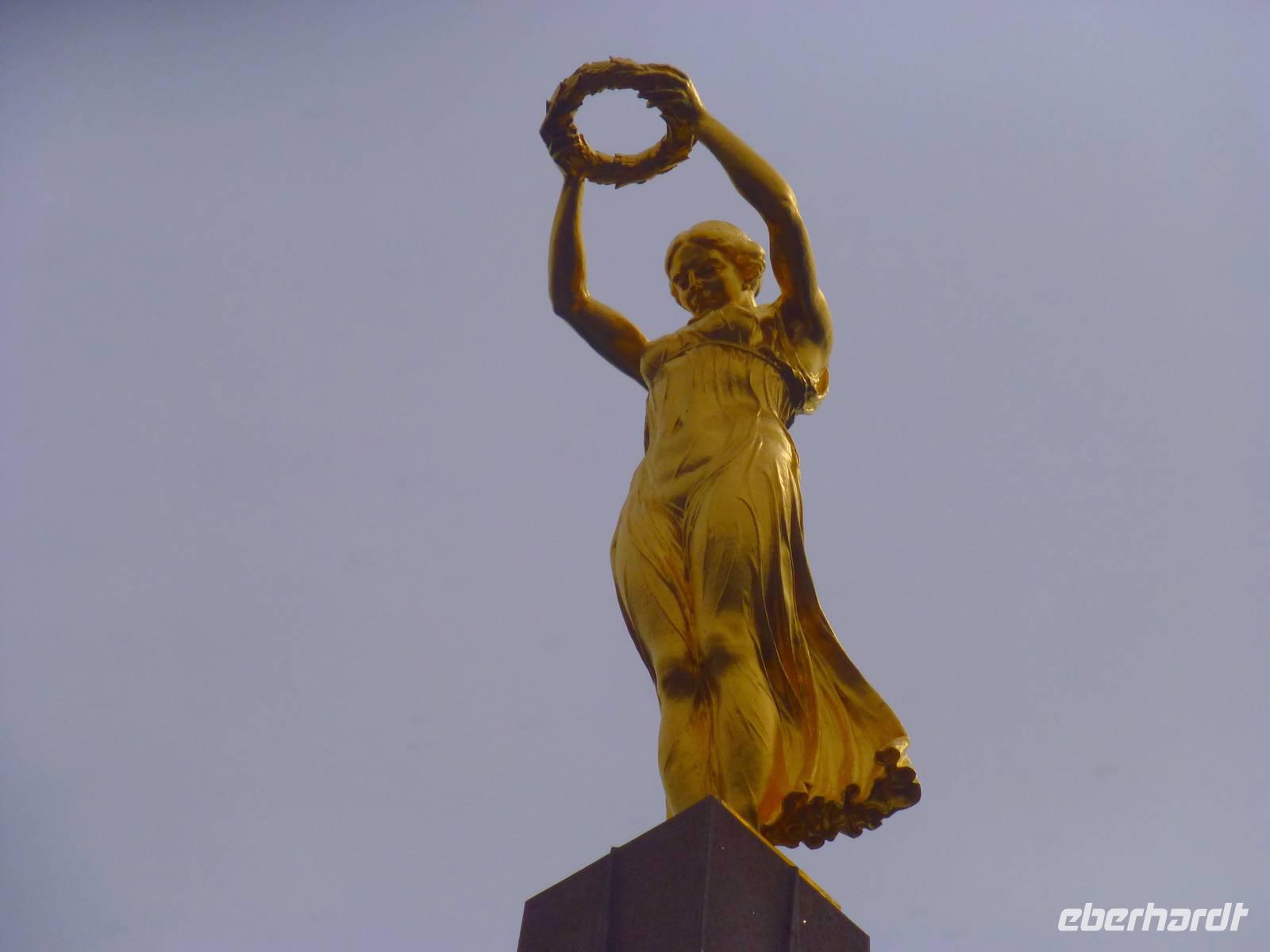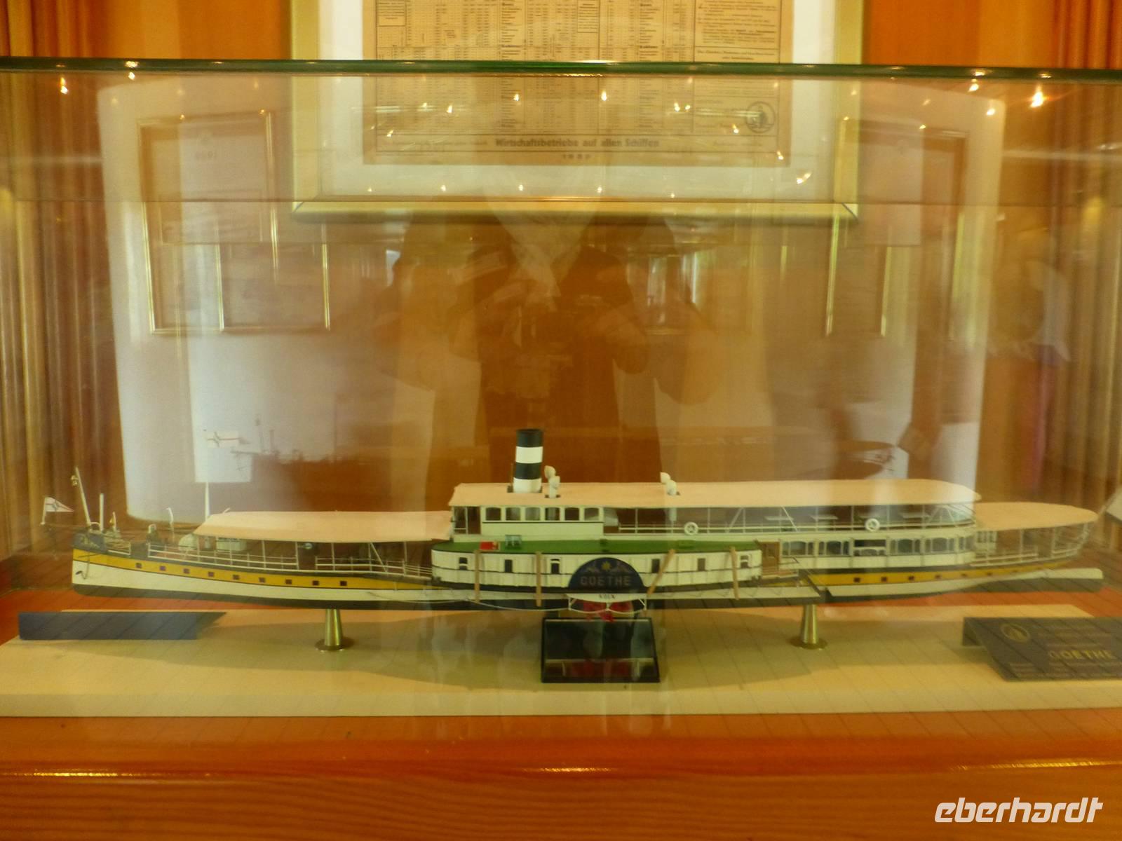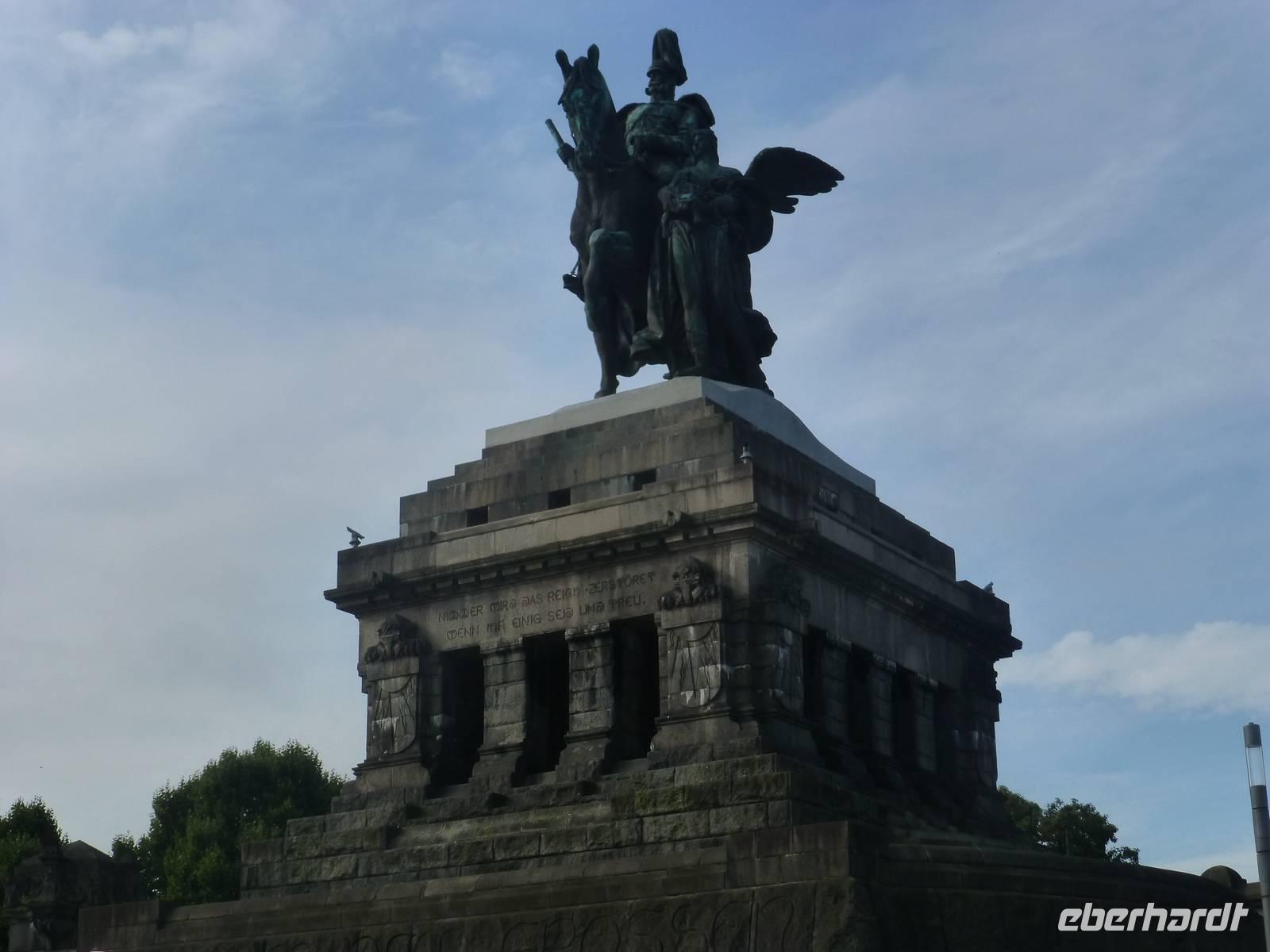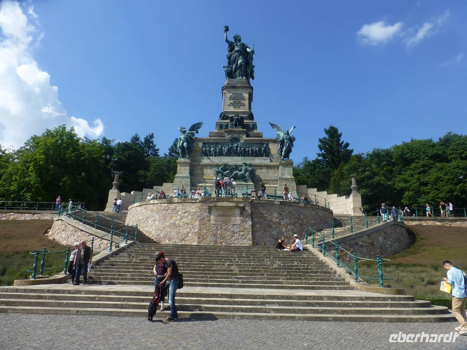 Heute heißt es, etwas zeitiger aufzustehen, denn der Höhepunkt der Reise - unsere Rhein-Schifffahrt - steht bevor. Wir erfreuen uns an der Morgenstimmung mit Frühnebel über dem Hunsrück auf unserer Fahrt nach Koblenz, der Stadt wo die Mosel sich mit dem Rhein vereinigt. Auf beiden Flüssen herrscht ein reger Verkehr an Lastkähnen, welche die verschiedensten Güter transportieren. Am Deutschen Eck, am Zusammenfluß von Rhein und Mosel, steht das national-patriotische Reiterstandbild des deutschen Kaisers Wilhelm I. Ein kurzer Spaziergang führt zur Bootsanlegestelle, wo schon der alte Schaufelraddampfer „Goethe" zur Abfahrt bereit steht, um uns in knapp sechs Stunden Rheinaufwärts nach Assmannshausen zu bringen. Wir empfanden es als angenehm, dass für uns ein Salon reserviert war. So hatten wir einen festen Platz, an dem wir uns immer wieder einfanden, wenn wir vom Schauen müde waren oder hungrig, denn hier wurden Speisen und Getränke serviert, zum Mittagessen waren wir alle im Salon beieinander. Wir befuhren den vielleicht schönsten Teil des Rheins, das zum Weltkulturerbe der UNESCO gehörende Mittel-Rhein-Gebiet. An uns zogen u.a. Schloss Stolzenfels, die Marksburg und die Burgen Katz und Maus vorbei. Bekannte Städte und Orte wie Boppard, St. Goar, St. Goarshausen, Oberwesel, Bacharach wurden von uns passiert. Der von allen Gästen erwarteten Höhepunkt der Schiffsfahrt erwartete uns am Flusskilometer 555. Hier, kurz nach St. Goarshausen, erhebt sich der Loreleyfelsen. Natürlich erschallt aus dem Schiffslautsprecher "Ich weiss nicht, was soll es bedeuten..." und jeder hält Ausschau nach der Jungfrau mit goldenem Kamme und güldenem Haar... nur unser Kapitän schaut auf die Klippen und umschifft alle Untiefen sicher. Weiter ging es vorbei an den sieben Jungfrauen und der Rheininsel Pfalz nach Assmannshausen, das von der Ruine Ehrenfels überragt wird. Mit dem Bus fuhren wir zum Niederwalddenkmal, das 1883 zur Erinnerung an den Deutsch/Französischen Krieg 1870/71 errichtet wurde. In 225 m Höhe über dem Rhein auf den Höhen des Niederwaldes gelegen, steht es mit einer Gesamthöhe von 37,6 m. Die oben darauf stehende „Germania" hat eine Höhe von 11,8 m. Vom Denkmal ereöffnet sich eine fantastische Aussicht auf den Rhein, die Mündung der Nahe und die Umgebung. Das Städtchen Rüdesheim hat einen magischen Klang. Wer hat nicht schon von der Drosselgasse gehört? Am Nachmittag gab es noch einen individuellen Besuch der Drosselgasse in Rüdesheim. Nun wollten wir, leicht ermüdet und voller Erlebnisse des Tages, möglichst schnell heim. Nur gibt es da ein Problem: Zwischen Koblenz und Wiesbaden/Mainz gibt es keine einzige Brücke, so dass man nur mit Fähren das andere Flußufer erreichen kann. Deshalb setzten wir mit der Auto-Fähre nach Bingen über und waren rechtzeitig im Hotel Beck zum Abendessen da. Familie Beck hatte noch eine Überraschung für jeden Gast. Zusätzlich zu netten Abschiedsworten gab es ein Gruppenfoto und eine individuelle Potraitaufnahme für jeden von uns, um die Reise auch fotografisch in Erinnerung zu behalten.
