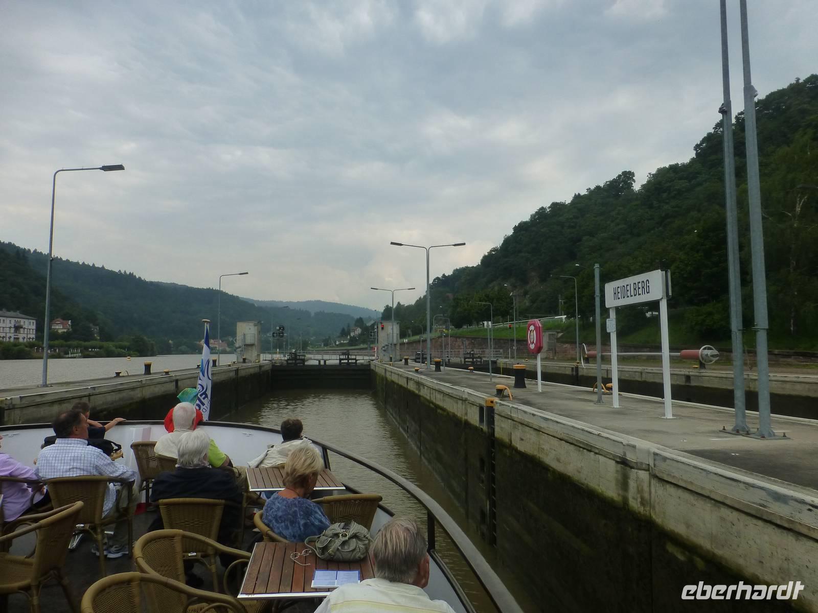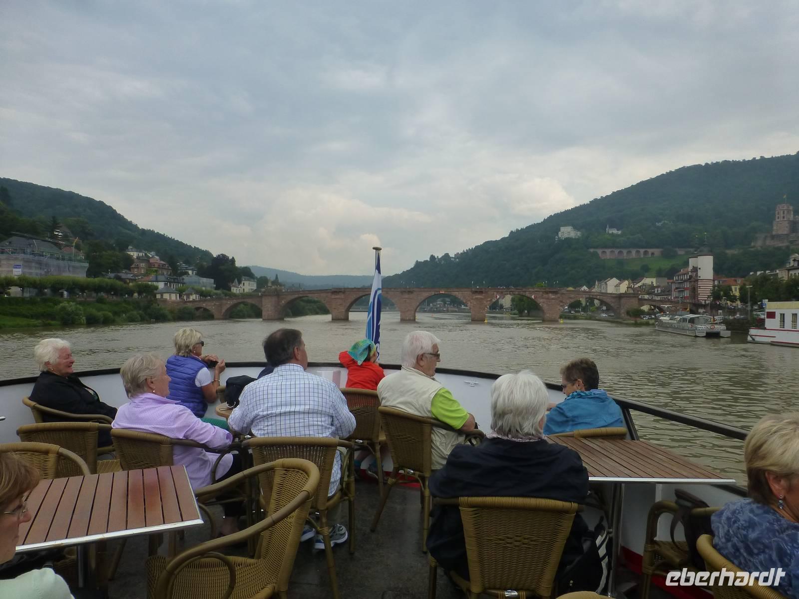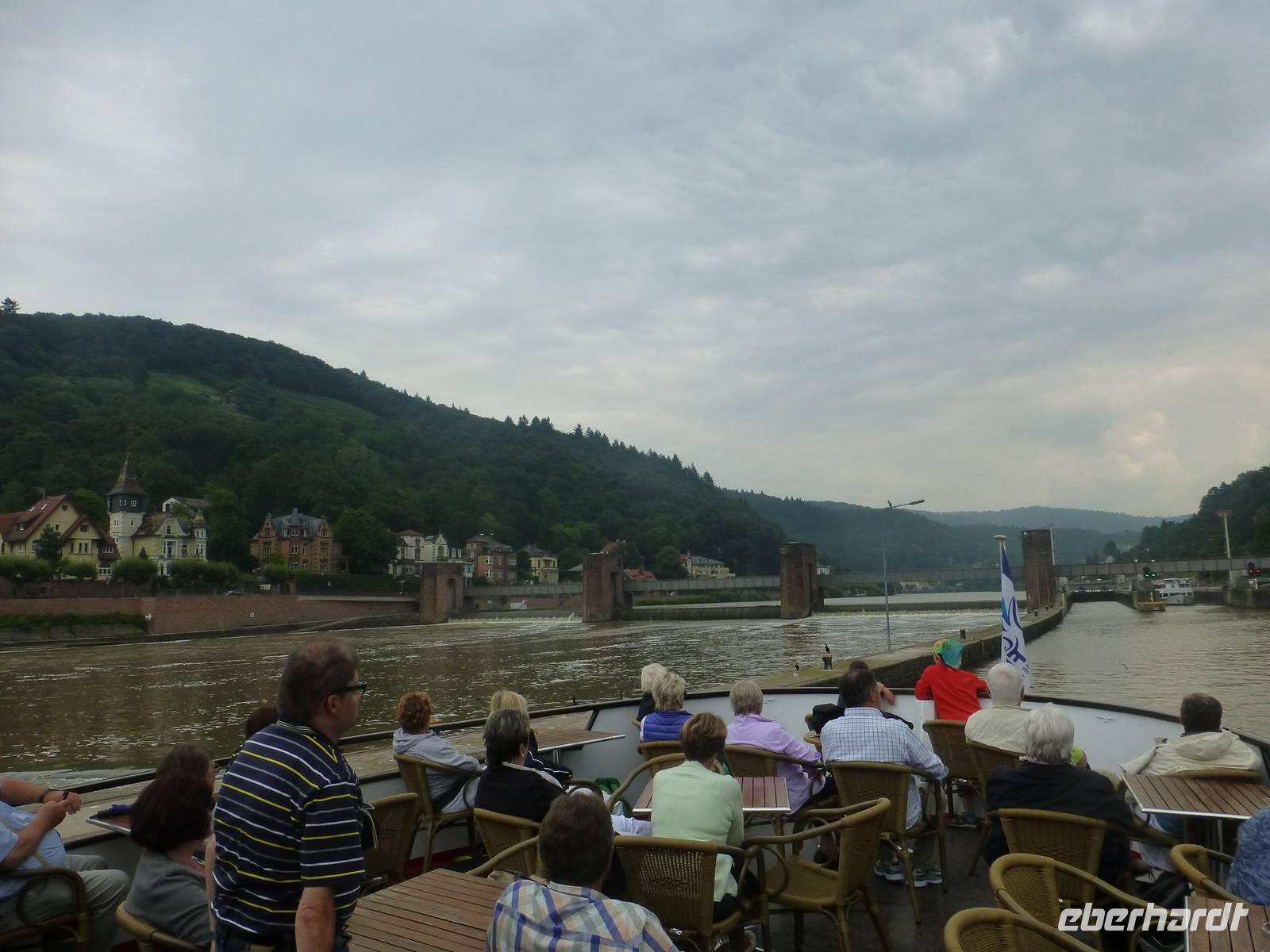 Für heute stand die Stadt Heidelberg auf unserem Programm. Wir fuhren zum berühmten Schloß. Die Künstler des 19. Jahrhunderts liebten Heidelberg und seine märchenhafte Schlossruine! Dichter wie Johann Wolfgang von Goethe, Friedrich Hölderlin oder Joseph von Eichendorff rühmten ihren Zauber in schwärmerischen Versen. Aquarelle, Zeichnungen und Gemälde zeigten das Schloss in romantischem Licht. Mit ihren Werke begründeten die Künstler den Ruhm von Schloss und Stadt. Schloss Heidelberg wurde zum Sinnbild der Romantik. Wir hatten anderthalb Stunden Zeit, uns die Architektur anzuschauen und das riesige Weinfass zu begehen, im Apotheker-Museum vorbeizuschauen oder im Park Spazieren zu gehen. Anschließend war Zeit für eine Mittagspause im Zentrum der ältesten Universitätsstadt Deutschlands mit ihren Sehenswürdigkeiten. Gespannt waren wir auf den nächsten Höhepunkt: Unsere Schifffahrt auf dem Neckar. Von Heidelberg bis Neckarsteinach wurden 2 Schleusen passiert, von den insgesamt 27 zwischen Heilbronn und der Mündung bei Mannheim. Auch heute war das Wetter schön, so dass wir die Landschaft des Odenwald mit seinen schönen Laubmischwäldern im Sonnenschein erlebten.