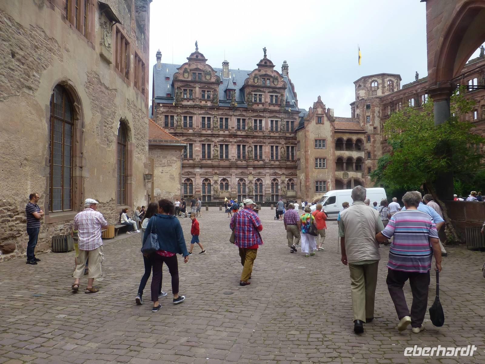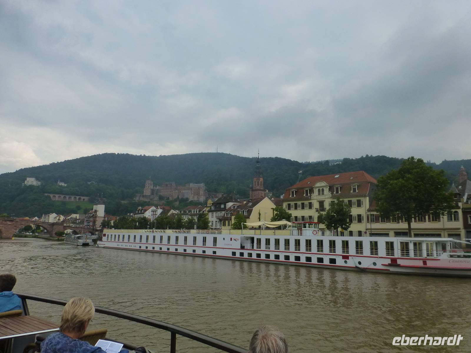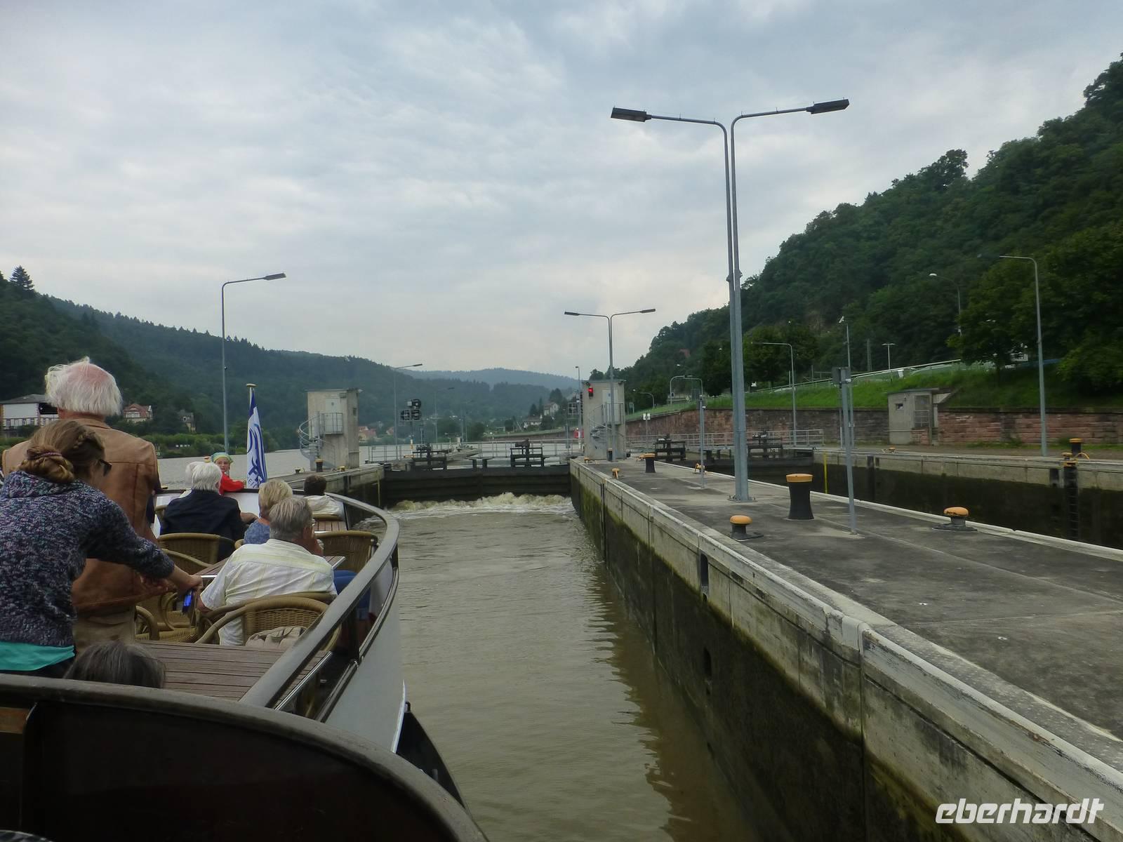 Für heute stand die Stadt Heidelberg auf unserem Programm. Wir fuhren zum berühmten Schloß. Die Künstler des 19. Jahrhunderts liebten Heidelberg und seine märchenhafte Schlossruine! Dichter wie Johann Wolfgang von Goethe, Friedrich Hölderlin oder Joseph von Eichendorff rühmten ihren Zauber in schwärmerischen Versen. Aquarelle, Zeichnungen und Gemälde zeigten das Schloss in romantischem Licht. Mit ihren Werke begründeten die Künstler den Ruhm von Schloss und Stadt. Schloss Heidelberg wurde zum Sinnbild der Romantik. Wir hatten anderthalb Stunden Zeit, uns die Architektur anzuschauen und das riesige Weinfass zu begehen, im Apotheker-Museum vorbeizuschauen oder im Park Spazieren zu gehen. Anschließend war Zeit für eine Mittagspause im Zentrum der ältesten Universitätsstadt Deutschlands mit ihren Sehenswürdigkeiten. Gespannt waren wir auf den nächsten Höhepunkt: Unsere Schifffahrt auf dem Neckar. Von Heidelberg bis Neckarsteinach wurden 2 Schleusen passiert, von den insgesamt 27 zwischen Heilbronn und der Mündung bei Mannheim. Auch heute war das Wetter schön, so dass wir die Landschaft des Odenwald mit seinen schönen Laubmischwäldern im Sonnenschein erlebten.