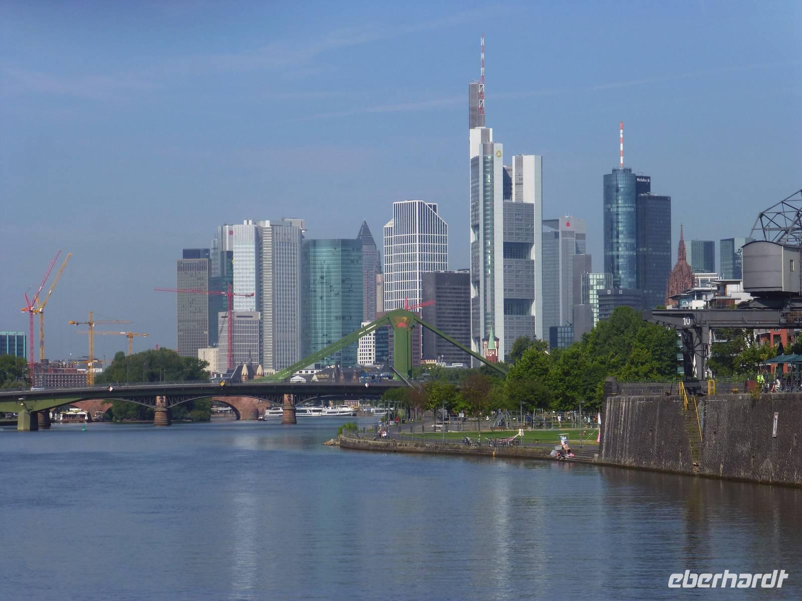 Wir beschlossen, erneut sehr früh aufzustehen, um noch etwas von Frankfurt am Main zu sehen. Die Schifffahrt auf dem Main wollte keiner vermissen. Die Reederei startete ihre Rundfahrt extra für uns etwas früher als im Fahrplan vorgesehen. Gemächlich zog die Silhouette der Stadt an uns vorbei. Einzigartig für Deutschland die Wolkenkratzer von "Mainhattan"! Das Wetter war sonnig-warm einladend zum Sitzen auf dem Oberdeck, und so wurde die Schifffahrt ein schöner Ausklang unserer Reise.