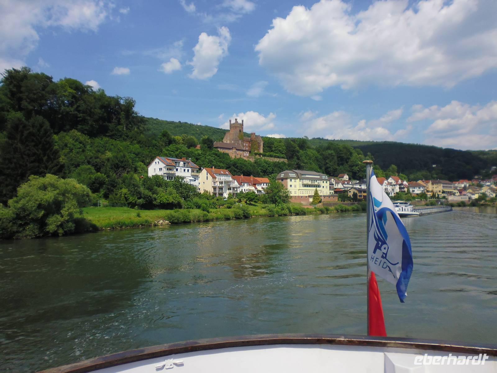 In Heidelberg am Schloss dagegen war schon reichlich Trubel. Vor allem japanische und amerikanische Gruppen strömten in den riesigen Renaissancebau. Unsere mit leicht angelsächsischem Akzent sprechende Führerin zeigte uns die schönsten Seiten des weitgehend zerstörten Bauensembles und erzählte von den wichtigsten kurpfälzischen Herrschern, die hier residierten. Natürlich hatte unser Reiseleiter im Bus bereits die wichtigsten kulturhistorischen Fakten und Zusammenhänge referiert, wie beispielsweise den Sinn und Inhalt der Kurwürde und die Bedeutung der Region für die Königswahlen, denn schließlich kamen vier von sieben Kurfürsten aus dem eng begrenzten Rhein-Main-Neckar-Gebiet. Anschließend bummelten die meisten Gäste durch die malerischen Straßen und Gassen der ältesten deutschen Studentenstadt. Die anschließende Bootsfahrt auf dem Neckar bei herrlichem Sonnenschein und mit Postkartenhimmel war ein einziges Vergnügen. Schon der Blick auf Heidelberg mit Schloss und steinerner Brücke vom Wasser aus war das Geld wert. Gleich hinter der Stadt wurde das Boot zum ersten Mal geschleust. Am alten Benediktinerinnekloster Neuburg stiegen allerhand Fahrgäste zu und eine zweite Schleuse war bei Neckargemünd zu absolvieren. Dieses Städtchen war Ende des 1. Jahrhunderts die erste rechtsrheinische Siedlung der Römer, verlor aber schon im Mittelalter einen Großteil seiner Bedeutung. Endstation war Neckarsteinach, der Ort mit den vier Burgen, die eher pittoresk als bedrohlich die Uferhänge schmücken. Von diesem malerischen Ort ging es dann zur Weinprobe auf das alte Weingut Paul Anheuser in Bad Kreuznach.