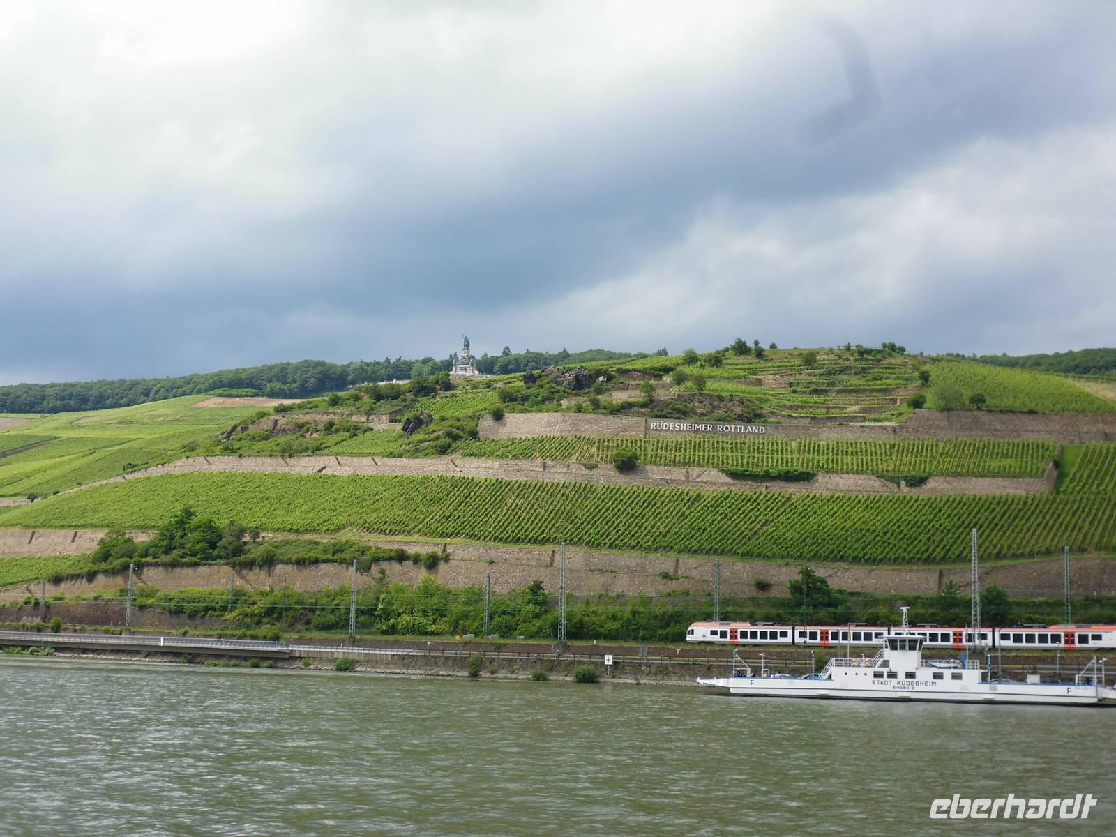 Die Fahrt ging vorbei an unzähligen Burgen und das Schiff nahm an mehreren alten Rheinstädten Gäste auf, genannt seien nur Boppard, St. Goar, ganz viele Passagiere in Bacherach und nach Bingen lag schon auf dem gegenüberliegenden Ufer der beliebte Weinort Rüdesheim. Natürlich fuhren wir auch an dem durch Heinrich Heines Gedicht so bekannten Lorleyfelsen vorbei. Kaum einer dürfte dagegen Heines geniale Romanfragment „Der Rabbi von Bacherach" kennen, auch wenn Tausende Amerikaner das hübsche Städtchen im Programm haben.