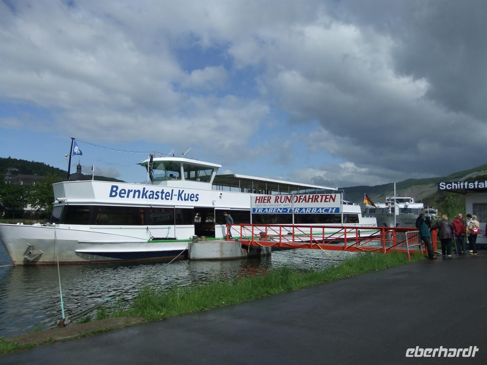 Dann startet unsere Moselschifffahrt. Entlang steiler Weinberge und idyllischer Weinorte fahren wir nach Traben-Trarbach. Dort erwartet uns schon Uwe, der das Würstchenessen vorbereitet hat. Gut gestärkt geht es mit dem Bus weiter nach Beilstein, dem "Schmuckstück an der Untermosel". Wenig später sehen wir schon die Reichsburg und sind in Cochem angekommen. Nach einem kleinen Rundgang durch die verwinkelten Gassen kehren die meisten Gäste in einem der vielen Cafes ein. Danach fahren wir noch ein Stück entlang der Mosel und dann wieder in den Hunsrück zu unserem Hotel.
