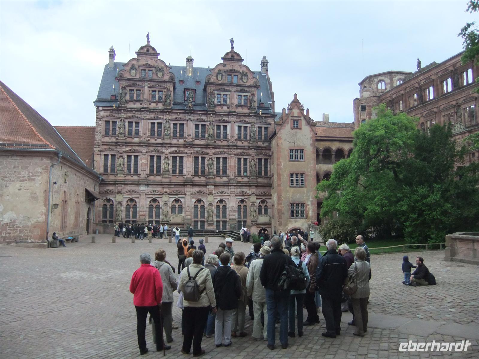 Unser Ausflugsziel ist heute Heidelberg. Vorbei an Alzey, Ludwigshafen und Mannheim fahren wir in die vielbesungene Universitätsstadt. Als erstes besuchen wir das Schloss, das als beliebtestes Touristenziel in Deutschland gilt. Sandor und Max unternehmen mit uns eine Führung im Schlosshof und zeigen uns auch Deutschlands größtes Weinfass.