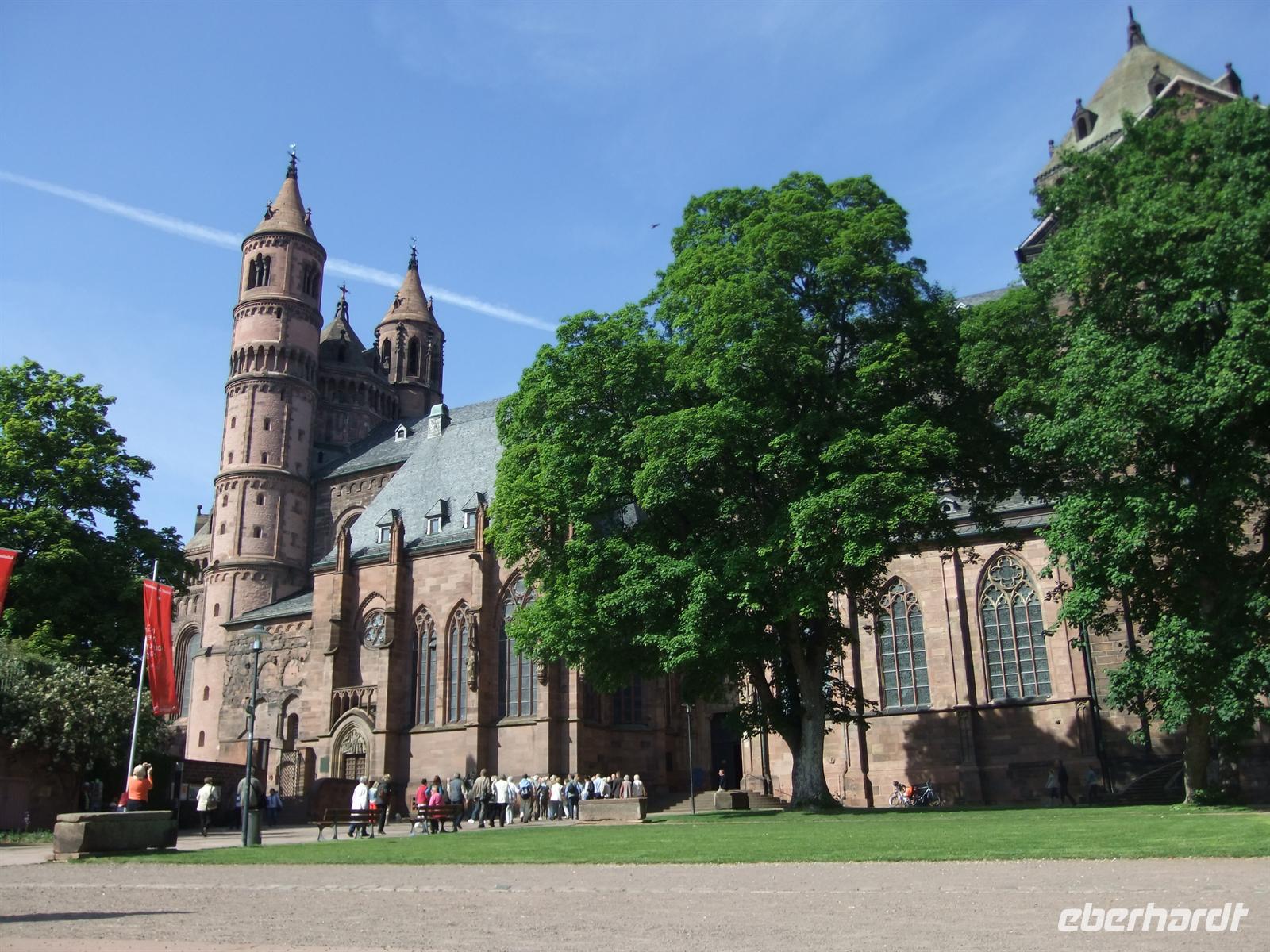 Danach besuchen wir das Apothekenmuseum und genießen den Blick von der Schlossterrasse auf Heidelberg und das Neckartal. Wieder unten in der Stadt bummeln die Gäste auf der längsten Fußgängerzone Deutschlands oder kehren in eine der vielen Studentenkneipen ein. Danach genießen wir die Schifffahrt auf dem Neckar. In Neckarsteinach legt die "Europa" wieder an und wir setzen unsere Reise mit dem Bus fort. Diese führt uns nach Worms, wo wir mit Sandor den imposanten spätromanischen Dom besuchen. Dieser gibt auch ein schones Hintergrundmotiv für unser Gruppenfoto.