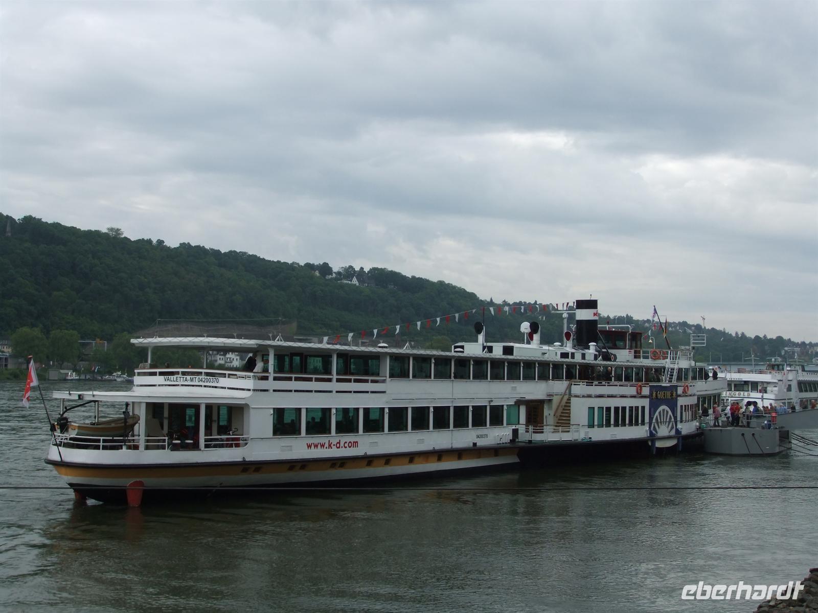 Gleich nach dem Frühstück bringt uns unser Bus über die Hunsrück-Höhenstraße nach Koblenz. Nach einem kleinen Spaziergang zum Deutschen Eck erwartet uns der Höhepunt dieser Reise: die 6stündige Schifffahrt auf dem Rhein. Die "Goethe", der älteste Schaufelraddampfer auf dem Rhein, liegt schon am Kai. Und so starten wir zu unserem Ausflug auf dem 60 km langen Rheinabschnitt, der zum UNESCO-Weltkulturerbe zählt.