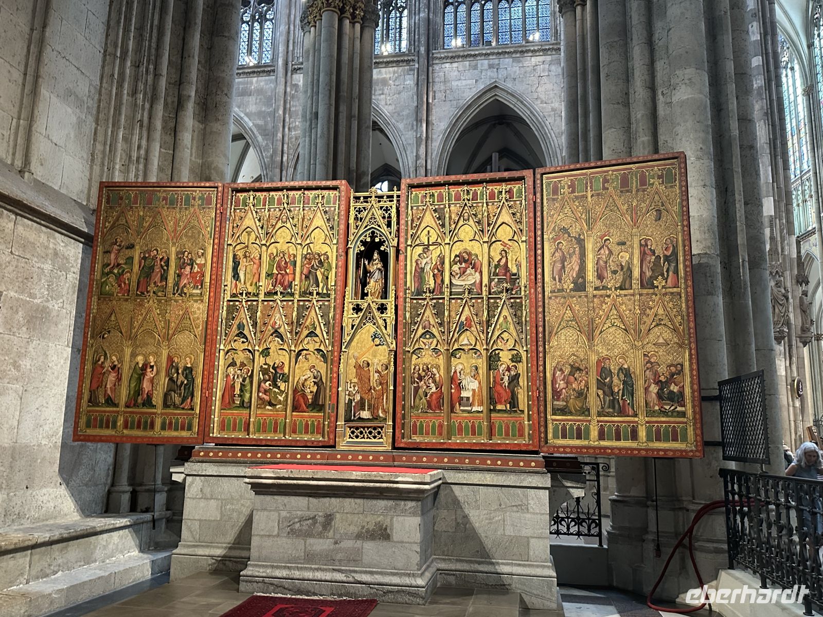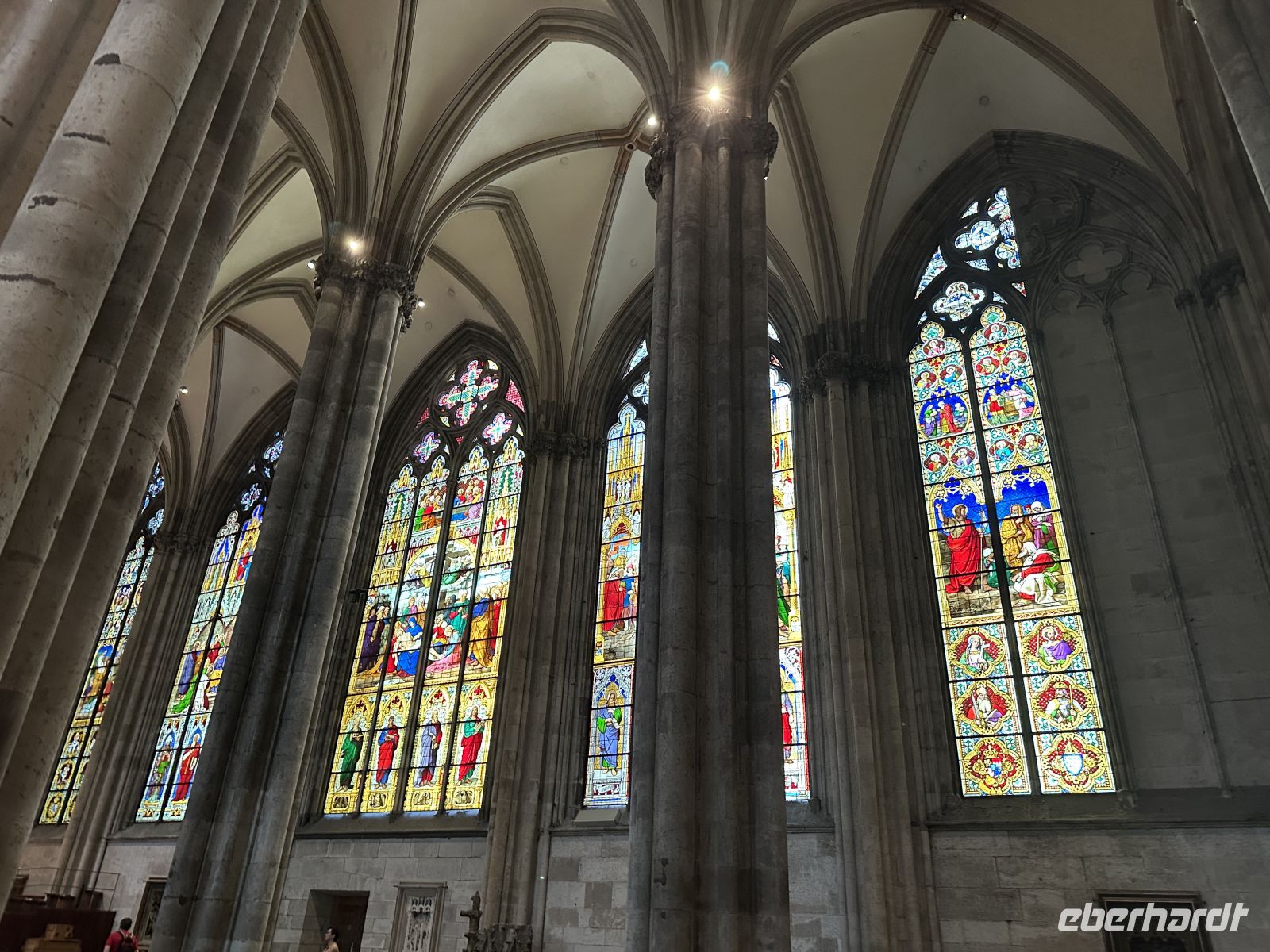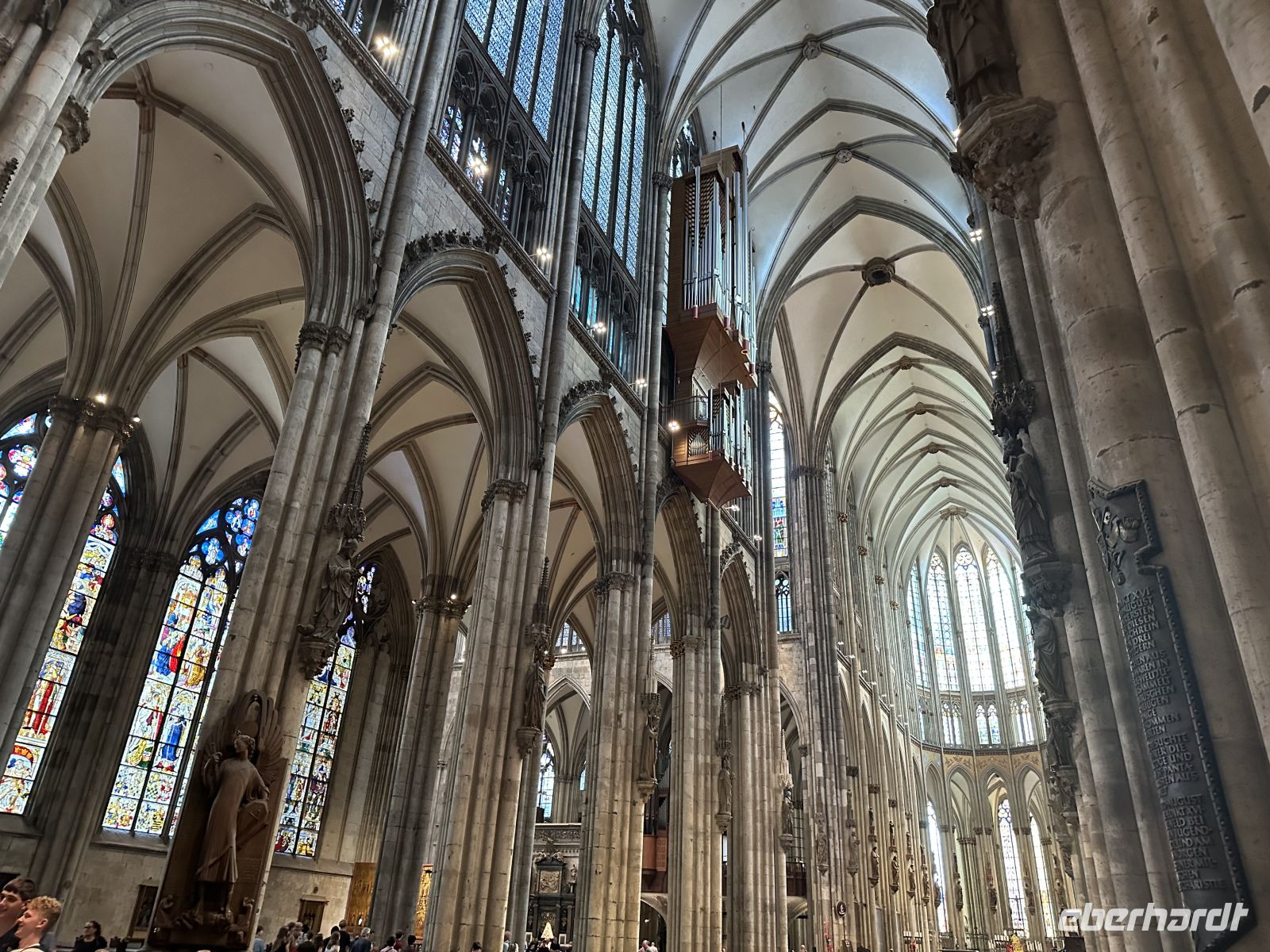 Nach dem Frühstück treffen wir uns an Land und fahren mit der Bimmelbahn zum Kölner Dom. Hier erwarten uns fünf Stadtführerinnen, die uns Köln und vor allem den Kölner Dom näher bringen. Wir stehen also direkt vor dem imposantesten Wahrzeichen der Stadt: dem Kölner Dom. Beeindruckend sind die schiere Größe und die filigranen Details dieses Meisterwerks gotischer Baukunst. Die beiden gewaltigen Türme, die majestätisch in den Himmel ragen, sind ein beeindruckendes Zeugnis mittelalterlicher Architektur. Ausführlich berichtet unsere Stadtführerin, wie es dazu kam, dass Köln eine römische Kolonie wurde. Es bleibt Zeit für eine kurze Innenbesichtigung. Beeindruckend sind die leuchtenden Glasfenster, die biblische Geschichten erzählen und auch der Dreikönigenschrein, der die Reliquien der Heiligen Drei Könige beherbergen soll. Nach diesem wunderbaren Erlebnis verlassen wir den Dom und gehen nur wenige Schritte weiter. Wir kommen zum Römisch-Germanischen Museum. Aktuell befindet sich das Museum in einer Phase der umfassenden Rekonstruktion und des Neubaus, was leider seine Pforten für Besucher geschlossen hält. Das Museum ist bekannt für seine herausragenden archäologischen Funde aus der römischen Zeit Kölns, darunter das beeindruckende Dionysos-Mosaik. Dieses große, farbenprächtige Fußbodenmosaik, das einst das Speisezimmer einer römischen Villa schmückte, ist ein faszinierendes Beispiel römischer Kunst und zeugt vom luxuriösen Leben in der römischen Kolonie Colonia Claudia Ara Agrippinensium. Es wird nach Abschluss der Bauarbeiten wieder zugänglich sein und einen Höhepunkt jedes Besuchs darstellen.