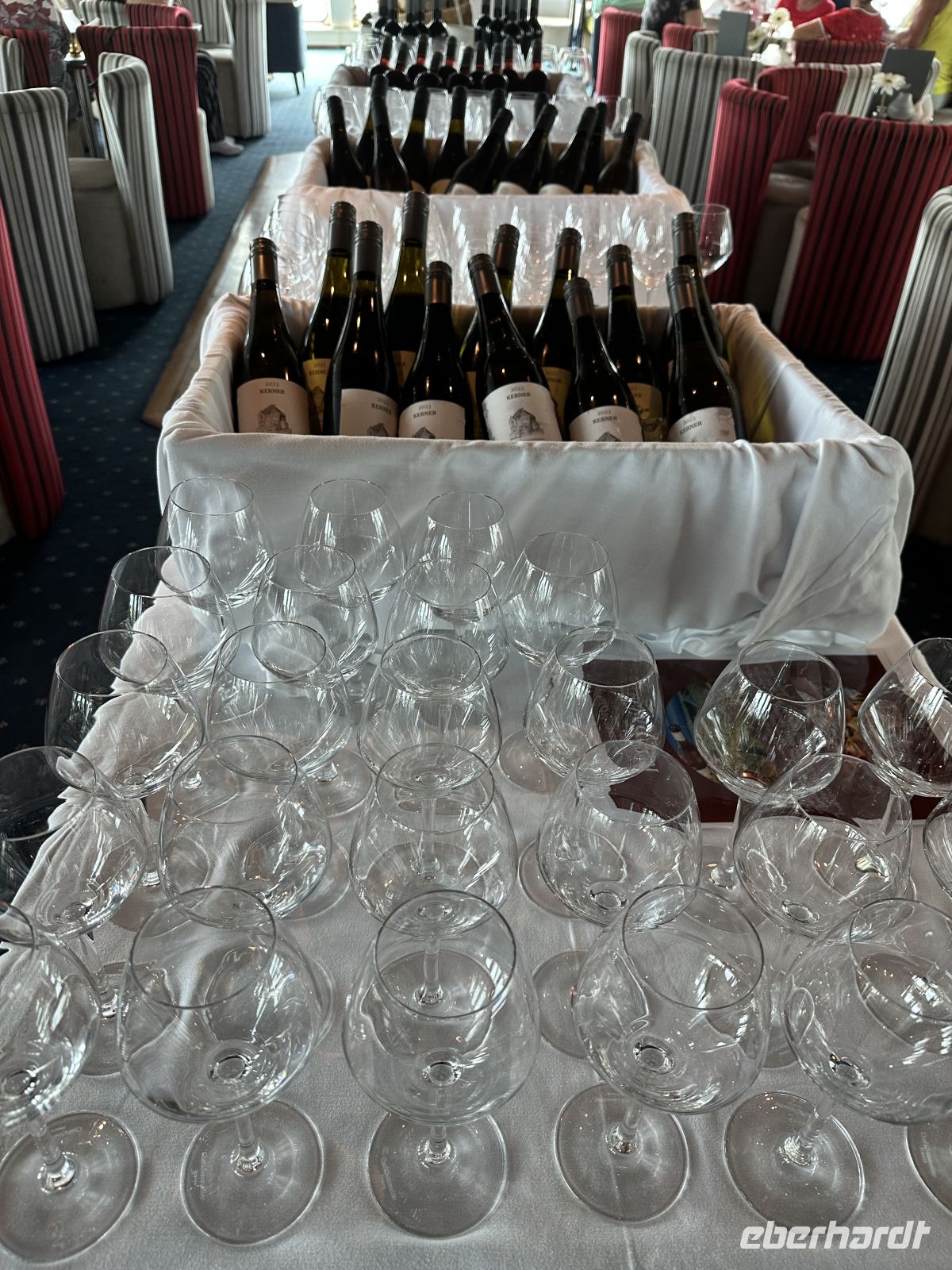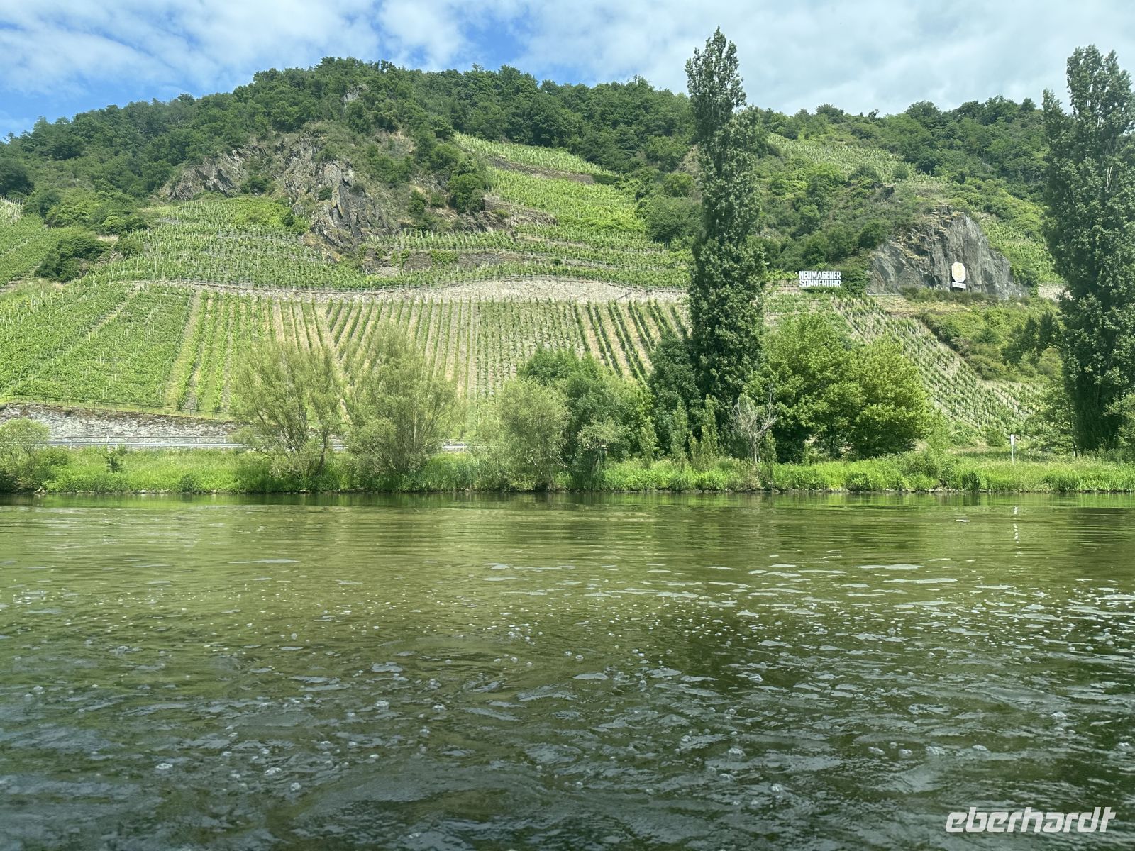 Am Abend fahren wir zum Weinhaus Hieronimi in Cochem zu einer Weinverkostung. Wir werden freundlich begrüßt und nehmen im Weinkeller Platz. Schon bald wird klar, Wein ist hier nicht nur ein Produkt, sondern eine Lebensphilosophie. Zu Beginn erhalten wir einen kurzen Überblick über die Besonderheiten des Weinbaus an den steilen Schieferhängen der Mosel. Nun beginnt die Weinprobe. Wir starten mit einem frischen Elbling und wer das Glück hat, als Paar unterwegs zu sein, kann jeweils die trockene Variante und die süße Variante probieren, während die Alleinreisenden sich entscheiden müssen. Zu jedem eingeschenkten Wein erhalten wir eine fundierte Einführung. Der Experte beschreibt den Jahrgang und die Rebsorte, aber auch die spezifische Weinbergslage – die schwindelerregend steilen Hänge, die den Weinen ihre unverwechselbare Mineralität verleihen. Wir lernen, auf die Farbe im Glas zu achten, die von blassem Goldgelb bis zu satten Goldtönen reichen kann. Dann folgt der wichtigste Schritt: das Riechen. Wir werden ermutigt, die Aromen zu erschnuppern. Schließlich der erste Schluck: Der Kenner schmeckt die Balance zwischen Süße und Säure, die Fruchtigkeit und die Mineralität. Für alle anderen gilt: Schmeckt oder schmeckt nicht. Selbstverständlich verlassen wir das Weinhaus nicht ohne die eine oder andere Flasche käuflich zu erwerben. Und nun kommt das Beste zum Schluss - unser Schiff steht fast direkt vor der Tür.