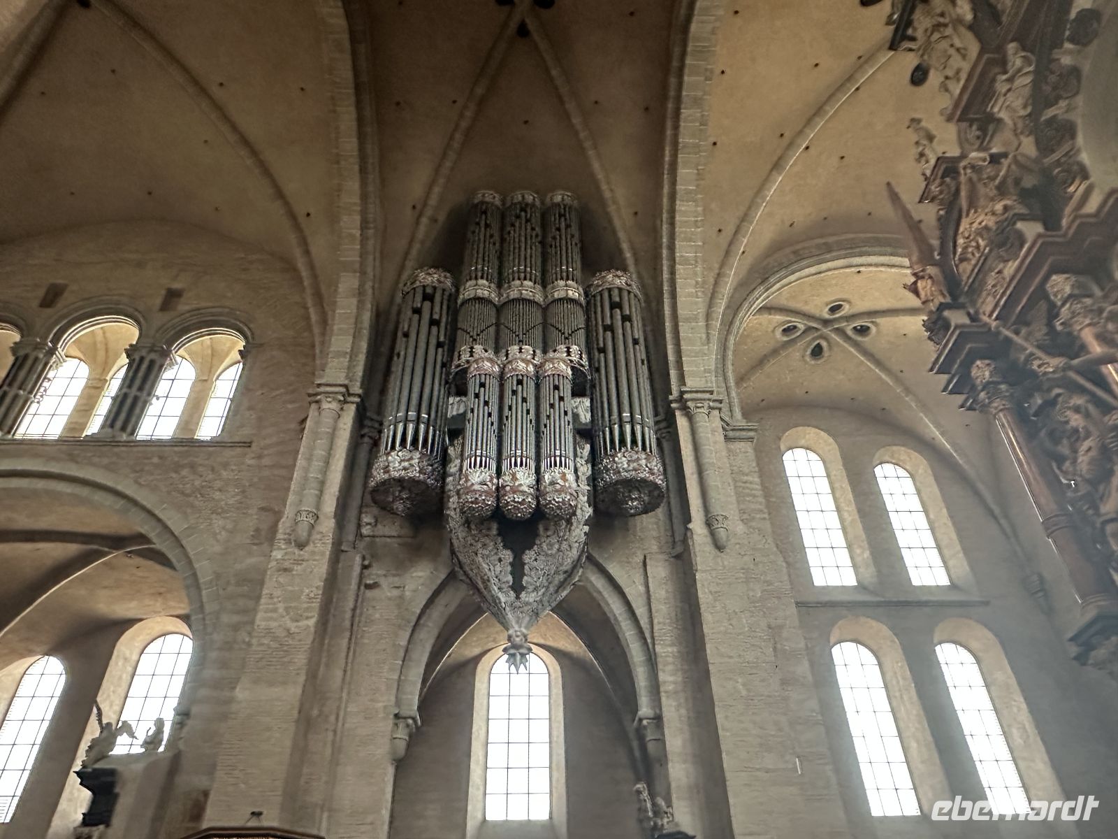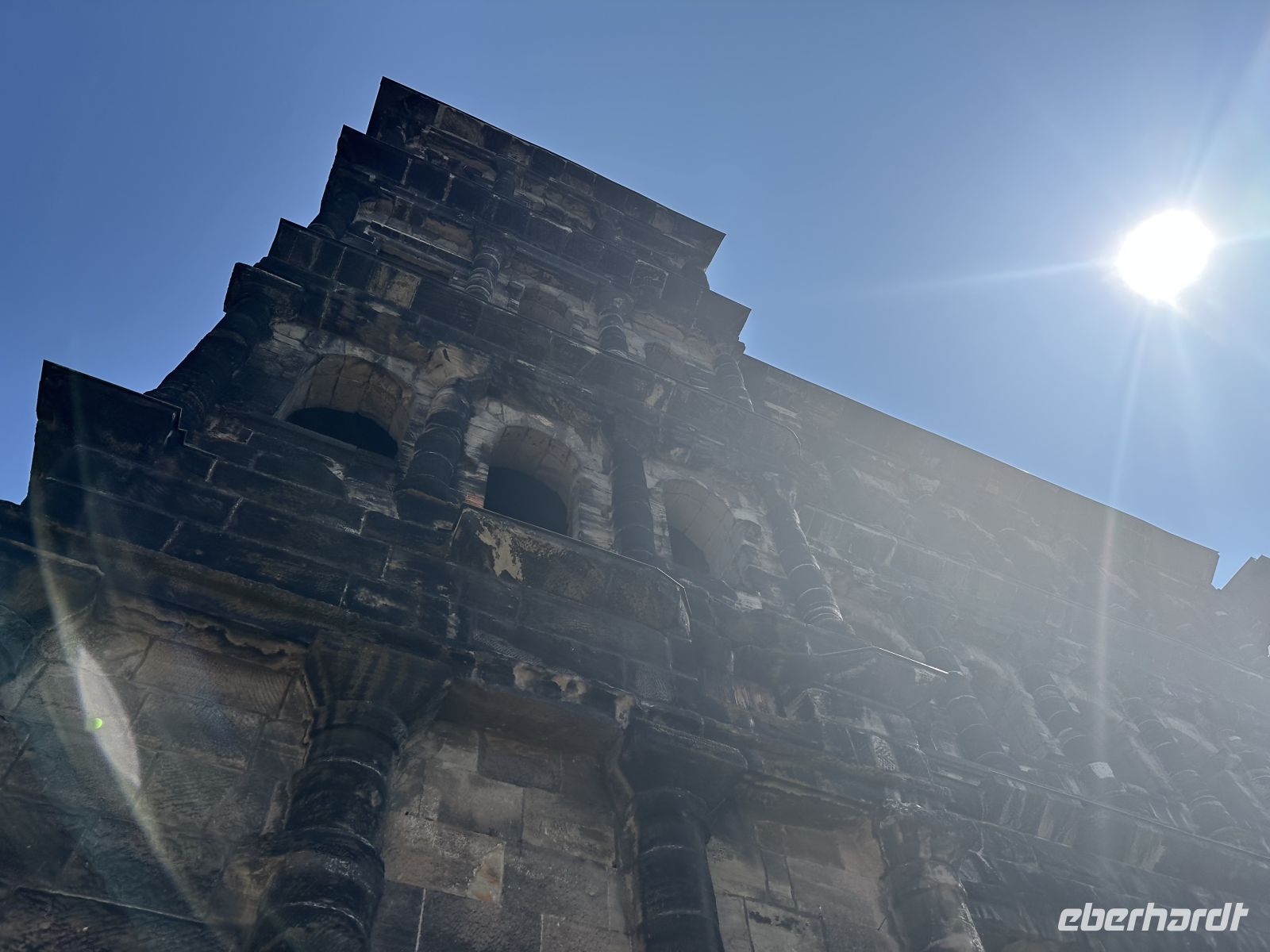 Wir spazieren weiter über den wunderschönen Marktplatz von Trier bis zur Porta Nigra. Dieses monumentale römische Stadttor aus Sandstein ist nicht nur das besterhaltene römische Stadttor nördlich der Alpen, sondern auch ein unglaublich beeindruckendes Zeugnis römischer Ingenieurskunst. Achtung, Achtung, man sagt tatsächlich DIE Porta Nigra, was mit dem Ursprung des Wortes aus dem Lateinischen zusammenhängt, wo Porta weiblich und nicht sächlich ist. Das Tor wurde um 170 n. Chr. erbaut und war Teil der römischen Stadtmauer, die die damalige römische Stadt Augusta Treverorum (das heutige Trier) umgab. Seine Hauptfunktion war es, den nördlichen Zugang zur Stadt zu kontrollieren. Es diente nicht nur als Wehrtor, sondern war auch ein repräsentatives Monument, das die Macht und den Reichtum der Stadt zur Schau stellte. Die Porta Nigra wurde aus großen, sorgfältig behauenen Quadern aus grauem Sandstein errichtet. Die markante „schwarze“ Farbe, die dem Tor seinen heutigen Namen gab, ist auf Verwitterung, Umwelteinflüsse und Ablagerungen im Laufe der Jahrhunderte zurückzuführen. Ursprünglich war der Sandstein hell. Im Frühmittelalter wurde das Tor zunehmend vernachlässigt. Sein Glück war, dass sich der griechische Einsiedler Simeon von Trier im 11. Jahrhundert in einem der Türme einmauern ließ. Nach seinem Tod wurde er heiliggesprochen, und die Porta Nigra wurde zu seinen Ehren in eine Doppelkirche umgewandelt – eine romanische Kirche im östlichen Turm und eine Kapelle im westlichen Turm. Diese Umwandlung verhinderte ihren Abriss als Steinbruch, was vielen anderen römischen Bauwerken widerfuhr. Im frühen 19. Jahrhundert, während der Besetzung Triers durch französische Truppen, befahl Napoleon Bonaparte die Rückverwandlung des Kirchenbaus in ein römisches Tor. Er erkannte den historischen Wert des Bauwerks und ließ die Anbauten aus dem Mittelalter entfernen. Heute ist die Porta Nigra nicht nur ein beeindruckendes Relikt der römischen Vergangenheit Triers, sondern auch eine lebendige Attraktion. Besucher können das Tor besteigen, wofür uns leider keinen Zeit bleibt. Wir sind jetzt zu unserem Bus zurückgekehrt und fahren zurück zum Schiff. Pünktlich zum Mittagessen sind wir wieder an Bord. Wir verlassen die Mosel und fahren auf die Saar.