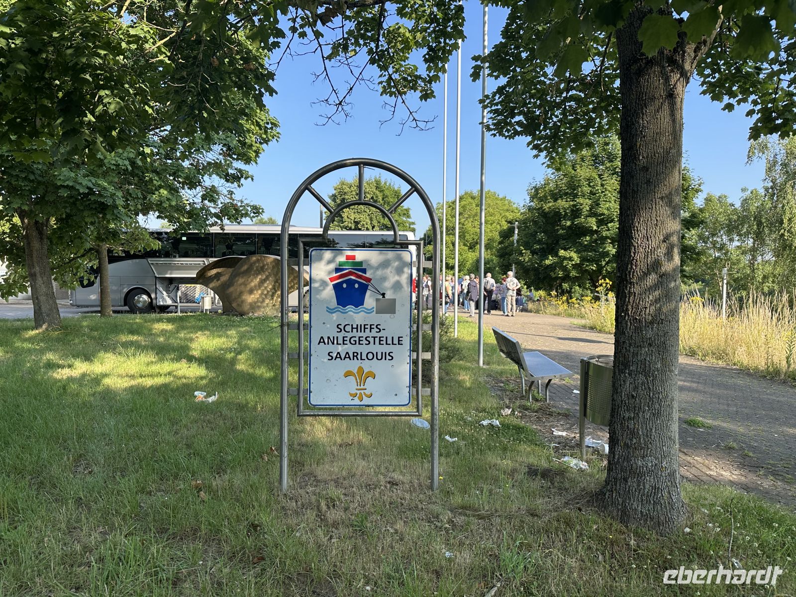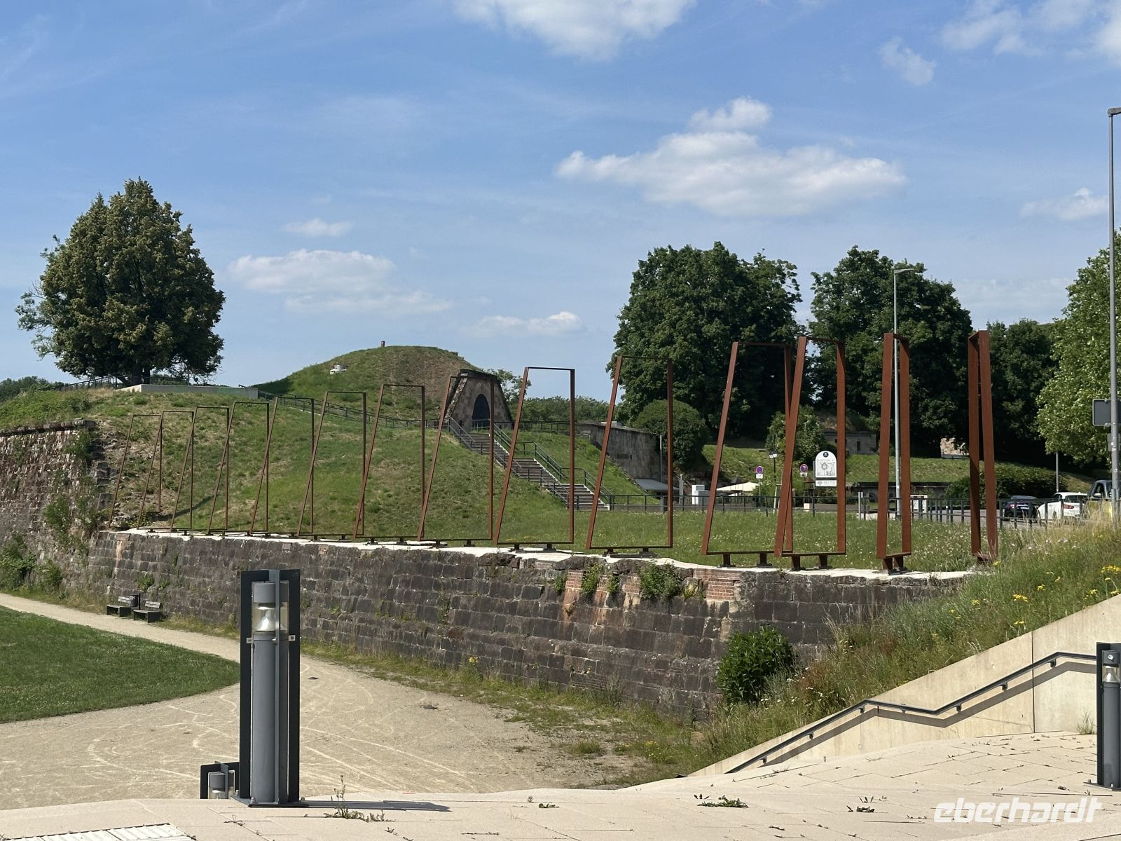 Zum Abschluss unseres Rundgangs durch Saarlouis werfen wir einen Blick auf die historischen Festungsanlagen, genauer gesagt auf den Bereich der ehemaligen Wälle und Gräben. Heute ist es so heiß, dass wir froh sind, wieder im Bus zu sein und zum Schiff zurückzukehren.