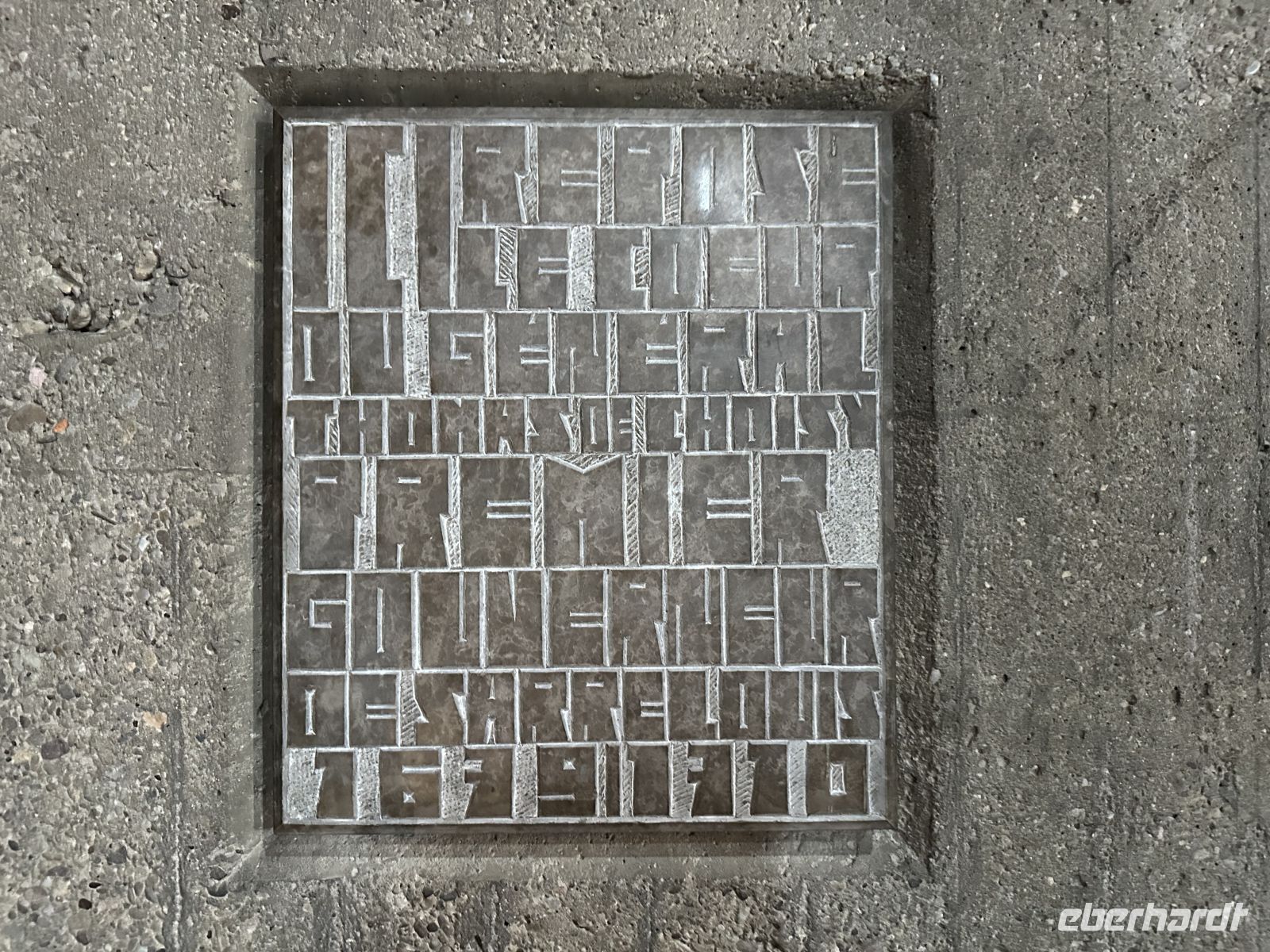 Eine besondere Geschichte rankt sich um eine Tafel, die an der rechten Seite des Chorraums angebracht ist. Hier steht: ICI REPOSE LE COER. DU GENERAL. THOMAS DE Choisy. PREMIER. GOUVERNEUR. DE SARRELOUIS. 1679 | 1710. Auf Deutsch: HIER RUHT DAS HERZ. DES GENERALS. THOMAS DE CHOISY. ERSTER. GOUVERNEUR. VON SAARLOUIS. 1679 | 1710. Hier hat ein Herz seine letzte Ruhestätte gefunden. Es gehört Thomas de Choisy, Marquis de Moigneville, der im Jahr 1710 verstarb. Die Urne, die Choisys Herz birgt, ist aus Blei gefertigt und befindet sich hinter der Gedenktafel. Diese Gedenktafel, die Jahrhunderte nach Choisys Tod angebracht wurde, ist mehr als nur eine einfache Erinnerung. Ihre Errichtung im Jahr 1970 ist ein deutliches Zeichen für die bewusste und andauernde öffentliche Anerkennung von Thomas de Choisys grundlegender Rolle und seiner symbolischen Verbindung zu Saarlouis.