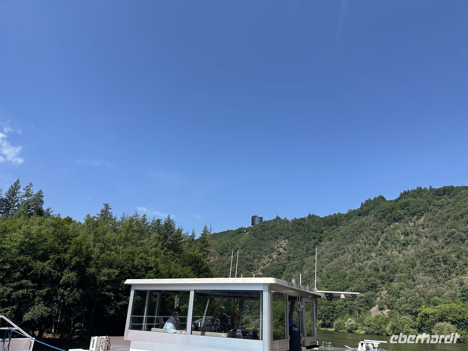 Der Höhepunkt der Fahrt ist die Passage durch die Saarschleife bei Mettlach. Hier vollführt die Saar eine spektakuläre, 180-Grad-Kehre. Vom Wasser aus bietet sich ein einzigartiger Blick auf dieses Naturphänomen, das man sonst hauptsächlich von den Aussichtspunkten wie dem Baumwipfelpfad oder der Cloef kennt. Die Dimensionen der Schleife werden vom Wasser aus besonders eindrucksvoll wahrgenommen.