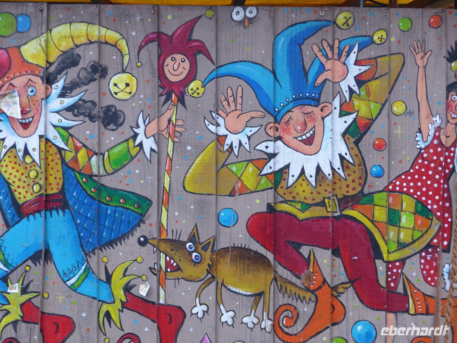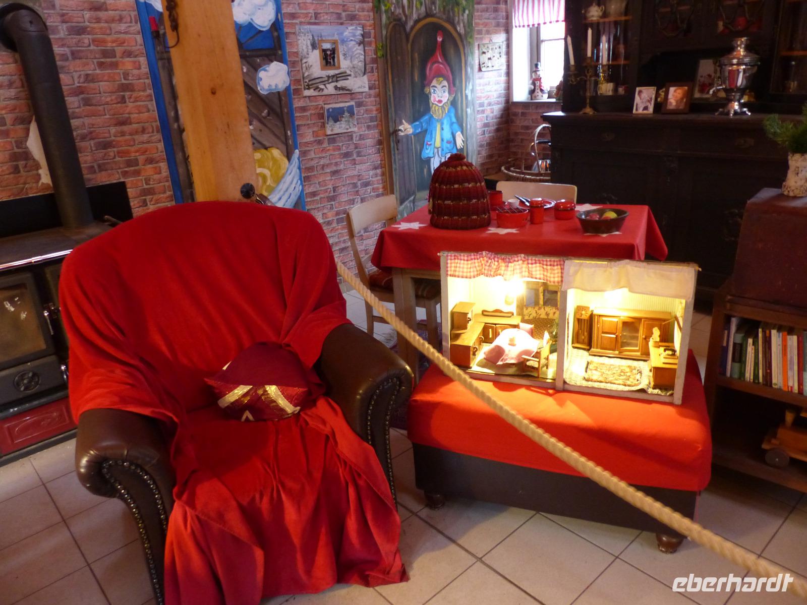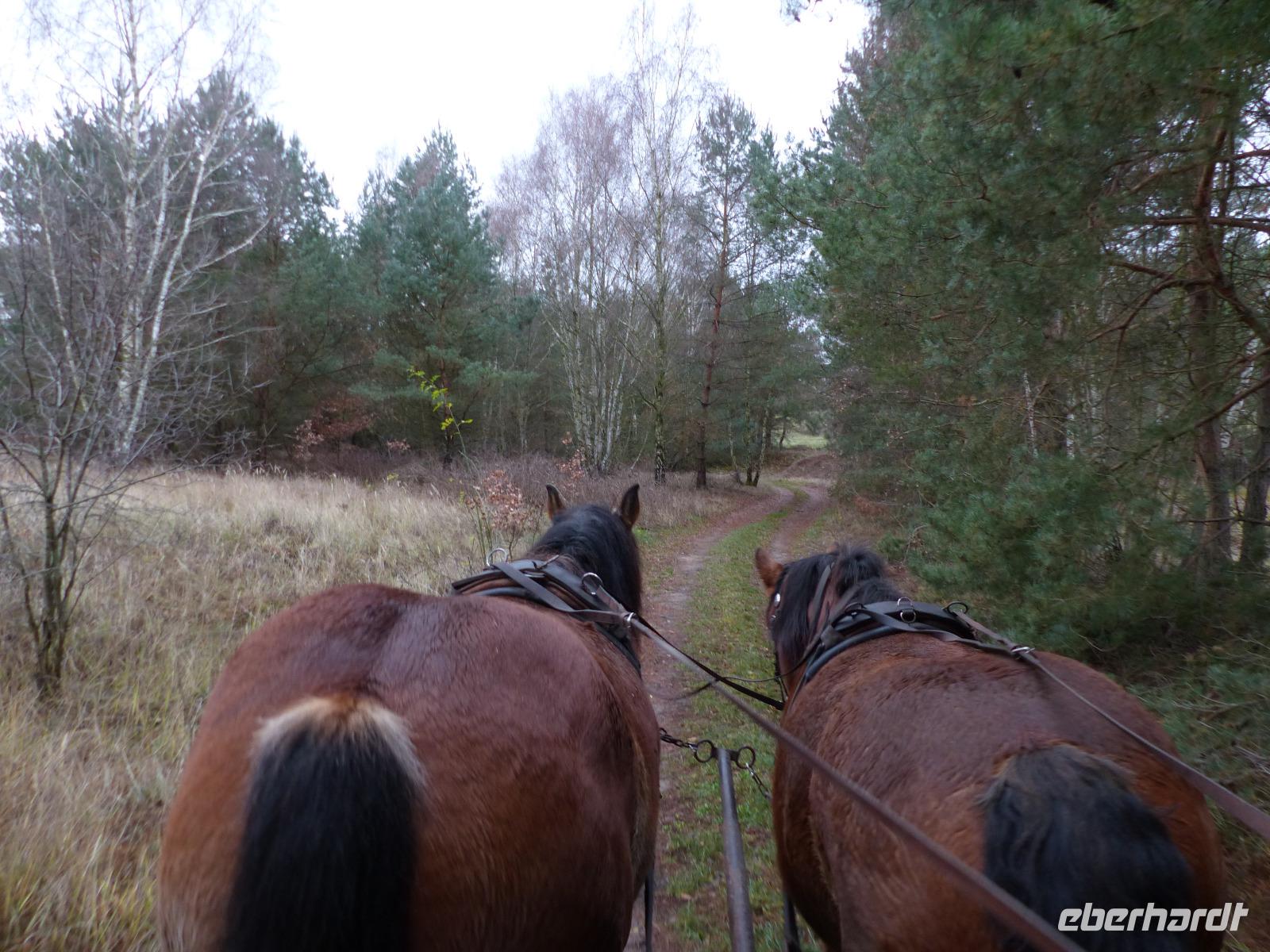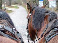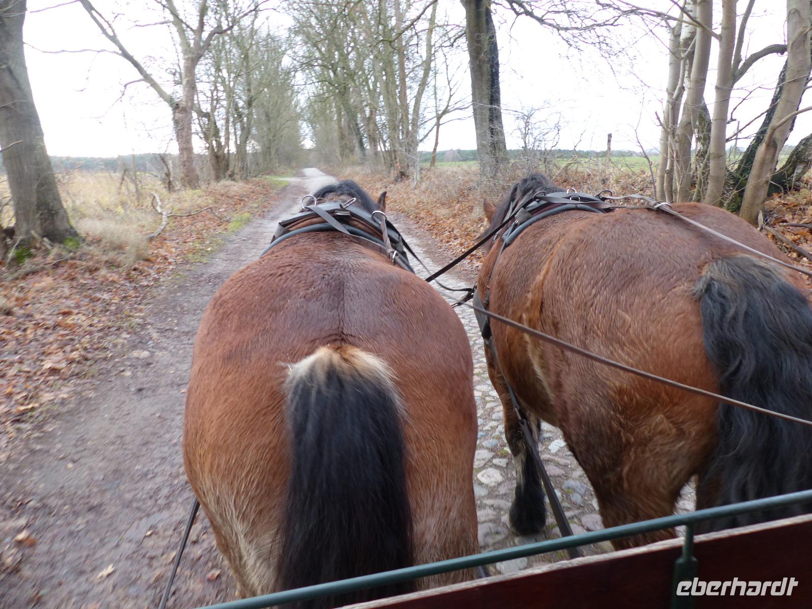 Unser Kremserfahrzeug holte uns am Hoteleingang ab und wir wurden von einem sehr netten Wagenlenker durch Rheinsberg gefahren, der auch Interessantes zu berichten wusste. Wir fuhren an der Keramikmanufaktur vorüber, was die Herzen der meisten Gäste höher schagen ließ. „Da würde ich jetzt gerne aussteigen", bekam ich zu hören. Das ging zwar nicht, aber am Nachmittag baute ich noch einen Abstecher zu dieser Keramikverkaufsausstellung mit ein, so wie das von vielen Gästen gewünscht wurde. Zunächst stand der Rheinsberger Leuchtturm auf dem Programm. Der leuchtet zwar nicht und steht mitten im Wald und nicht am Wasser, heißt aber trotzdem so. Er ist ein Aussichtsturm, von dem aus der alte Fritz vorgewarnt wurde, wenn der Papa, der Soldatenkönig, im Anmarsch war. Dann muss es hektisch hergegangen sein im Schloss in Rheinsberg, durfte doch dann die verschmähte Gattin mal ganz kurz und schnell an die Seite des damaligen Kronprinzen Friedrich. War der König dann wieder fort ging es wieder ab in die Frauengemächer. Diese Frau war wirklich nicht zu beneiden! Wir zockelten nun mit unseren beiden Kaltblütlern Pablo und Lieschen weiter durch die Brandenburger Wälder und landeten schließlich von einer Rübchensuppe. Das ist ein traditionelles Gericht dieser Region. Danach stürmten wir die Keramikausstellung, die sehr vielseitige Exponate hatte, so dass jeder Dinge sah, die ihm gefielen. Den Nachmittag verbrachten wir im Kurt-Tucholsky-Museum bei einer sehr guten Führung und Lesung. „Ich wäre da wahrscheinlich nie reingegangen, wenn das nicht so im Programm gestanden hätte. Und ich hätte da schon was verpasst, das war wirklich toll!" so ein Kommentar. Wir hatten ja auch genug zu lachen über Kurt und sein Lottchen. Danach genossen wir wieder unser Hotel, denn das Wetter bot sich nicht gerade für lange Spaziergänge an und es wurde ja auch schon früh dunkel. Nach dem Abendessen wichtelten wir. Jeder hatte ein Geschenk besorgt und nun ging es an den komplizierten Vorgang, diese Geschenke auch zu verteilen. Die Würfel entschieden eigentlich, wer was bekommt. Untermalt wurde das ganze von einem herrlichen Krippengedicht, das ein Gast mitgebracht hatte, in dem Batman samt Pistole als einer der drei Könige auftaucht, Donald Duck den Josef vertritt und die drei Könige Püree anstatt Myrrhe überreichen. Und auch ich hatte noch ein Gedicht geschrieben. Nicht ganz so professionell wie die Beiträge meiner Vorgänger, eben mein eigenes Gedicht. In kleiner Runde klang der Abend schließlich dann bei guten Gespächen in einem der kleinen Inselhäuschen aus.