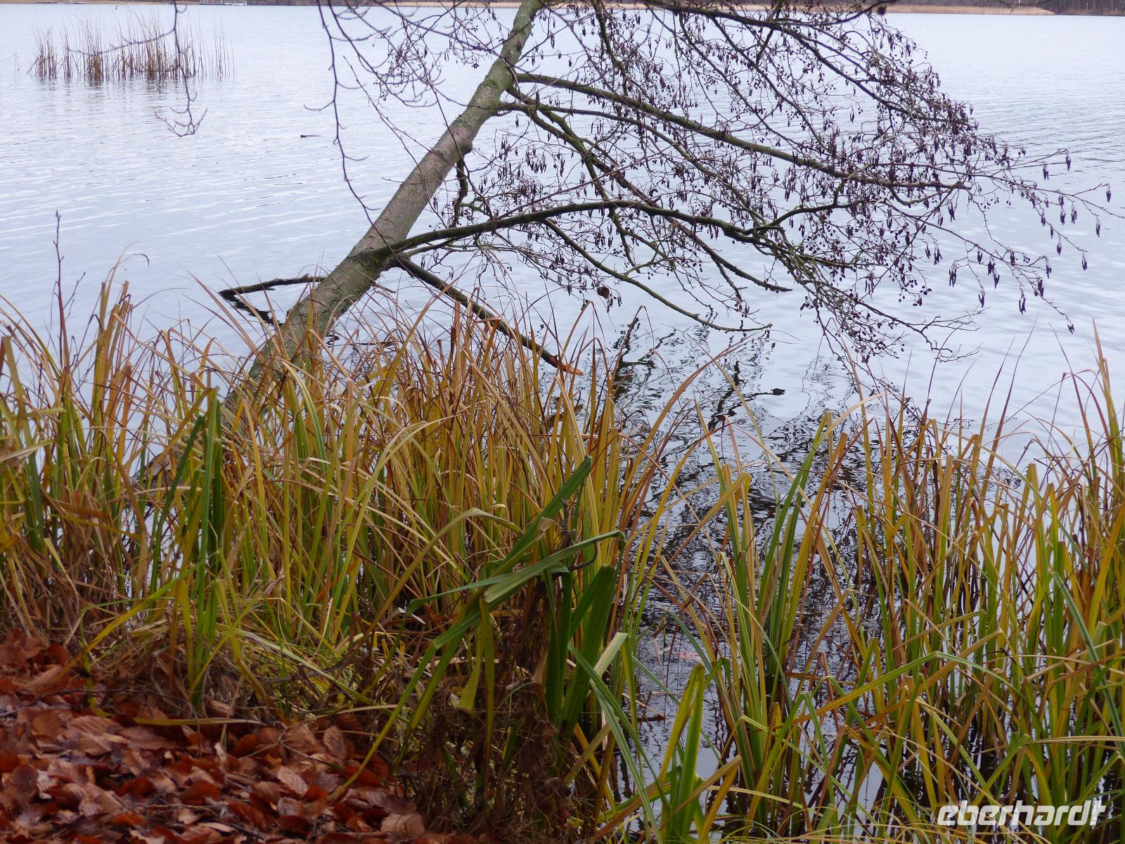 Das Wetter war heute zwar grau, aber trocken. „Oh ich habe frische Luft und Auslauf nötig!". So kam mein Vorschlag um den Haussee von Himmelpfort herumzuwandern doch vielen Gästen sehr gelegen. Die anderen vergnügten sich derweil im Cafe und auf dem Weihnachtsmarkt. Die Wanderung führte uns am hübschen Seeufer entlang. Enten begleiteten uns und überall raschelte das Laub. Dann mussten wir zwei Brücken überqueren, denn alle Seen der Gegend sind über Bäche miteinander verbunden. Und wir hatten nun mal nicht die Zeit alle 5 Seen zu umrunden, die sich um Himmelpfort herumschlängeln. Schließlich durchquerten wir noch ein hübsches Moorgebiet mit buntem Schilf und erreichten dann wieder den Weihnachtsmarkt. Die Kaffeehausbesitzerin führte uns dann auch noch sehr nett durch die Klosterkirche, deren Schlüssel sie extra für uns organisierte. Wir warfen noch einen Blick in die Wohnung des Weihnachtsmannes und einen in das Postamt, wo er schaltete und waltete und von Kindern umlagert war, bevor wir zum Bus zurückkehrten, der uns anschließend nach Hause brachte. Und schon war sie vorüber, diese kleine feine Adventsreise nach Rheinsberg, die uns doch viel Freude, Entspannung und neue Kraft für den Alltag gebracht hat in dieser tüben Zeit!