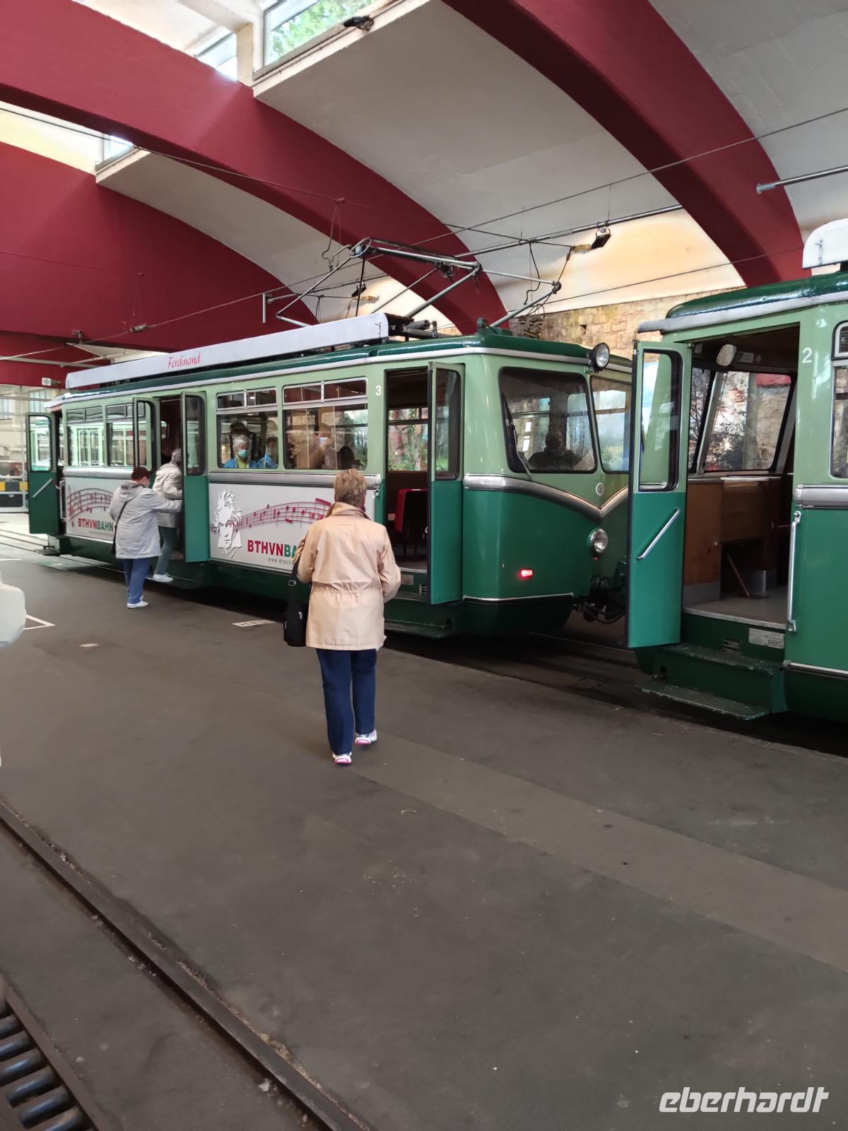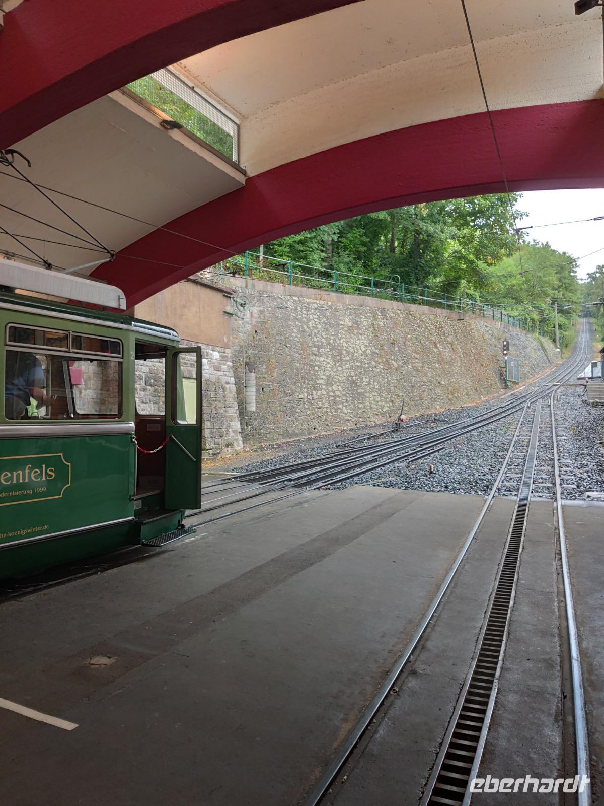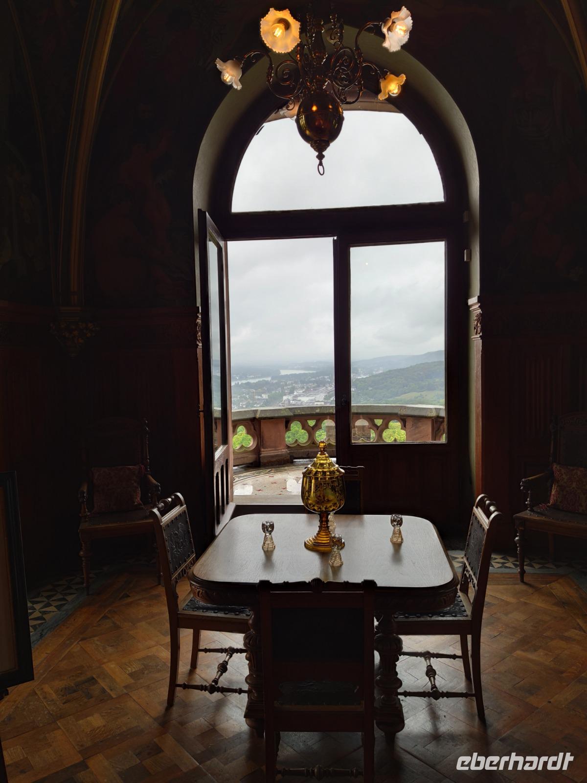 Der heutige Tag meinte es wettertechnisch leider nicht allzu gut mit uns, sodass wir am morgen mit Regenschauern und tristem Wetter „begrüßt" wurden. Nachdem wir eine neue Rheinbrücke, die John F. Kennedy Brücke überfahren und das rechtsrheinische Viertel Beuel durchquert hatten, kamen wir zum Drachenfels. An der Talstation der Zahnradbahn konnten wir noch etwas zur Historie lesen, bevor wir die Wagen bestiegen, die uns zuerst zur Mittelstation brachten. Hier stand im Schloss Drachenburg eine Führung durch das 1882 errichte Anwesen auf dem Programm. Der Bauherr, Stephan von Sarter, der beruflich größtenteils in Paris verweilte kam allerdings nie in den Genuss in seinem Anwesen zu schlafen. Bei seinen Besuchen zog er es sogar vor in einem nahegelegenen Hotel abzusteigen und sein Schloss von der gegenüberliegenden Rheinseite zu bewundern. Im Laufe der Jahrzehnte war dann ein Internat untergebracht, sowie eine Eliteschule der Nazis. Nachdem es Jahrelang nach dem Krieg dem Verfall ausgesetzt war, erwarb es ein Unternehmer Namens Spinat. Dieser restaurierte es, bevor es mittlerweile der NRW-Stiftung gehört, die es sich zur Aufgabe gemacht hat das Schloss weiter zu restaurieren. Wieder an der Station angekommen, brachte uns die Bahn zur Endstation auf 327 Metern Höhe, mit dem sogenannten Drachenfels. Leider war das Wetter sehr trüb, sodass man keinen wunderschönen Blick über das Rheintal erhaschen konnte. Dennoch konnte man ungefähr einordnen, wo sich bestimmte Landmarke befanden, wie die Insel Neuwerth im Rhein. Zurück am Bus stärkte sich die Reisegruppe an den angebotenen Speisen und weiter ging die Fahrt entlang des Rheins in Richtung Rheinland-Pfalz mit Koblenz. Hier stand ein Spaziergang zum deutschen Eck auf dem Programm, wobei unser Bus der einzige vor Ort war. Die Statue von Wilhelm des I. steht seit 1949 wieder am Ort, wo sich Mosel und Rhein vereinigen. Mit der Seilbahn kann man von hier auf die Festung Ehrenbreitstein fahren, was wir allerdings nicht machten, da auch hier das Wetter zu diesig war. Kurzfristig konnten weitere Punkte in das Programm aufgenommen werden, indem man einen Abstecher in das wunderschöne Ahrtal unternahm. Die Ahr ist ein Fluss, der ebefalls in den Rhein fließt und an deren Hängen vorzugsweise Rotwein angebaut wird. Dies alles wurde uns bei einer Weinführung in der Winzergenossenschaft von Mayschoß erklärt, bevor man einen Wein verkosten konnte. Das Glas durfte dabei gleich als Andenken mit nach Hause genommen werden und einzelne Kunden kauften in diesem Zug auch gleich noch ein paar Flaschen des edlen Tropfens für den heimischen Weinkeller. Beim gemütlichen Zusammensetzen im Weinkeller verging die Zeit leider zu schnell, sodass es bald hieß in Richtung Bonn aufzubrechen. Nach einer halben Stunde fanden wir uns vor dem Hotel wieder und jeder genoss individuell sein Abendessen, bot die Umgebung allerhand gute Restaurants für die unterschiedlichen Geschmäcker.