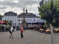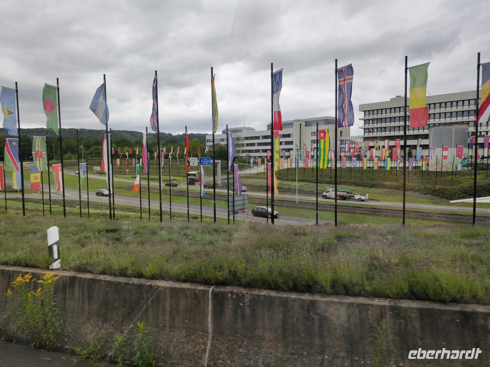 Einmal quer durch die Bundesrepublik von Ost nach West, führte uns die Fahrt am heutigen Montag. Dank Corona kamen die Gäste in den Genuss in einer kleiner Gruppe zu reisen die 16 Personen umfasste. Die ersten Personen stiegen in Dresden zu, über Chemnitz und Meerane erreichte man bald Thüringen mit Jena und Gotha, wo die letzten Gäste eingeladen wurden. Die Kunden waren sehr erfreut, als ihnen eröffnet wurde, dass es doch ein Bordservice an Bord des Busses geben würde, natürlich unter Einhaltung der strengen Corona Vorschriften. Daher wurde am ersten Halt sowohl die Kaffeemaschine als auch der Würstchenkocher endlich wieder in Betrieb genommen. Alsbald überquerte man die ehemalige innerdeutsche Grenze und fand sich in Hessen wieder, wo die erste längere Pause in Limburg verbracht wurde. Die Stadt an der Lahn besticht durch Ihre pittoreske Altstadt und den schmalen Gassen, die von Fachwerkhäusern flankiert werden. Das bekannteste Bauwerk der Stadt ist der Dom mit seinen 7 Türmen, diese Anzahl ist deutschlandweit unübertroffen. Eher negative Bekanntheit erlangte das zugehörige Bistum durch den damaligen Bischof Franz-Peter Tebartz-van Elst und die Mehrkosten des zugehörigen Bischofshauses. Das Gebäude ist heute besuchbar, wir konnten leider nur einen kleinen Einblick in das Foyer erhaschen, bevor es zurück zum Bus und weiter in Richtung Bonn ging. Die ehemalige Bundeshauptstadt empfing uns mit einem grauen Wolkenschleier, dennoch konnte man die Stadtsilhouette erkennen mit dem Post Tower und dem "Langen Eugen". Eine kleine Stadtrundfahrt durch das Viertel Poppelsdorf stand noch auf dem Programm, bevor wir im Hotel einchecken konnten. Zu Abend wurden wir im Hotelrestaurant erwartet, wo sich bei Maispoularde oder einem leckeren Salat mit französischem Ziegenkäse vor der ersten Nacht nochmal gestärkt wurde. Dies war auch vonnöten nach der Busanreise und dem Ausfüllen tausender Listen, worauf hier in NRW wesentlich größerer Wert gelegt wurde.