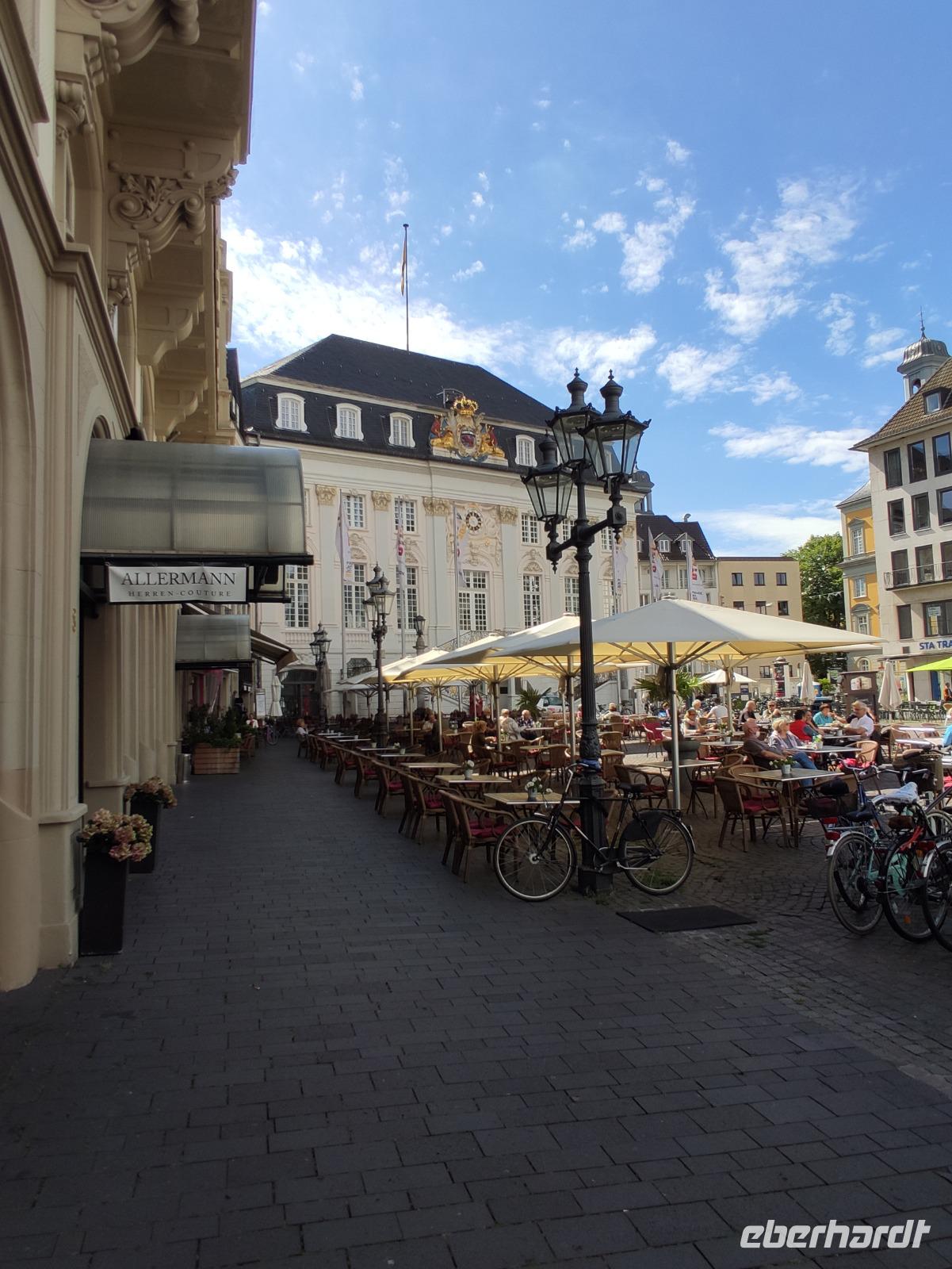 Nach dem Frühstück stand zur ersten Orientierung ein Stadtrundgang auf der Agenda. Die meisten der Reisenden waren entweder vor langer Zeit mal für einen Tag in der Stadt am Rhein oder kannten diese noch gar nicht. Der Weg führte uns vorbei am Botanischen Garten auf der Poppelsdorfer Allee, die das Poppelsdorfer Schloss mit dem Kurfürstlichen Schloss verbindet in Richtung Stadtzentrum. Diese, genau 1 km lange Sichtachse sollte ursprünglich einen Kanal aufweisen, was allerdings aufgrund von finanziellen Problemen nicht umgesetzt wurde. Die heute hier verlaufende Eisenbahnstrecke wurde nicht auf einem Bahndamm errichtet, sondern ebenerdig, damit sie sich besser ins Gesamtbild einfügt. Entlang der mit Kastanienbäumen gesäumten Achse finden sich wunderschöne Reihenhäuser vorwiegend aus der Gründerzeit. Diese sind auch heute noch sehr begehrt und ein Grund warum Poppelsdorf eher als wohlhabendes Viertel gilt. Am Kaiserplatz angekommen, konnte man einen Blick in die entgegengesetzte Richtung werfen, mit der Kreuzbergkirche in weiter Ferne. Eine längere Zeit verweilte man bei herrlichem Sonnenschein vor dem kurfürstlichen Schloss, wo uns die wechselvolle Geschichte der Stadt näher gebracht wurde. In vorheriger Zeit residierten hier die Kölner Kurfürsten unter anderem Joseph Clemens Kajetan von Bayern, der es nach der Rückeroberung Bonns wiederaufbauen ließ .Das von den Kurfürsten im 17. und 18. Jahrhundert als Residenzstadt ausgewählte Bonn wurde ab 1794 zwei Jahrzehnte durch die Truppen Napoleons besetzt. Im Zuge des Wiener Kongresses fiel Bonn 1815 an Preußen, die die Neugründung der Universität vorantrieben. Eines der Universitäts Gebäude befindet sich auch heute noch im Kurfürstlichen Schloss. Die "Prinzenuniversität", die sich mit Studenten wie Ernst Moritz Arndt oder Joseph Ratzinger rühmen darf, war schon seit jeher Rivale der Universität Kölns. Auf der einen Seite das "aufgeklärte" Bonn gegenüber dem "heiligen Köln". Im Anschluss führte uns der Weg in die Innenstadt mit dem Münsterplatz, wo sich das älteste Beethoven Denkmal der Welt wiederfindet. Durch die Sternstraße schlenderten wir zum zweiten wichtigen Platz der Stadt, dem Rathausplatz. Auf diesem wurden vor allem während der Zeit als Bonn Bundeshauptstadt war, zahlreichen internationalen Politikern zugewunken. Der Rundgang endete am Rheinufer, wo man heute bei Sonnenschein einen herrlichen Rundblick genießen konnte. Ganz in der Nähe, am Hofgarten, wartete unser Bus auf uns, um diejenigen, die wollten, mit zur Museumsmeile zu nehmen. Auf dem Weg zum Haus der Geschichte fuhr man entlang der Adenauerallee, entlang der sich zahlreiche bedeutende politische Bauwerke zu finden sind, wie z.B. die Villa Hammerschmidt oder der Kanzlerbungalow. Das Haus der Geschichte beschäftigt sich größtenteils sowohl mit der Geschichte der BRD, als auch DDR, ordnet diese aber auch immer in einen internationalen Kontext ein. Nachdem man mehrere Stunden hier verbracht hatte, fuhr uns der Bus zurück zum Hotel.