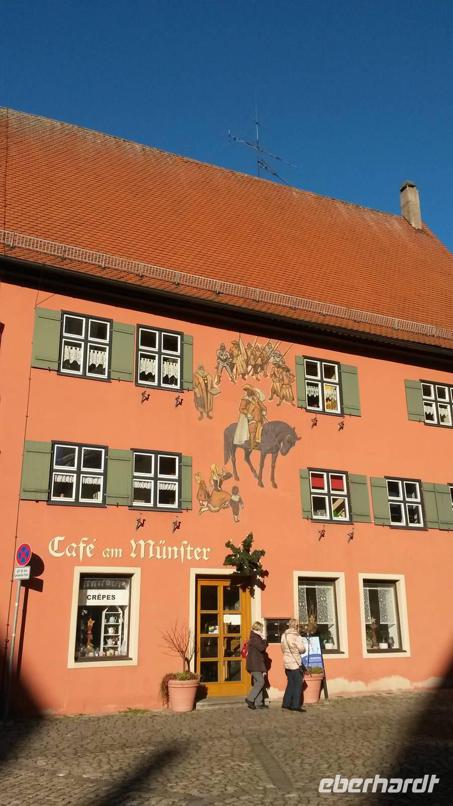 Am Nachmittag geht es weiter nach Nördlingen. Durch Nebelschwaden, die wenig Sicht auf die vorbeiziehende Landschaft zulassen, gelangen wir nach 35 Minuten in das Zentrum von Nördlingen. Die ehemalige freie Reichstadt Nördlingen empfängt uns mit Sonnenschein. Wer die 350 Stufen zum 90 m hohen „Daniel", dem Turm der spätgotischen St. Georg Kirche bezwang, wurde mit einem wundervollen Blick auf Nördlingen belohnt. Bequemere Alternativen waren der Spaziergang entlang der kompletten Stadtmauer oder ein Bummel durch die Geschäfte von Nördlingen. Allein der Besuch des mittelalterlichen Städtchens an der Eger erfreute auch die Fans von Gerd Müller, einem ehemaligen Fußballnationalspieler und von Wilhelm Hauff, dem Märchenschreiber. Gerd Müller ist in Nördlingen geboren und Wilhelm Hauff lebte eine Zeit lang in Nördlingen.