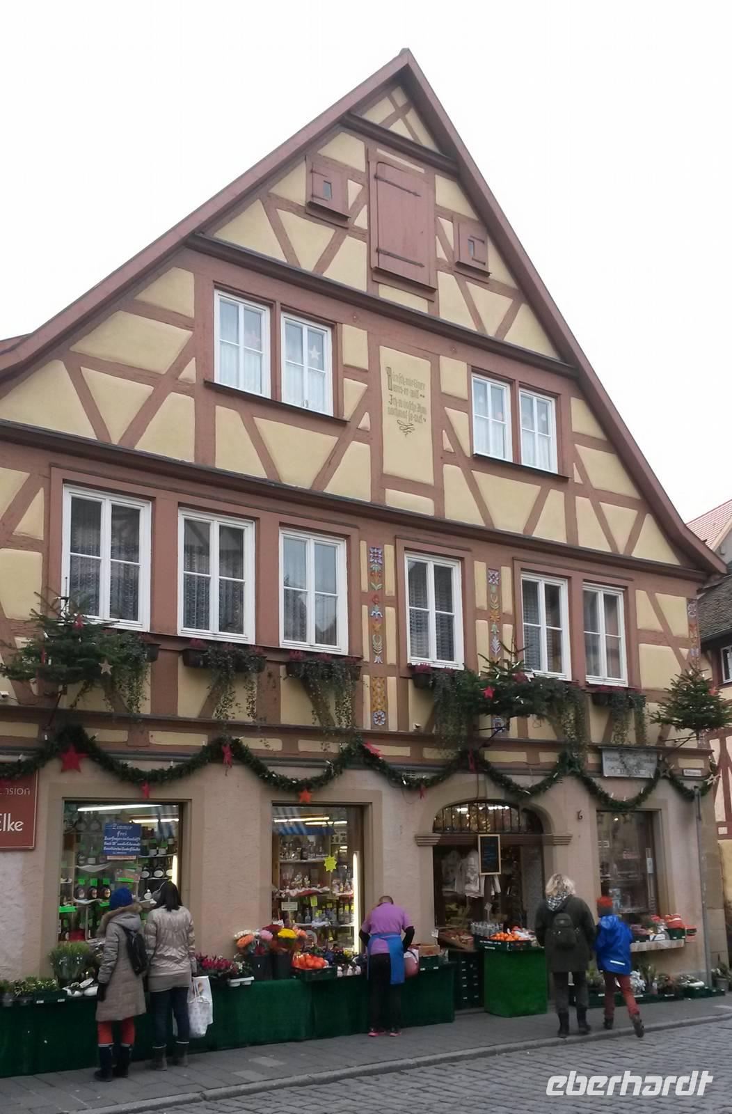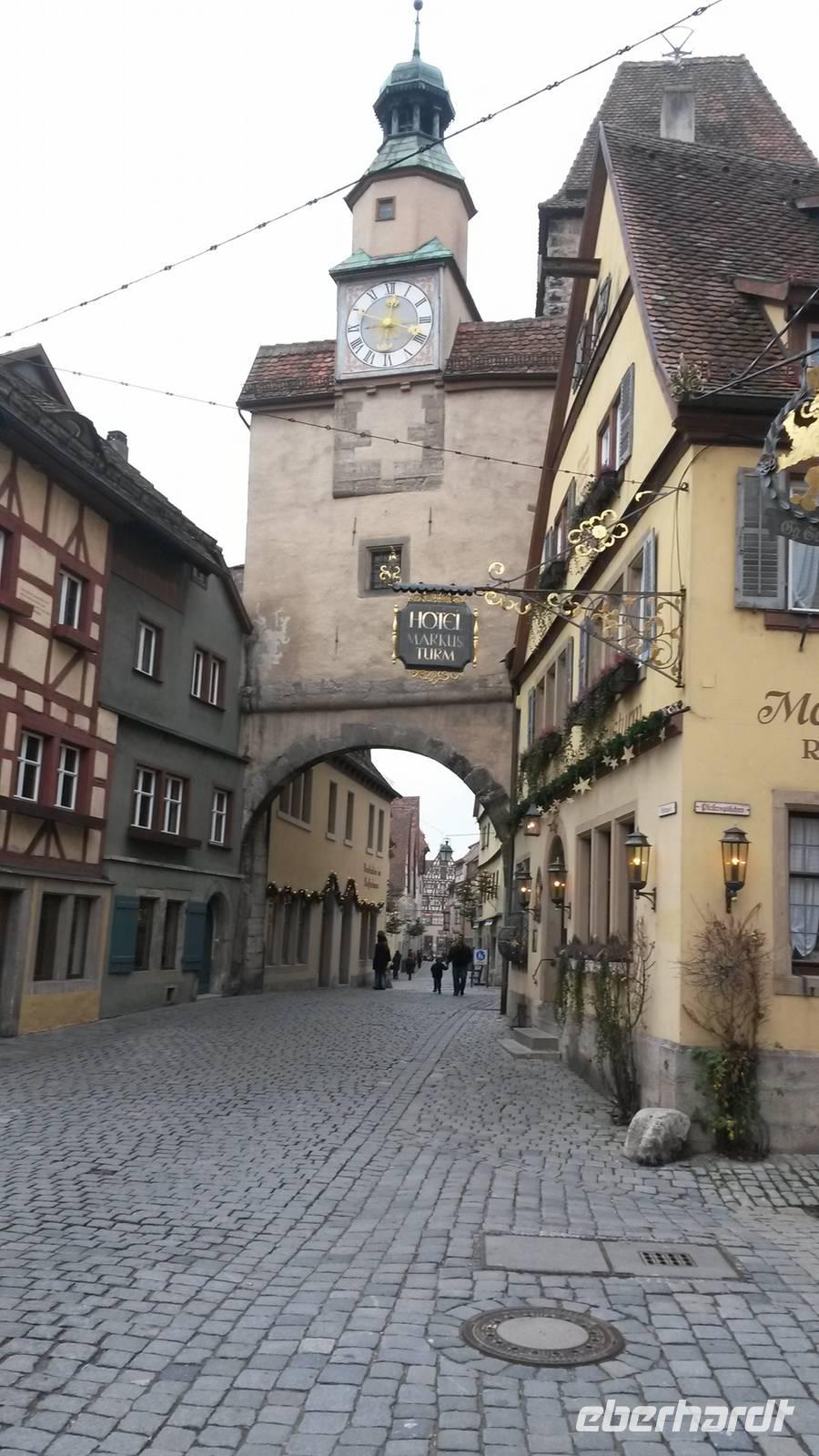 Frisch und munter treffen wir uns am letzten Tag des Jahres zum Frühstück um 7.30 Uhr. Als erster Reisebus treffen wir in Rothenburg ob der Tauber ein. So bleibt genügend Zeit, um entlang der Spitalgasse in Rothenburg zu unserem Treffpunkt mit unserer Stadtführerin Claudia zu gehen. Es ist noch fast still in Rothenburg ob der Tauber. Das sonst so quirlige Städtchen zeigt sich verschlafen - gut für uns, so auch der Kommentar unserer Stadtführerin, denn alle Gäste können ihren sehr humorvollen Ausführungen zur Stadtgeschichte ohne Anstrengung folgen.