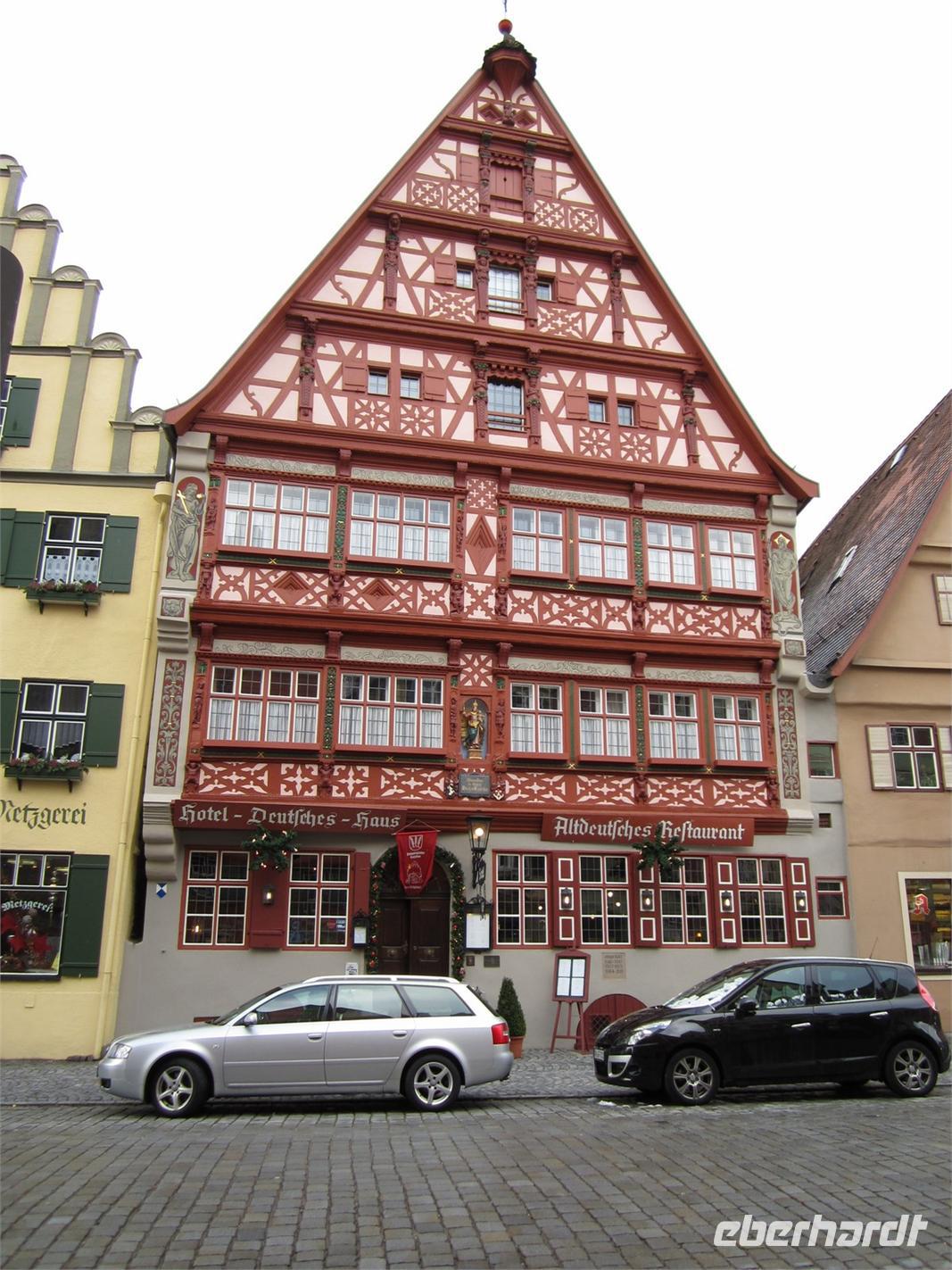Die Stadtführerinnen führten uns von der Schwedenwiese durchs Wörnitzer Tor zum Altrathausplatz mit dem Haus der Geschichte, zum Münster St. Georg, weiter zum Spital, mit einem kurzen Absteche durch das Rothenburger Tor. Entlang der Dr. Martin-Luther Str. sehen wir die vielen Fachwerkbauten, unter denen das Deutsche Haus wohl der schönste Fachwerkbau ist.