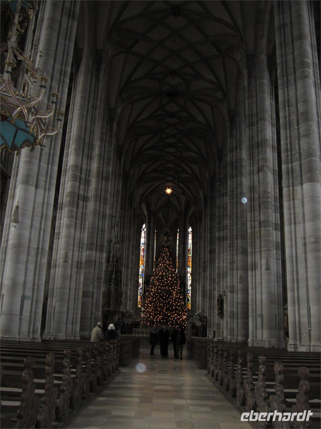 Unser erster Stopp gilt der alten Frankenmetropole Nürnberg. Das Wetter spielt mit und wir fahren entlang der Stadtbefestigung bis zum Hallinger Tor. Wir finden Platz auf den Busparkplätzen und laufen zum Markt. Als Erstes erblicken wir den „Schöner Brunnen“. Auf dem Markt wird noch emsig am Abbau der Stände des „Christkindelmarktes“ gearbeitet. Anstelle des Christkindels beobachten wir den „Männleinlauf“ an der Frauenkirche. Genau 12.00 Uhr laufen die sieben Kurfürsten um Kaiser Karl dem IV herum.