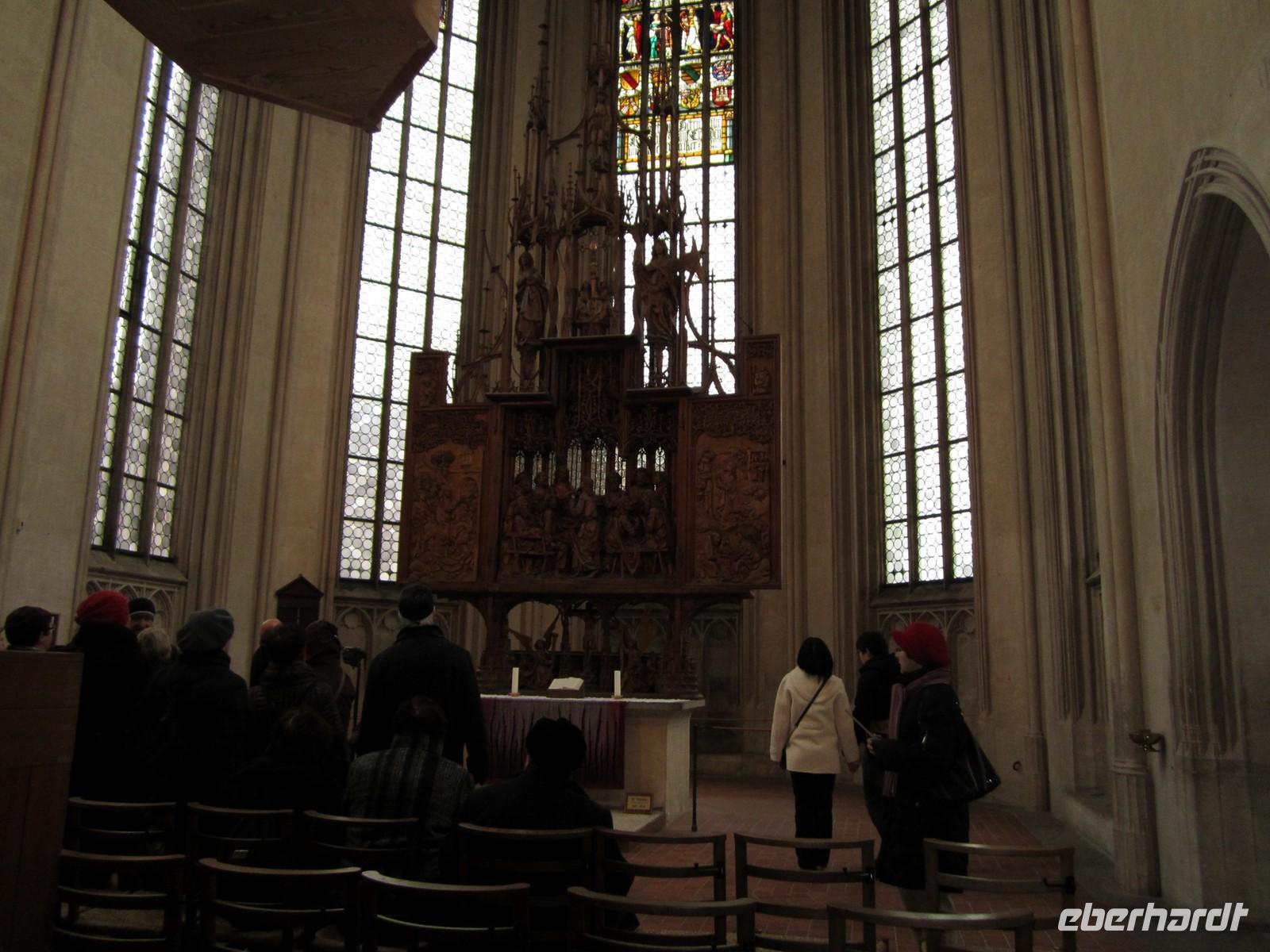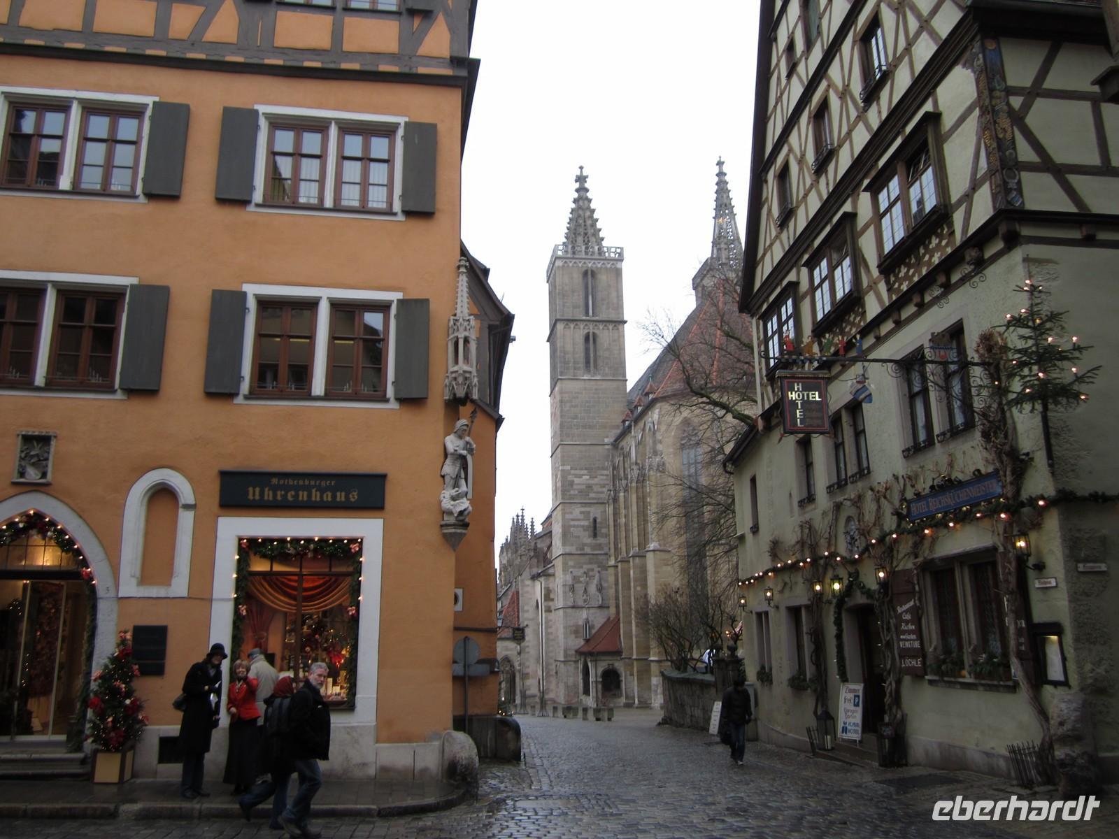 Das Jahr 2011 geht zu Ende. Unsere Fahrt führt uns heute zu einem Höhepunkt der Reise nach Rothenburg ob der Tauber. „Dem „deutschen Jerusalem des Mittelalters“ Die Stadtpfarrkirche St. Jakob mit seinem Heilig-Blut-Altar von Riemenschneider, ist Herzstück der Stadt. Unser Stadtrundgang führt uns vom Markt mit dem Rathaus zum St.Jacob weiter zum Spital, dem Gymnasium zur Burg mit herrlichem Blick in das Taubertal.