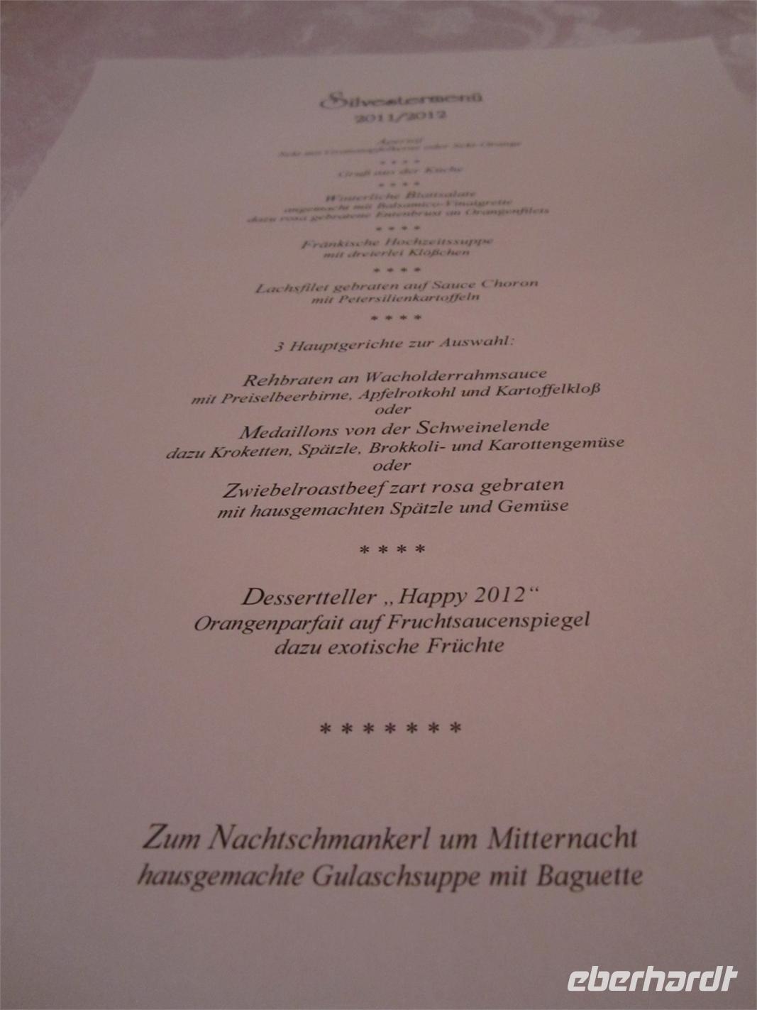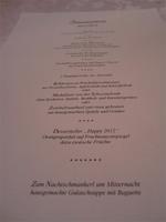 Die Küche lässt nichts offen, bei einem 5-Gänge-Menü lassen wir das Jahr 2011 ausklingen und tanzen bei Livemusik in das neue Jahr. Sehr zufrieden beenden wir die Feier.