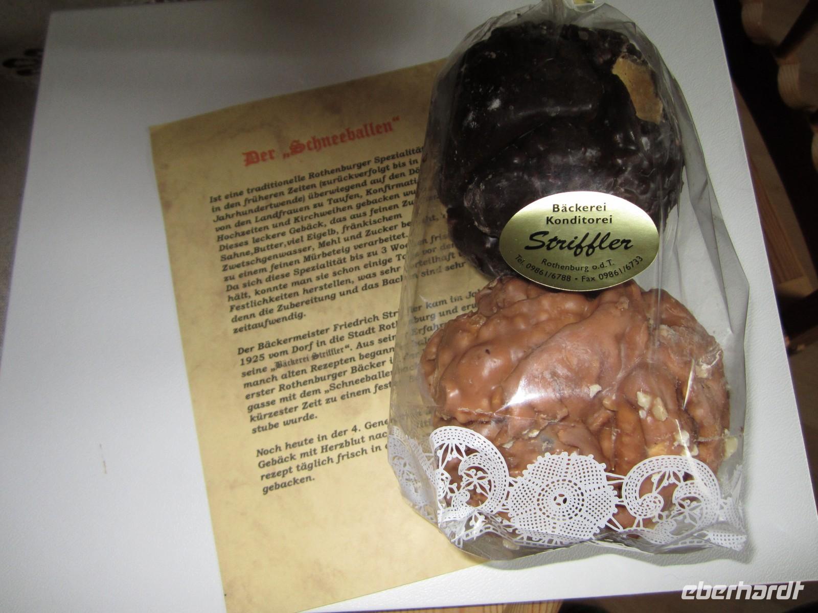 Danach haben wir noch Zeit die Stadt individuell zu erkunden. Fehlen darf dabei nicht ein Besuch des Weihnachtsmuseums der Käthe Wohlfahrt. Eine traditionelle Spezialität von Rothenburg muss auch noch probiert werden. „Der Schneeballen“. In den früheren Zeiten wurde überwiegend in den Dörfern von den Landfrauen zu Taufen, Konfirmationen, Hochzeiten und Kirchweihen der Schneeballen gebacken.