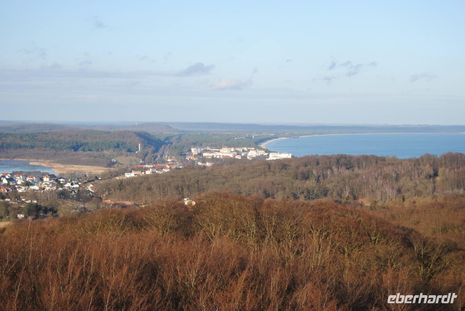 Nachdem wir in den vergangenen Tagen unsere geplante Wanderung zur Granitz aufgrund von schlechter Sicht verschoben hatten, erwartete uns heute optimales Wetter mit Sonnenschein und klarer Sicht um den Aufstieg zum Jagdschloss Granitz von Binz aus aufzunehmen. Nach ca. 1,5 h stündiger Wanderung durch das Waldgebiet der Granitz erreichten wir den Tempelberg, auf dem sich das 1846 fertiggestellte Jagdschloss befindet und heute eines der am meisten besuchten Orte auf Rügen ist. Nachdem wir die 155 Stufen bis auf den Schlossturm erklimmt hatten, bot sich uns ein herrlicher Blick über Teile der Insel sowie bis auf das Festland nach Lubmin. Nach unserem Abstieg vom Jagdschloss erreichten wir dann am Nachmittag wieder zu Fuß unser Hotel in Binz.
