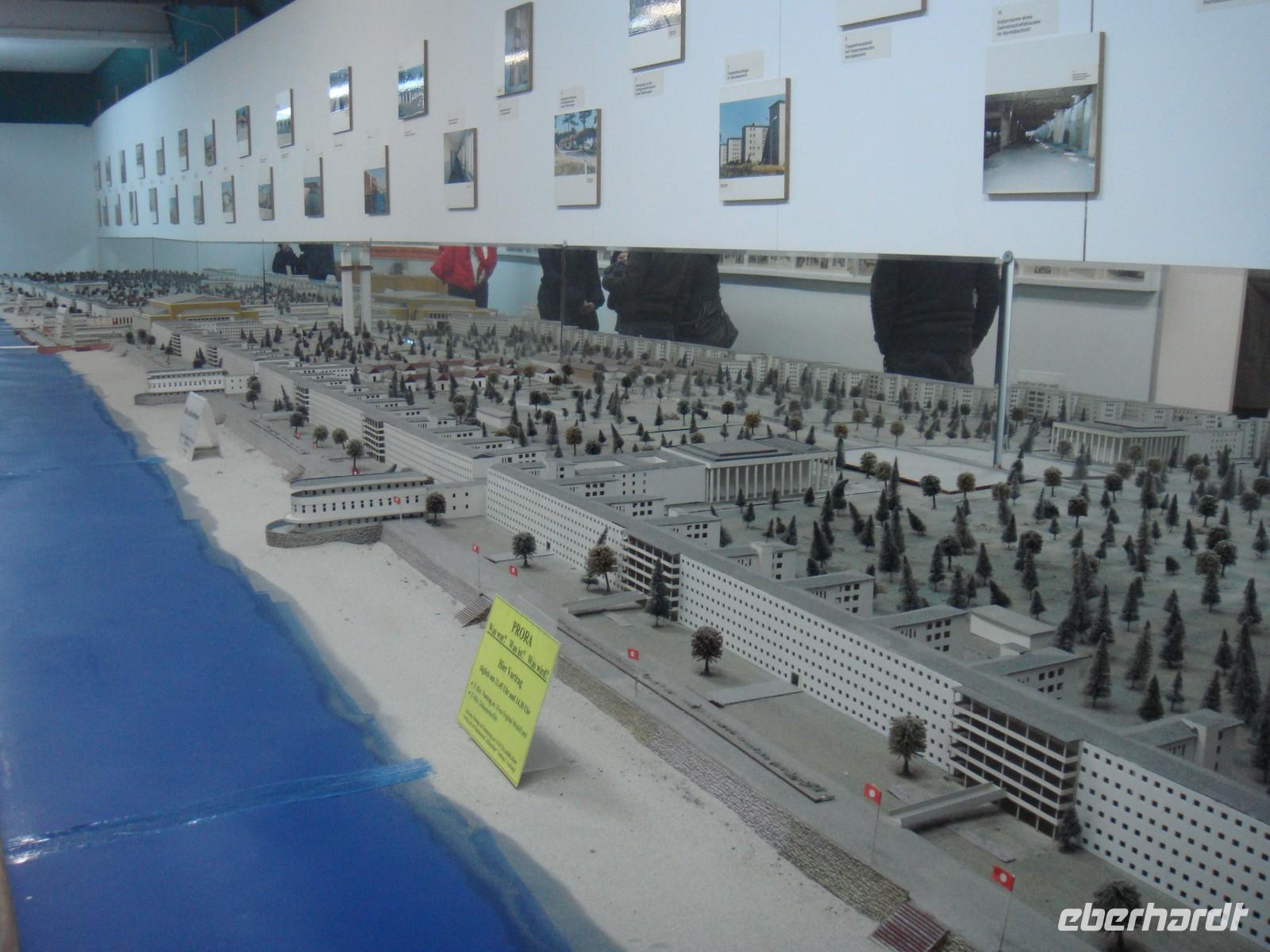 Ein weiteres Ausflugsziel ist der "Koloss von Prora", die berühmt-berüchtigte Ferienanlage der Nationalsozialisten. "Kraft durch Freude" hieß damals das zweifelhafte Motto. Zu Zeiten der DDR diente die nie fertiggestellte Anlage als Kaserne. Heute sind hier zahlreiche sehenswerte Museen und Ausstellungen. Vom Hotel aus laufe ich entspannt in einer Stunde am Strand entlang bis zu dem 2,5 Kilometer langen Betonklotz. Doch erst aus der Luft wird das ganze monumentale Ausmaß des sogenannten "KdF-Bades" deutlich.