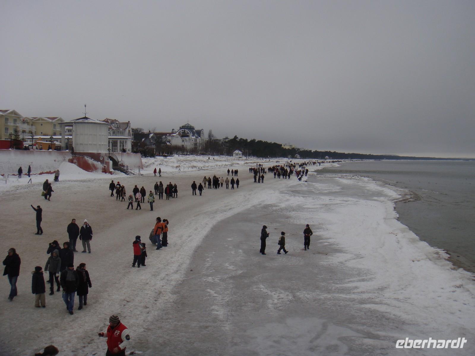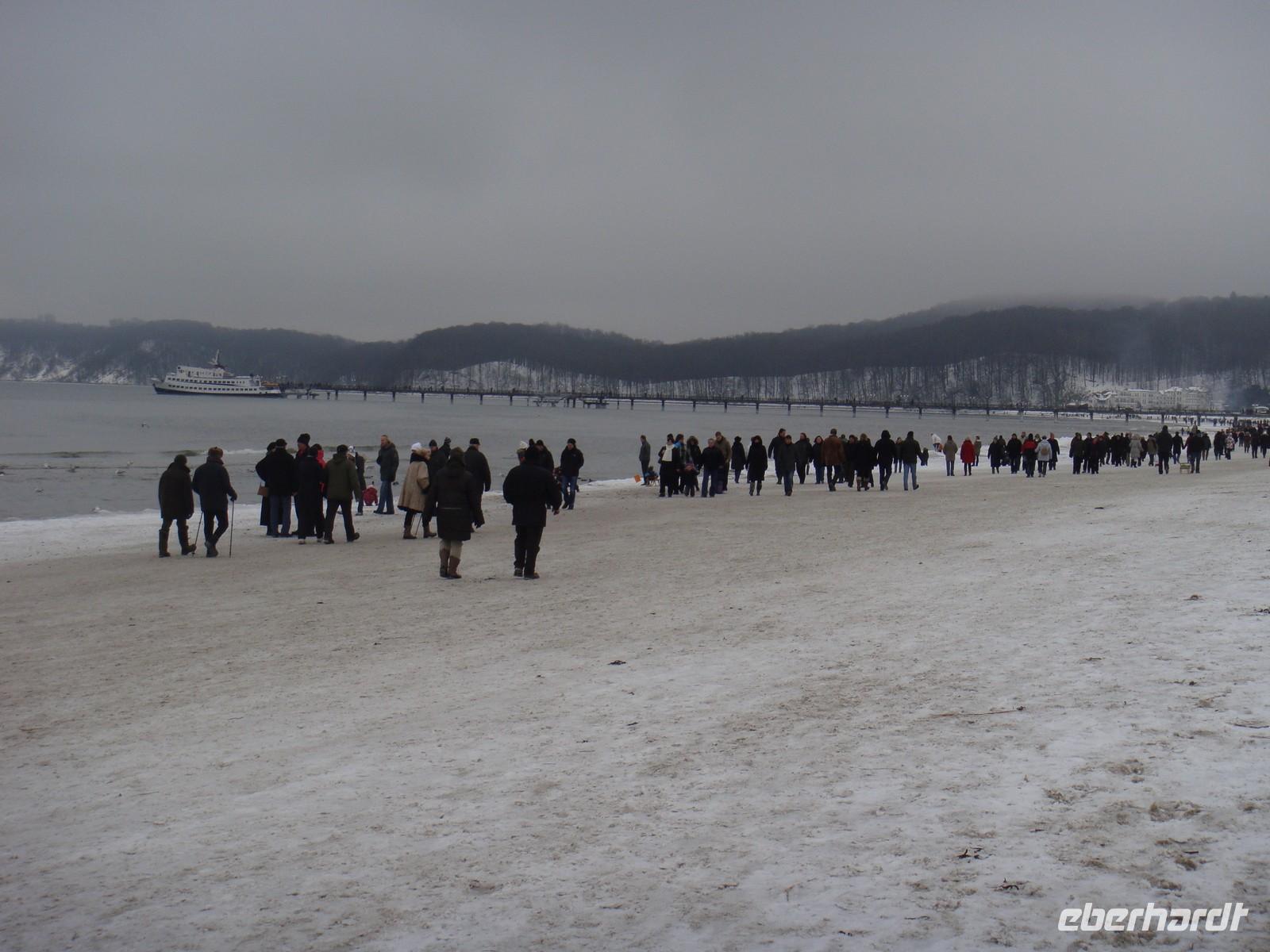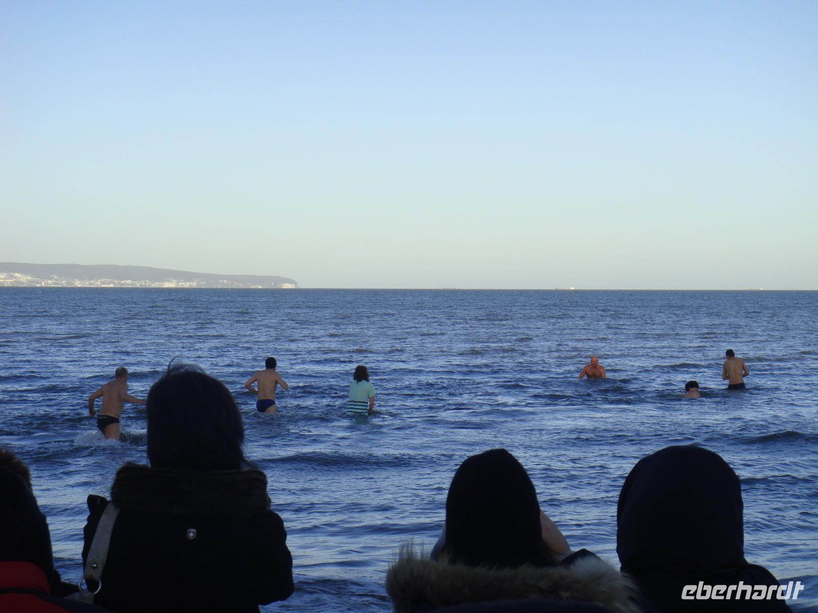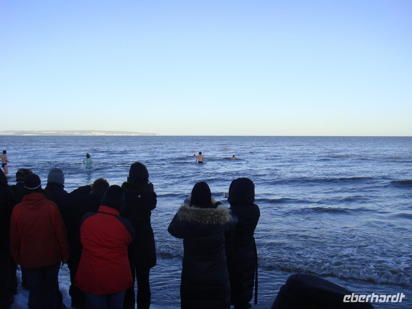 etwas länger, aber die Frühaufsteher unter uns sind bereits auf den Beinen und genießen die klare Seeluft am Strand. Am Nachmittag steht das alljährliche Neujahrsanbaden an. Na, werden sich die Eberhardt-Gäste trauen und in das 0° kalte Wasser der Ostsee gehen?! Am Ende sind es zwar keine Gäste unserer Gruppe, doch 6 Mutige aus Dresden, Berlin, Potsdam und Hoyerswerda begeistern die unzähligen Schaulustigen, die sich das Spektakel natürlich nicht entgehen lassen.