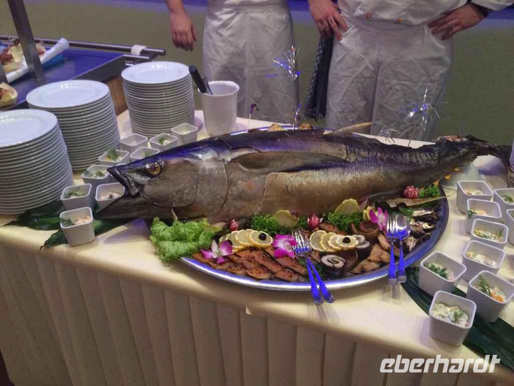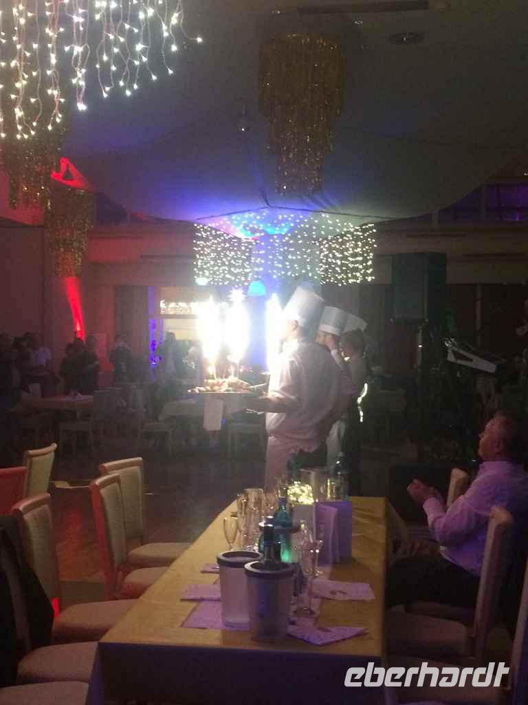 19.00 Uhr war Einlass ins Restaurant Hiddensee. Märchenhaftes Silvester war das Motto des Abends. Überall war es toll geschmückt und die Tische festlich gedeckt. Nach der offiziellen Begrüßung war das leckere Galabuffet eröffnet. Der riesige Thunfisch war ein Blickfang und schnell verspeist. Eine Live Band lud zum Tanzen ein und ein Best of Gebrüder Grimm Programm verkürzte die Zeit. Dann kam als Überraschung Olaf Berger und begeisterte mit alten und neuen Hits. Kurz vor Mitternacht gab es noch Eistorte. Das Feuerwerk am Strand war super schön und lang. Gegen 1.00 Uhr sangen die Mädchen und Jungs der Showbühne ABBA -Hits. Es war ein gelungener Start ins neue Jahr!