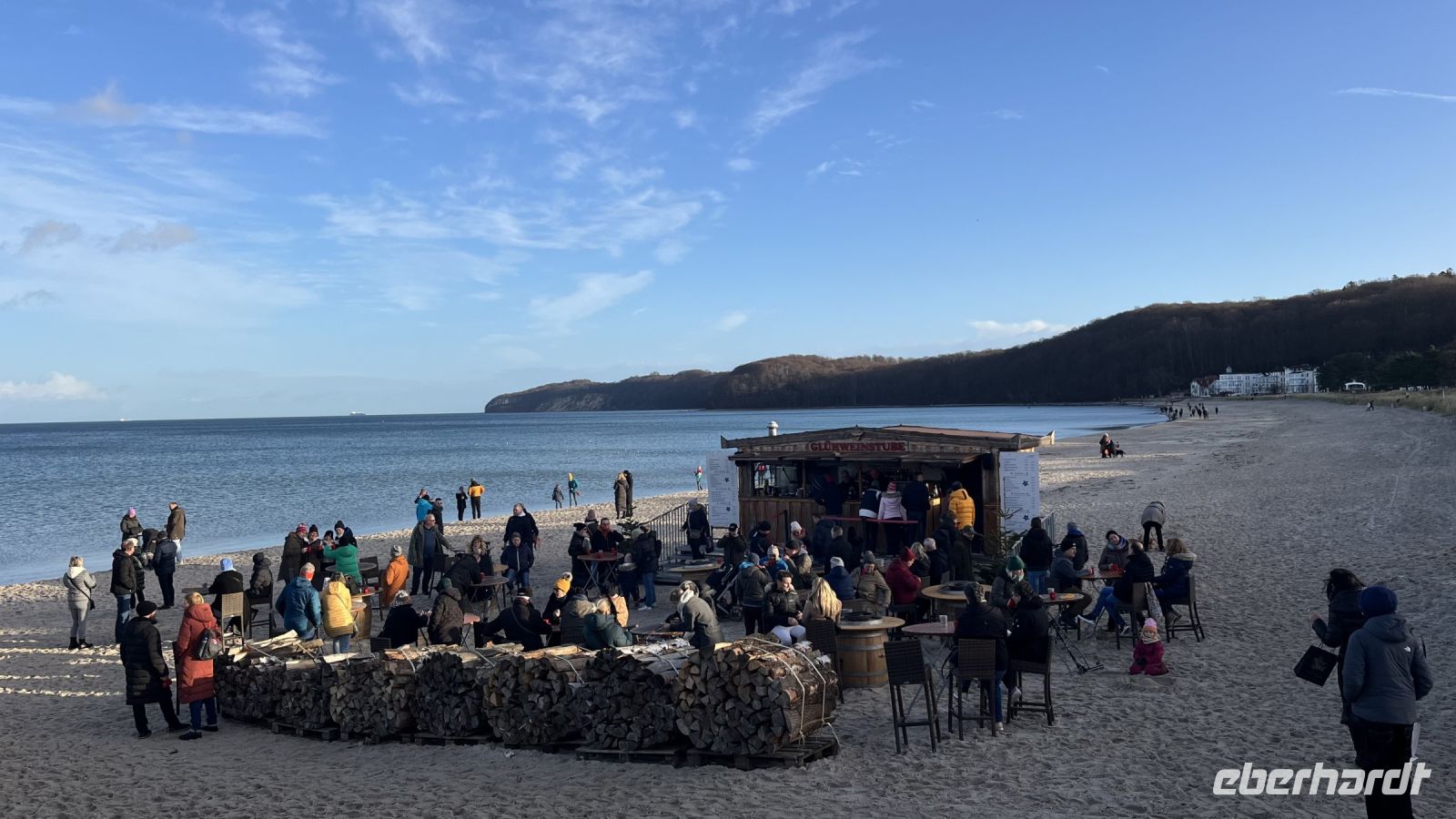 Der sonnige Tag lud zum Strandspaziergang ein. Für ganz Mutige gab es gegen 13 Uhr die Möglichkeit, das neue Jahr mit einem Bad in der Ostsee zu begrüßen. Es muß schon ziemlich kalt gewesen sein, denn lange hielt es niemanden im Wasser, aber "Hut ab" vor all den Wagemutigen.