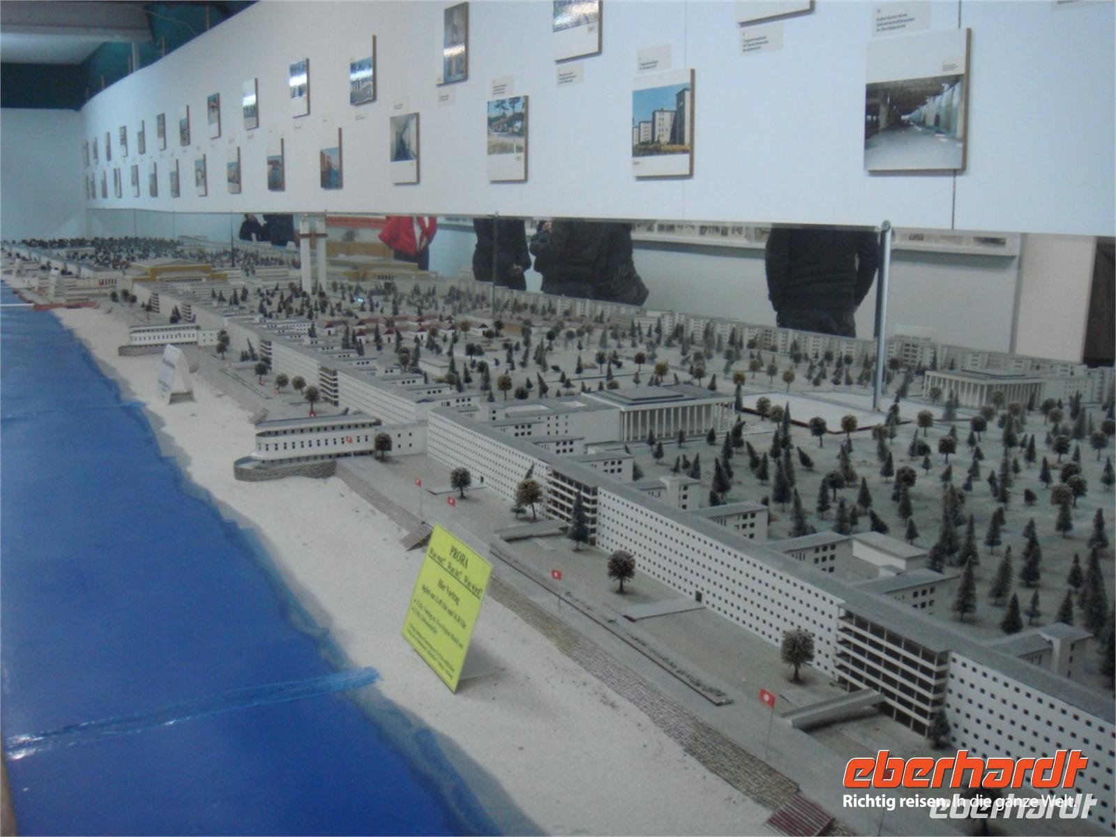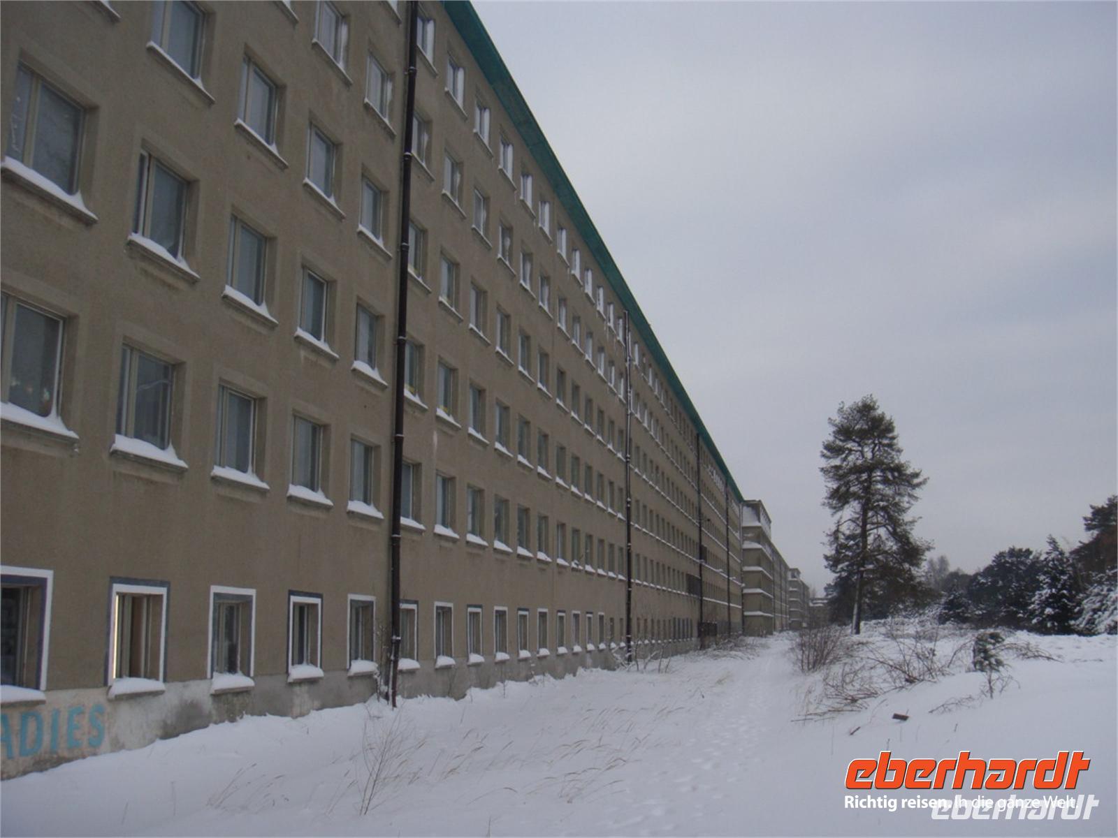 Ein weiteres Ausflugsziel ist der „Koloss von Prora", die berühmt-berüchtigte Ferienanlage der Nationalsozialisten. „Kraft durch Freude" hieß damals das zweifelhafte Motto. Zu Zeiten der DDR diente die nie fertiggestellte Anlage als Kaserne. Heute sind hier zahlreiche sehenswerte Museen und Ausstellungen. Vom Hotel aus laufe ich entspannt in einer Stunde am Strand entlang bis zu dem 2,5 Kilometer langen Betonklotz. Doch erst aus der Luft wird das ganze monumentale Ausmaß des sogenannten „KdF-Bades" deutlich.