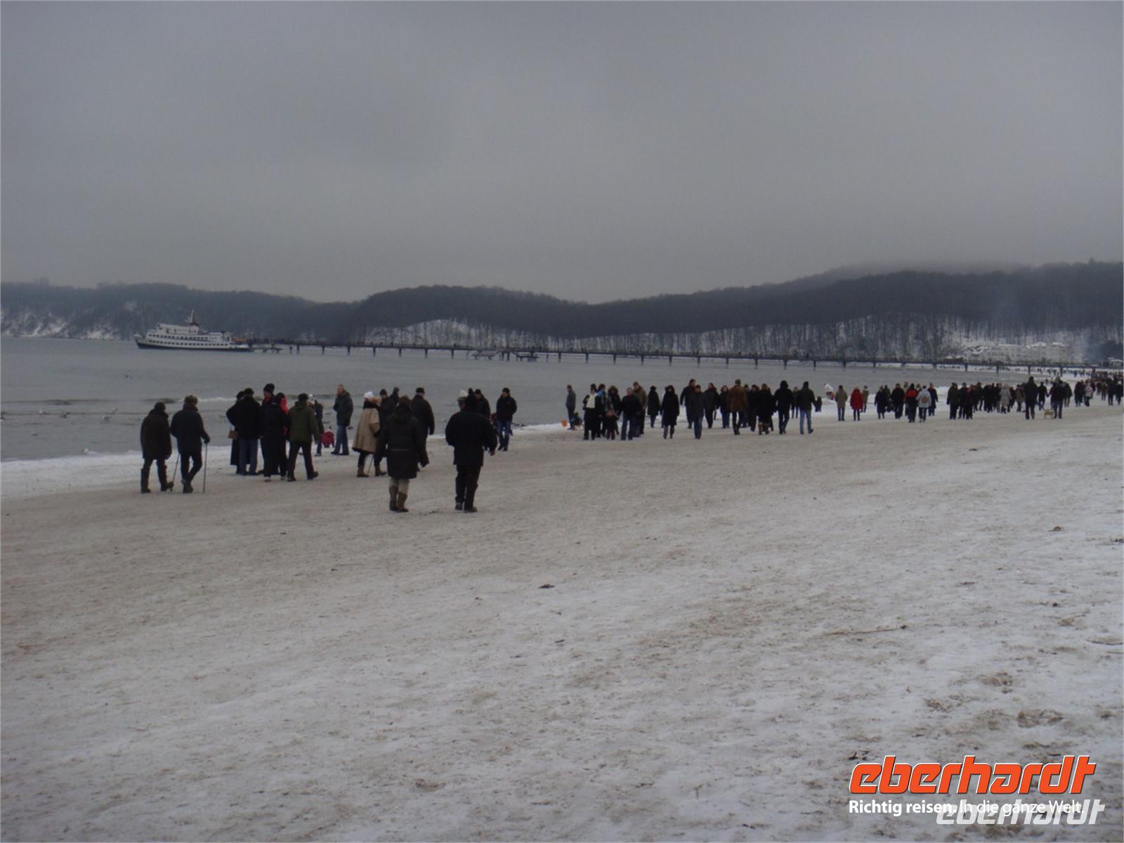 Den ersten Tag des neuen Jahres beginnen wir mit einem Schlemmerfrühstück. Einige Gäste schlafen etwas länger, aber die Frühaufsteher unter uns sind bereits auf den Beinen und genießen die klare Seeluft am Strand. Am Nachmittag steht das alljährliche Neujahrsanbaden an. Na, werden sich die Eberhardt-Gäste trauen und in das 0° kalte Wasser der Ostsee gehen?! Am Ende sind es zwar keine Gäste unserer Gruppe, doch 6 Mutige aus Dresden, Berlin, Potsdam und Hoyerswerda begeistern die unzähligen Schaulustigen, die sich das Spektakel natürlich nicht entgehen lassen.