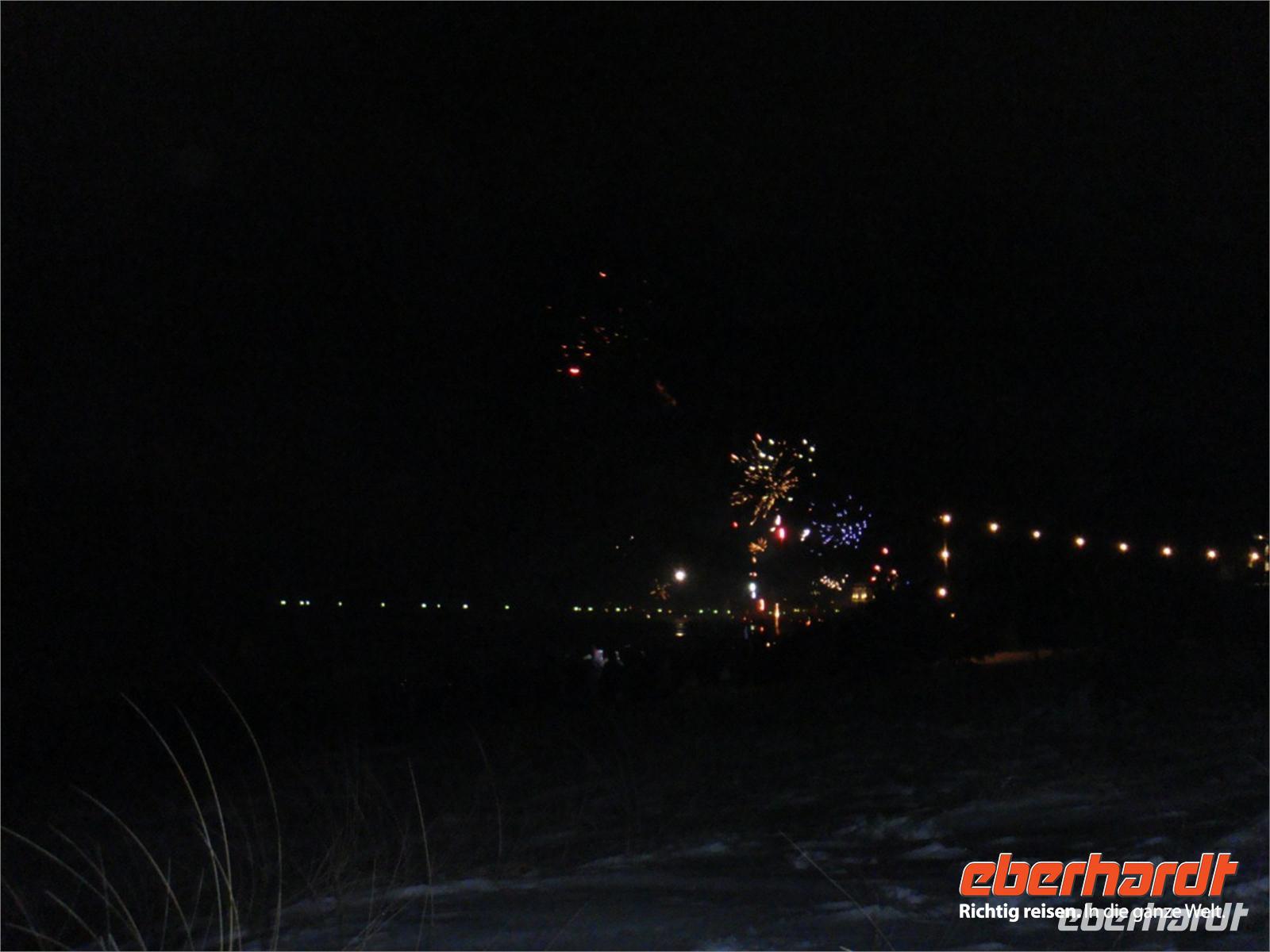 Mitternacht bekommen wir eine Flasche Champagner, mit der wir auf das neue Jahr anstoßen. Das neue Jahr 2011 wird anschließend am Ostseestrand gleich am Hotel ordentlich begrüßt. Ein imposantes Laserfeuerwerk hat das Hotel organisiert. Viele, viele Gäste bestaunen das Feuerwerk in der sternenklaren Nacht! Im Saal tanzen wir anschließend in das neue Jahr hinein - eine tolle Silvesterfeier geht zu Ende.