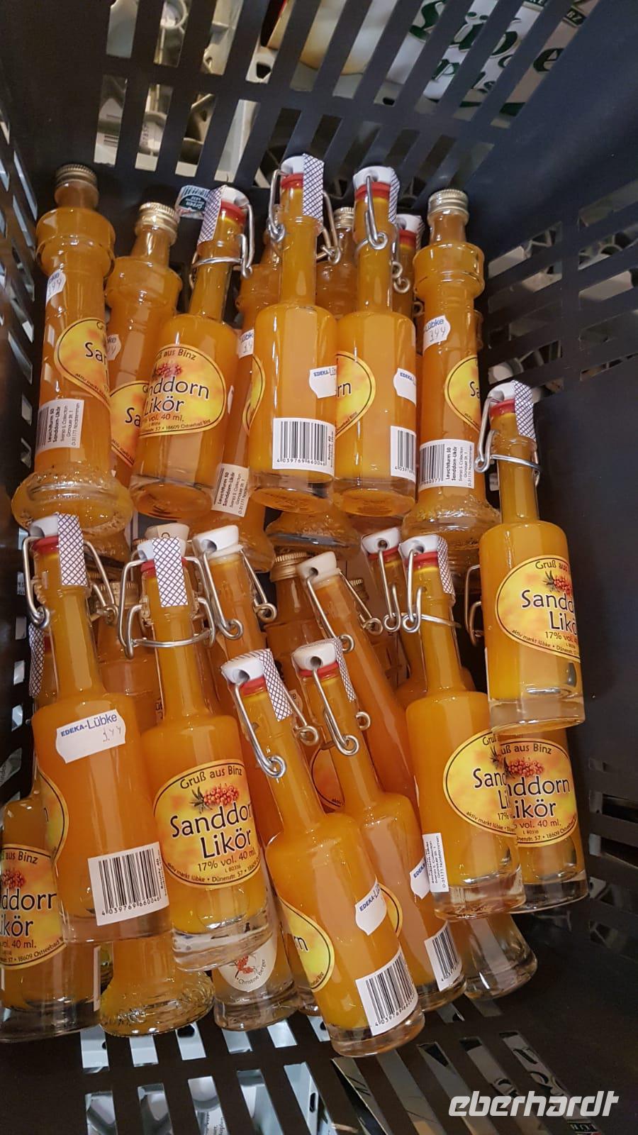 Fläschchen Sanddornlikör aus Binz, welcher für die Ostseeregion typisch ist.