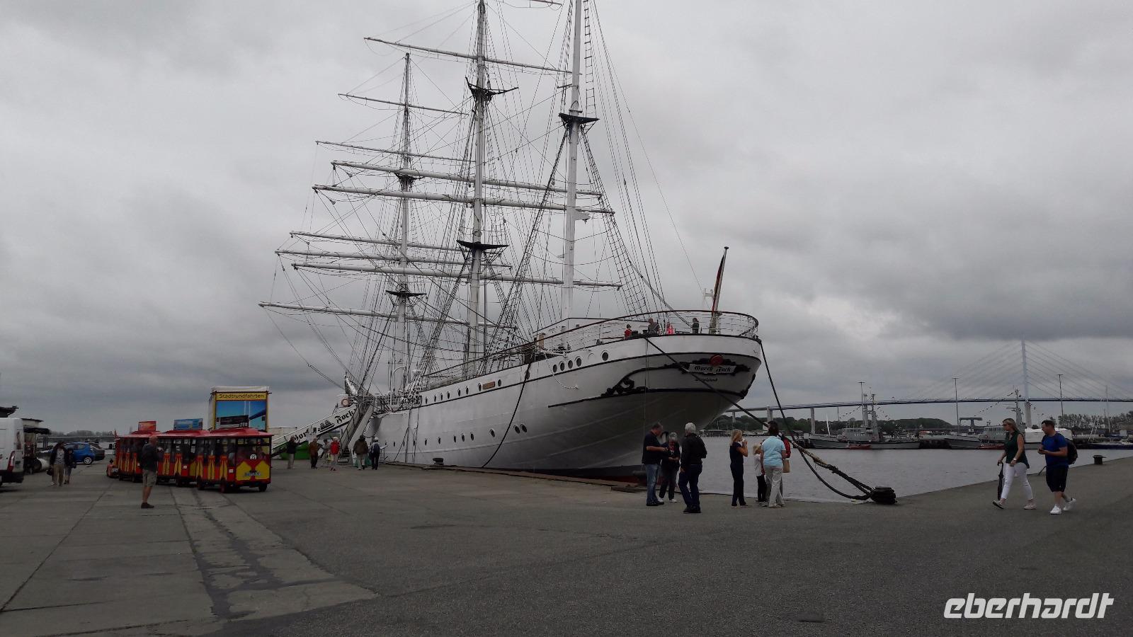 Von Dresden aus mit weiteren Zustiegen entlang der Autobahn fuhren wir über Berlin immer Richtung Norden. Am Nachmittag erreichten wir Stralsund, wo wir erste maritime Eindrücke , z.B. mit dem Blick auf die Gorch Fock oder die imposante Rügenbrücke, sammeln konnten.