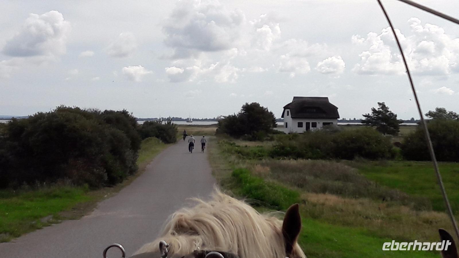 Nach dem Frühstück ging es wieder zum Hafen in Breege, um von dort aus zur Insel Hiddensee zu schippern. Eine ruhige Fahrt durch die Boddenlandschaft folgte, in Vitte wurden wir schon von unsere Pferdekutsche zur Inselrundfahrt erwartet.