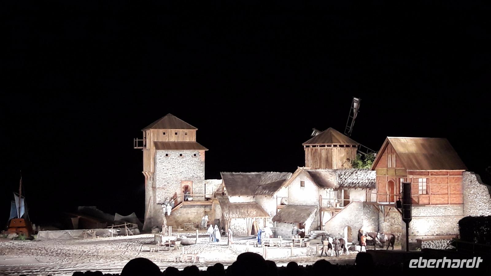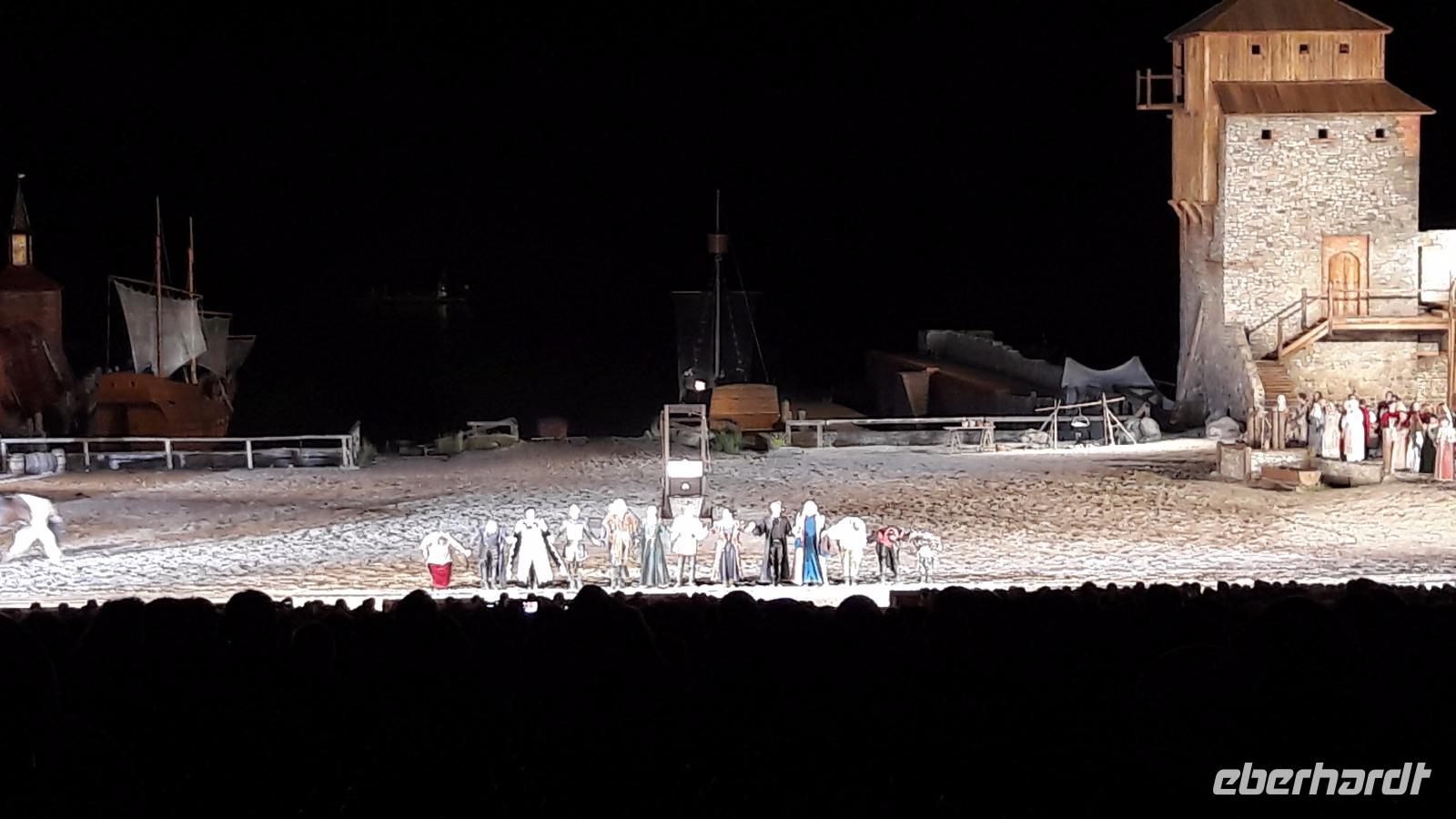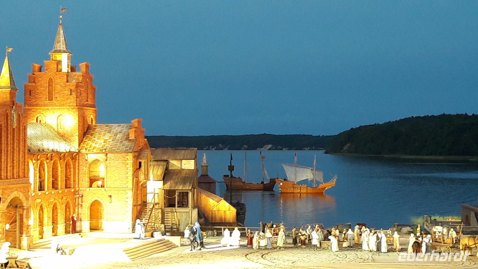 Zurück am Bus ging es flott in Richtung Hotel zum zeitigen Abendessen, heute stand ja noch das Hightlight auf dem Programm: die Störtebeker-Festspiele.