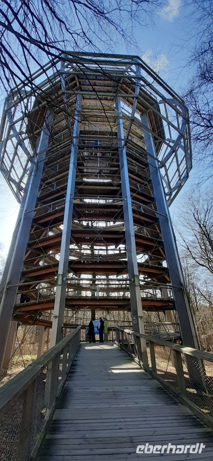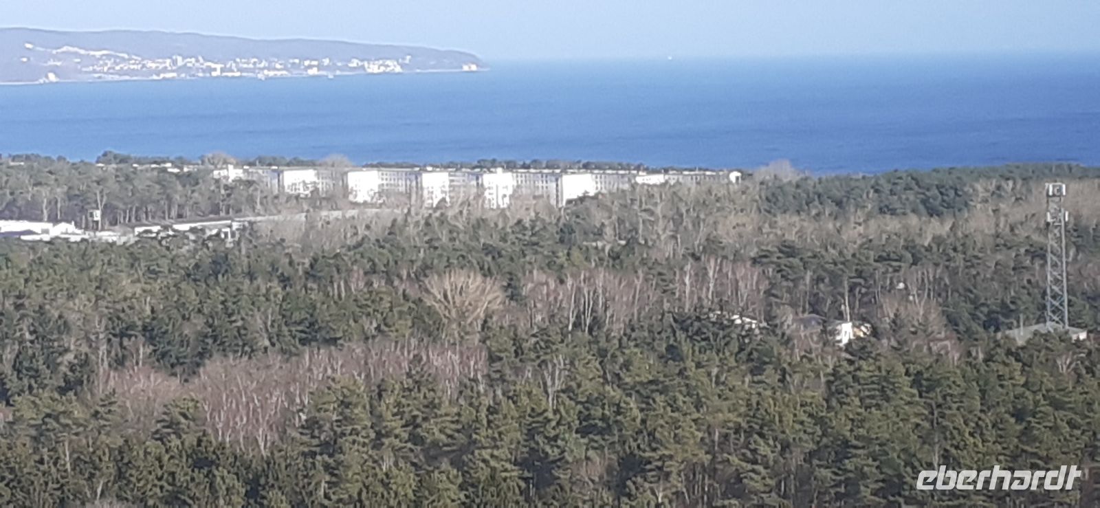 Auf nach Prora zum Besuch des Baumwipfelpfad. Der Gästeführer wartete schon auf uns. Er gab viele wissenswerte Erläuterungen und Hinweise über Fauna und Flora. Mit einer Gesamtlänge von 1.250 Metern und einer Höhe von 4 bis 17 Metern schlängelt sich der Baumwipfelpfad durch den Buchenmischwald. Der Höhepunkt des Pfads ist der 40 Meter hohe Aussichtsturm, auch Adlerhorst genannt.