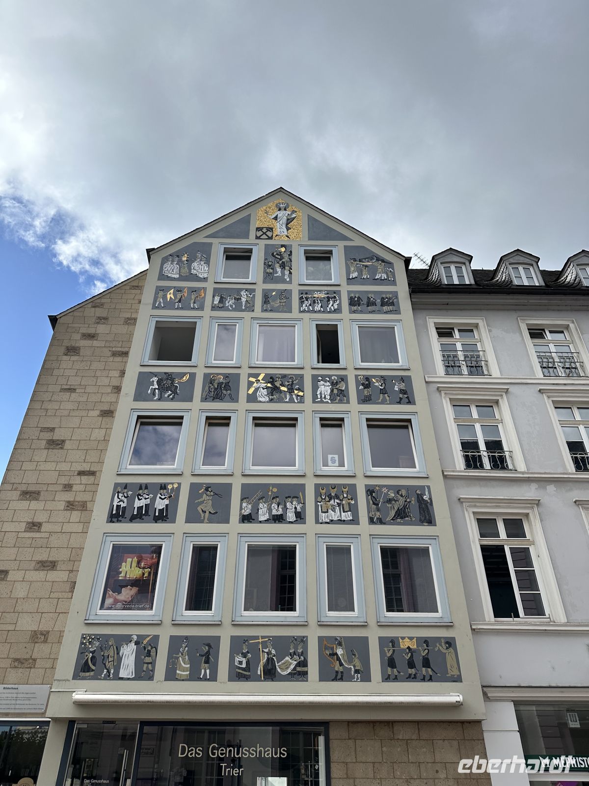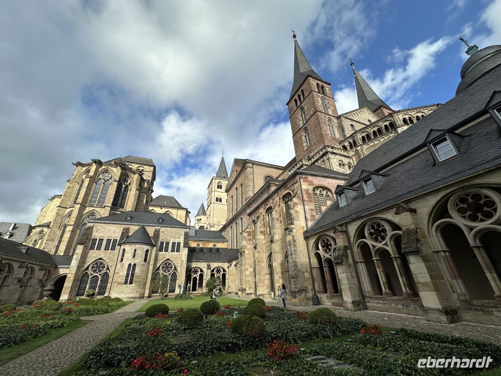 Unser Tag in Trier beginnt am Ufer der Mosel, direkt in der Nähe der Römerbrücke, ein erstaunliches Bauwerk aus rotbraunem Buntsandstein, der seine Farbe dem hohen Eisengehalt verdankt. Zunächst fahren wir mit dem Reisebus zum Petrisberg. Der Ausblick von hier ist spektakulär: Wir sehen die gesamte Stadt unter uns und unsere Stadtführerin erklärt uns den Aufbau von Trier, den man von hier oben sehr gut erkennen kann. Außerdem sind die Mosel und die vielen fast endlos scheinenden Weinberge zu sehen. Gerade hier oben auf dem Petrisberg wird die immense Bedeutung der Weinberge für die Region sichtbar. Die steilen Hänge sind nicht nur malerisch, sondern das Fundament des berühmten Mosel-Weinbaus. Der Wein ist ein wichtiges Exportgut und hat die Entwicklung der Städte entlang des Flusses maßgeblich beeinflusst. Die Schieferböden speichern die Wärme und verleihen den Riesling-Trauben ihren einzigartigen, mineralischen Geschmack. Diese Weinberge sind ein prägender Teil der Kulturlandschaft und tragen zur Identität der ganzen Region bei. Über enge Kurven (der arme Busfahrer) geht es wieder hinunter ins Zentrum von Trier. Wir fahren vorbei an den Kaiserthermen, die einst die drittgrößte Therme im Römischen Reich war und nicht nur als Badehaus diente, sondern auch ein sozialer Treffpunkt und Statussymbol war. Wir fahren weiter entlang der grünen Alleen, die um die Innenstadt führen, genau dort, wo einst die Stadtmauer stand. Bald darauf steigen wir aus und gehen zu Fuß weiter. Erstes Ziel ist ein die Porta Nigra, das Wahrzeichen der Stadt Trier. Ihre Bezeichnung "Schwarzes Tor" erhielt sie erst im Mittelalter, als der Sandstein durch Umwelteinflüsse und Verwitterung dunkel wurde. Die Porta Nigra wurde um 170 n. Chr. als Teil der römischen Stadtmauer erbaut. Ursprünglich war das Tor ein strahlend weißer Bau, dessen helle Sandsteine im Sonnenlicht leuchteten. Der Weg führte uns weiter durch die Fußgängerzone bis zum Marktplatz. Ganz in der Nähe befinden sich dort der Trierer Dom und die Liebfrauenkirche. Der Trierer Dom ist mehr als nur eine Kirche; er ist die älteste Bischofskirche Deutschlands und das Herzstück der Stadtgeschichte. Seine Anfänge reichen bis in die Zeit Kaiser Konstantins zurück, und er wurde über die Jahrhunderte immer wieder erweitert und umgebaut, was ihn zu einem einzigartigen architektonischen Zeugnis macht. Direkt nebenan steht die Konstantinbasilika, einst die Thronhalle Kaiser Konstantins des Großen. Sie zeugt mit ihrer beeindruckenden Größe von der einstigen Bedeutung Triers als römische Kaiserresidenz. Die Liebfrauenkirche selbst ist ein Meisterwerk der frühen deutschen Gotik und wurde unmittelbar neben dem Dom erbaut, um die beiden Heiligtümer miteinander zu verbinden. Auf dem Weg zurück unterhält uns die Stadtführerin in ihrer Mundart.