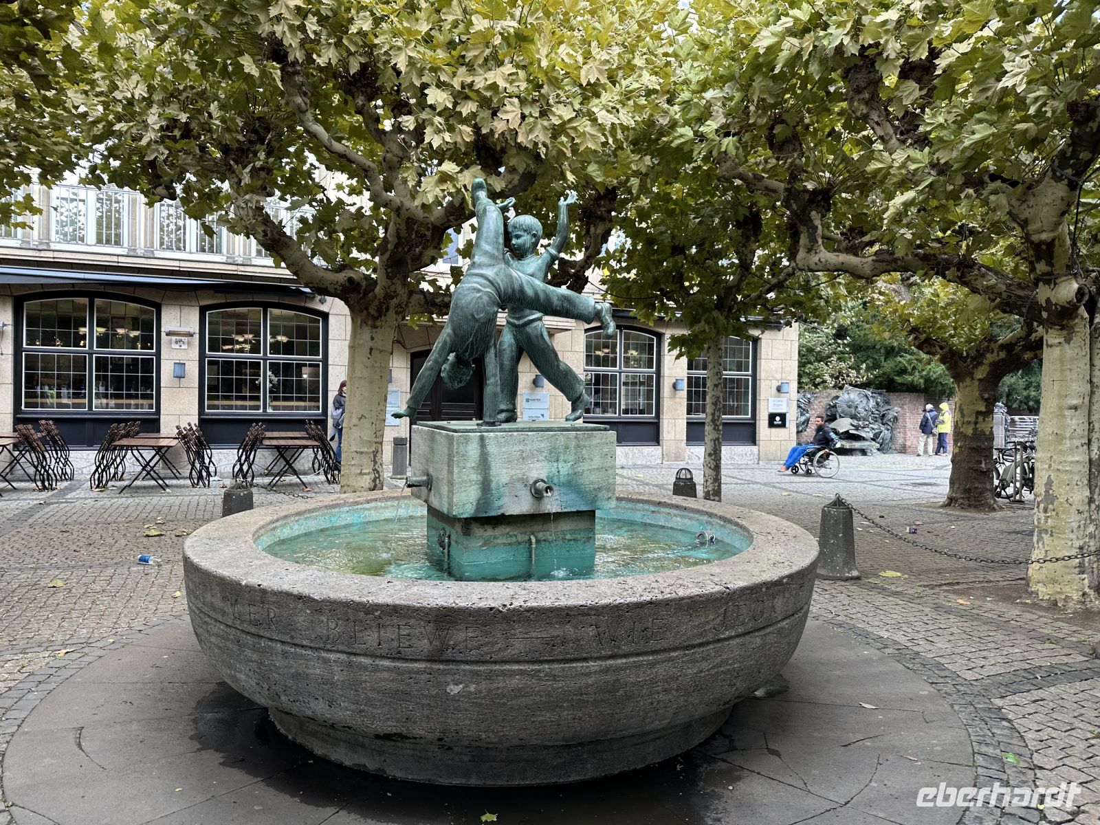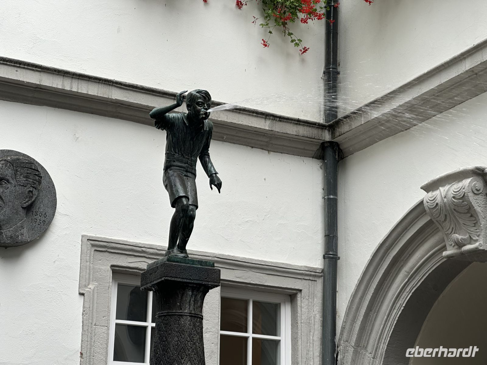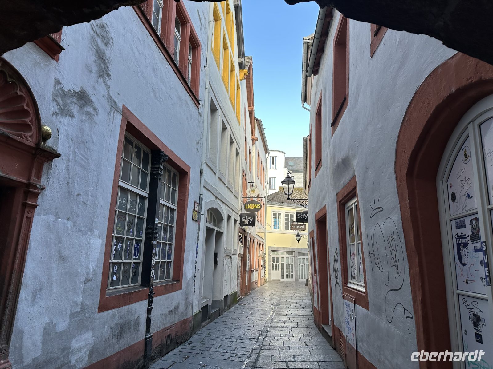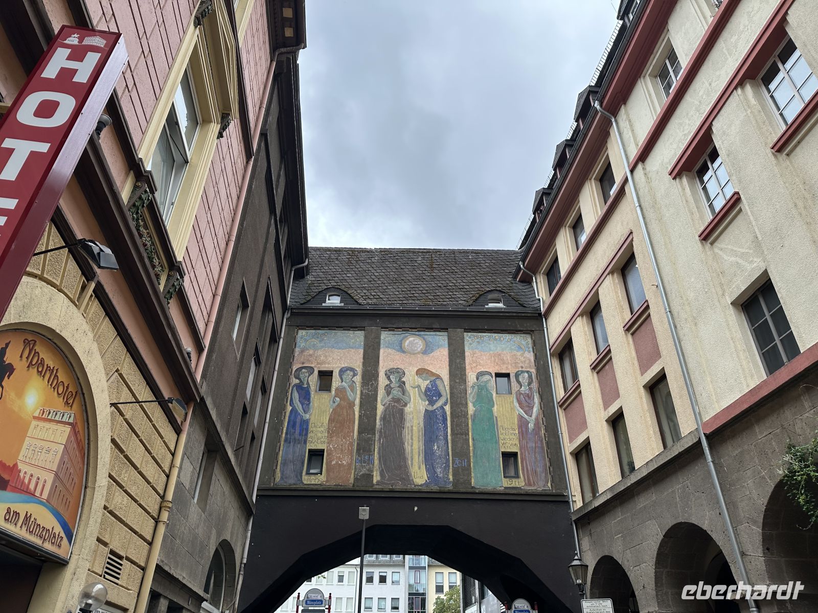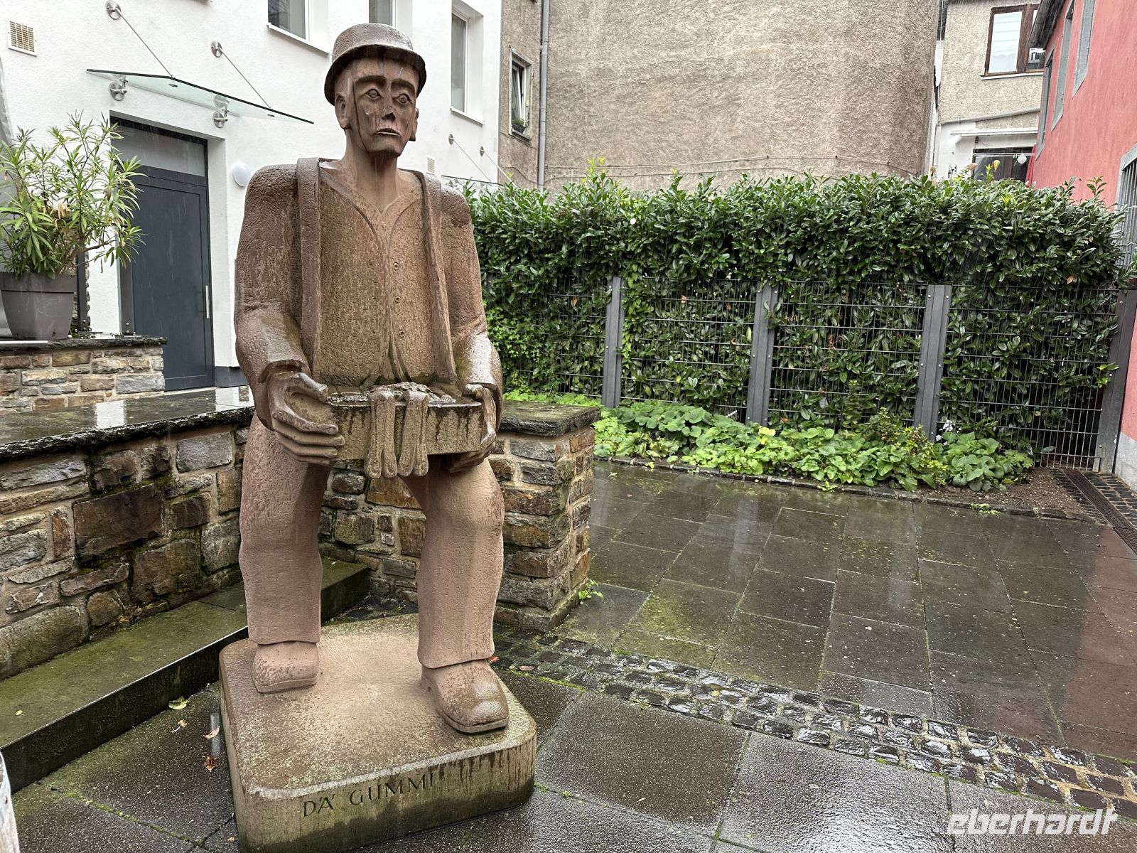 Am Vormittag erwartet uns die lustige Marktfrau Lisbeth, um uns versteckte Ecken in Koblenz zu zeigen und uns Koblenzer Originale vorzustellen. Unser Rundgang beginnt am Münzplatz bei Marktfrau Ringelstein und Schutzmann Otto. In typisch Koblenzer Dialekt berichtet uns Lisbeth über das Treiben auf dem Markt vor mehr als einhundert Jahren. Die Skulptur der Marktfrau Ringelstein und des Schutzmanns Otto erinnert an eine humorvolle Anekdote, die auf einer Plakette am Denkmal in Koblenzer Dialekt zu lesen ist. Der Spruch lautet: "Die Maatfrau sät zom Schutzmann: 'Dat es mir jetzt zo bont! Do hat gepinkelt an mein Mann, dä Nobersch ihre Hond!'" Übersetzt ins Hochdeutsche bedeutet das: "Die Marktfrau sagt zum Schutzmann: 'Das ist mir jetzt zu bunt! Da hat der Hund der Nachbarin auf meinen Mann gepinkelt!'" Die Anekdote wird dadurch besonders lustig, dass das Wort "Mann" im Koblenzer Dialekt nicht nur den Ehemann, sondern umgangssprachlich auch einen Weidenkorb bezeichnen kann. Es geht also nicht um den Ehemann der Marktfrau, sondern um einen ihrer Körbe, auf den der Hund der Nachbarin uriniert hat. Die Skulptur fängt diesen humorvollen Moment einer Alltagsszene zwischen Bürgern und der Polizei perfekt ein. Während wir versuchen, uns einigermaßen vor dem strömenden Regen zu schützen, begegnen wir einem weiteren Koblenzer Original: dem "Dä Gummi". Diese ist Peter Schneider gewidmet, der ein großer, hagerer Mann mit einer eigentümlichen, wackeligen Gangart war, die ihm diesen Spitznamen einbrachte. Trotz seiner Eigenheiten war er für seine fröhliche Art bekannt und beliebt. Weiter geht es zur Pfefferminzje: Die Steinfigur des "Pfefferminzje" finden wir in der Mehlgasse. Das Original, Anna Maria Stein, lebte im 20. Jahrhundert und verdiente ihren Lebensunterhalt mit dem Verkauf von Pfefferminzrollen in den Koblenzer Kneipen. Sie galt als schlagfertig und hatte immer einen flotten Spruch auf den Lippen. Wir flüchten uns nun vor dem immer stärker werdenden Regen in die Liebfrauenkirche. Im Inneren der Kirche gibt es eine Vielzahl von kunsthistorisch bedeutenden Elementen zu entdecken, die die lange Geschichte des Bauwerks widerspiegeln. Es gibt ein eindrucksvolles Sterngewölbe im Mittelschiff, das im 15. Jahrhundert entstand, das als Meisterwerk der Gotik gilt. Außerdem befinden sich hier zahlreiche Grabsteine und Epitaphe aus dem 16. bis 18. Jahrhundert, die an die Familien erinnern, die einst in der Gemeinde von Bedeutung waren. Trotz der Zerstörungen im Zweiten Weltkrieg sind einige ältere Ausstattungsstücke erhalten geblieben, darunter der Nikolaus-Altar. Nach den Zerstörungen im Krieg wurden die alten Fenster ersetzt. Die neuen, farbintensiven Glasfenster wurden von verschiedenen Künstlern geschaffen und erzählen unter anderem die Geschichte von Frauen in der Heilsgeschichte und das brennende Koblenz. Wir kommen nun zum berühmten Schängelbrunnen am Rathaushof. Lisbeth erzählt, dass der Begriff „Schängel“ eine liebevolle mundartliche Bezeichnung für die in Koblenz geborenen Kinder ist. Er hat seinen Ursprung in der Zeit der französischen Besatzung von 1794 bis 1814. Als französische Soldaten in Koblenz stationiert waren, gab es Beziehungen zwischen ihnen und deutschen Frauen. Die Kinder, die aus diesen Verbindungen hervorgingen, wurden häufig mit dem Namen „Jean“ getauft, der französische Name für Johann. Die Koblenzer Bevölkerung hatte Schwierigkeiten, den Namen "Jean" korrekt auszusprechen. Im lokalen Dialekt wurde aus "Jean" die Lautform "Schang". Aus dem "Schang" entwickelte sich dann die Verniedlichungsform "Schängel". Was anfangs oft als Schimpfwort für uneheliche Kinder verwendet wurde, wandelte sich im Laufe der Zeit zu einer stolzen Bezeichnung für jeden in Koblenz Geborenen. Und diesen wurde mit dem Schängelbrunnen ein Denkmal gesetzt. Aber Vorsicht, alle zwei Minuten spuckt der Gute. Inzwischen hat es aufgehört zu regnen und Lisbeths Mann erwartet uns mit „Dudebainchen“-Gebäck und Dähler Drobbe einem regionalen Kräuterschnaps. Am Ende unseres Rundgangs in Koblenz berichtet Lisbeth, die sich nun in eine Anna Wagner verwandelt hat, über das tragische Schicksal der Hexenverfolgung. Dann verabschieden wir uns und kehren zurück zum Schiff. Wir sind nun unterwegs auf dem Rhein Richtung Düsseldorf, das wir gegen 20 Uhr erreichen.