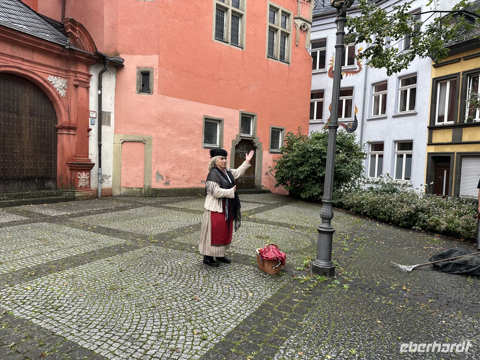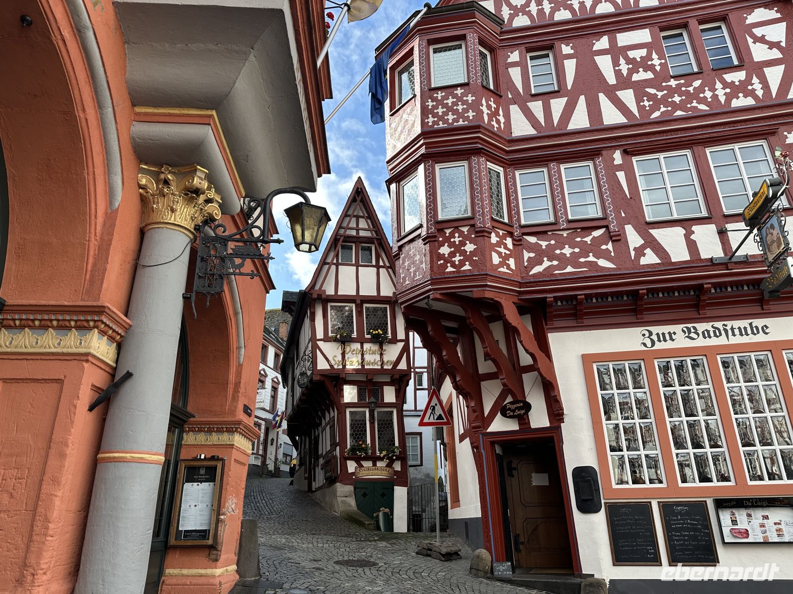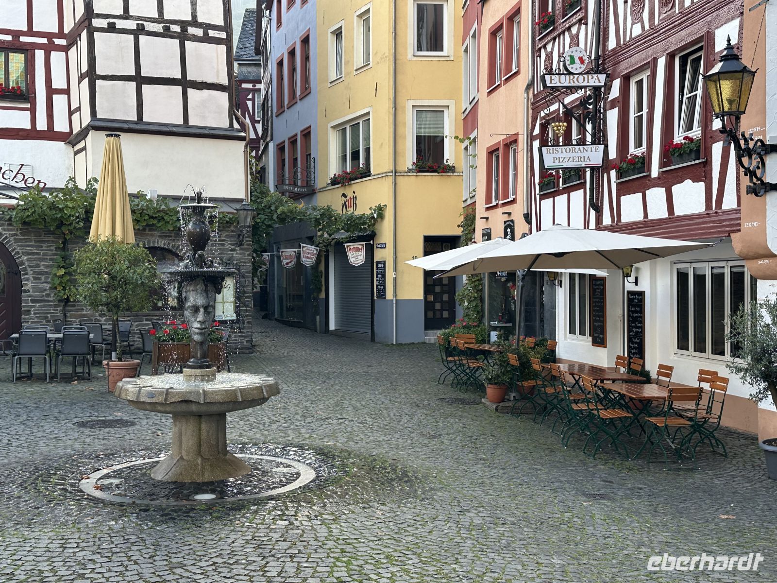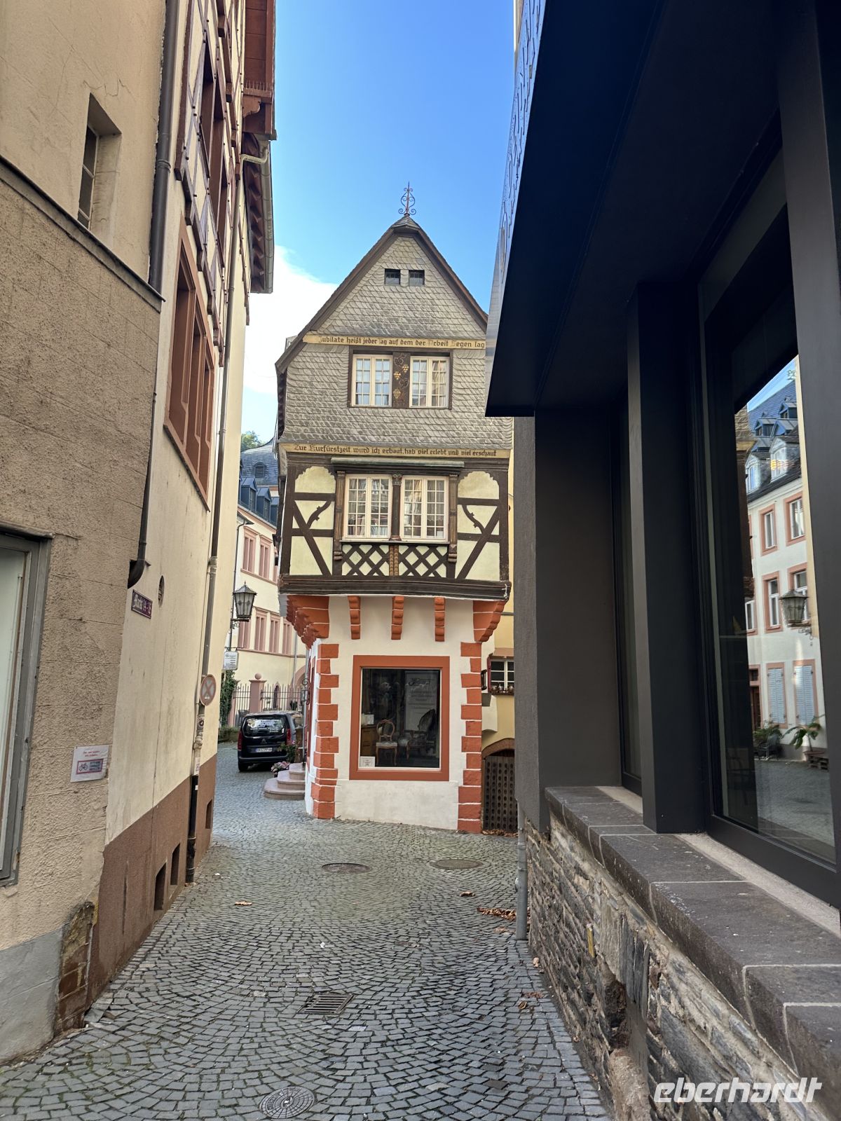 Der ehrenwerte Doctor erwartet uns zum Stadtrundgang. Zum Auftakt dürfen wir den berühmten Doktorwein verkosten (eine günstige Flasche kostet schon 24,- €). Der "Bernkasteler Doctor" hat seinen Namen einer Legende zu verdanken, die sich im 14. Jahrhundert zugetragen haben soll. Die Geschichte besagt, dass der Trierer Kurfürst Boemund II. schwer erkrankte und alle medizinischen Bemühungen fehlschlugen. In seiner Verzweiflung ließ er sich einen Wein von dem besten Weinberg in Bernkastel bringen. Nachdem er von diesem Wein getrunken hatte, soll er sich wundersam erholt haben und wieder gesund geworden sein. Daraufhin soll der Kurfürst ausgerufen haben: "Dies ist der wahre Doctor!", und so erhielt der Weinberg seinen berühmten Namen. Wussten Sie, dass der Bernkasteler Doctor zu den teuersten Weinlagen Deutschlands gehört und die Weine von dort auch von anderen berühmten Persönlichkeiten geschätzt wurden, wie dem britischen König Edward VII.? Nach einer zweiten Weinprobe führt uns der Doctor unterhaltsam durch seine Stadt. Wir flanieren durch die schmalen Gassen mit ihren wunderschönen Fachwerkhäusern und lauschen dabei den Geschichten des Doctors. So bewundern wir die ehemalige kurfürstliche Kellerei, ein historisches Gebäude, das eine besondere Geschichte und Funktion hatte. Sie diente ursprünglich als Verwaltungssitz ("Kellnerei") des Kurfürsten von Trier, wo der "Kellner" als sein Verwalter die Besitzungen des Kurfürsten vor Ort beaufsichtigte. Heute ist das Gebäude, auch bekannt als "Haus Astor", nicht mehr als Kellerei in Betrieb. Es ist das älteste Bruchsteinhaus der Stadt und hat im Laufe der Jahrhunderte verschiedene Nutzungen erfahren, unter anderem als Schule. Trotz Bränden wurde das Haus originalgetreu wieder aufgebaut. Am 08.03.1512 war hier Kaiser Maximilian I. zu Gast. Es ist dokumentiert, dass er acht Goldstücke als Trinkgeld gab.