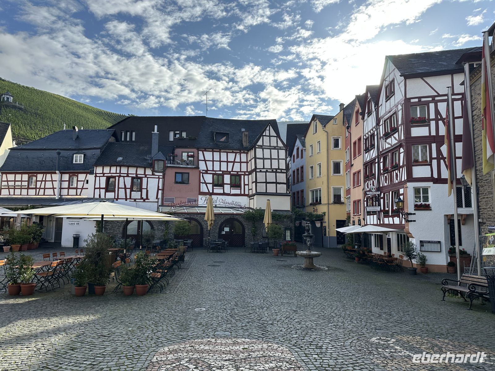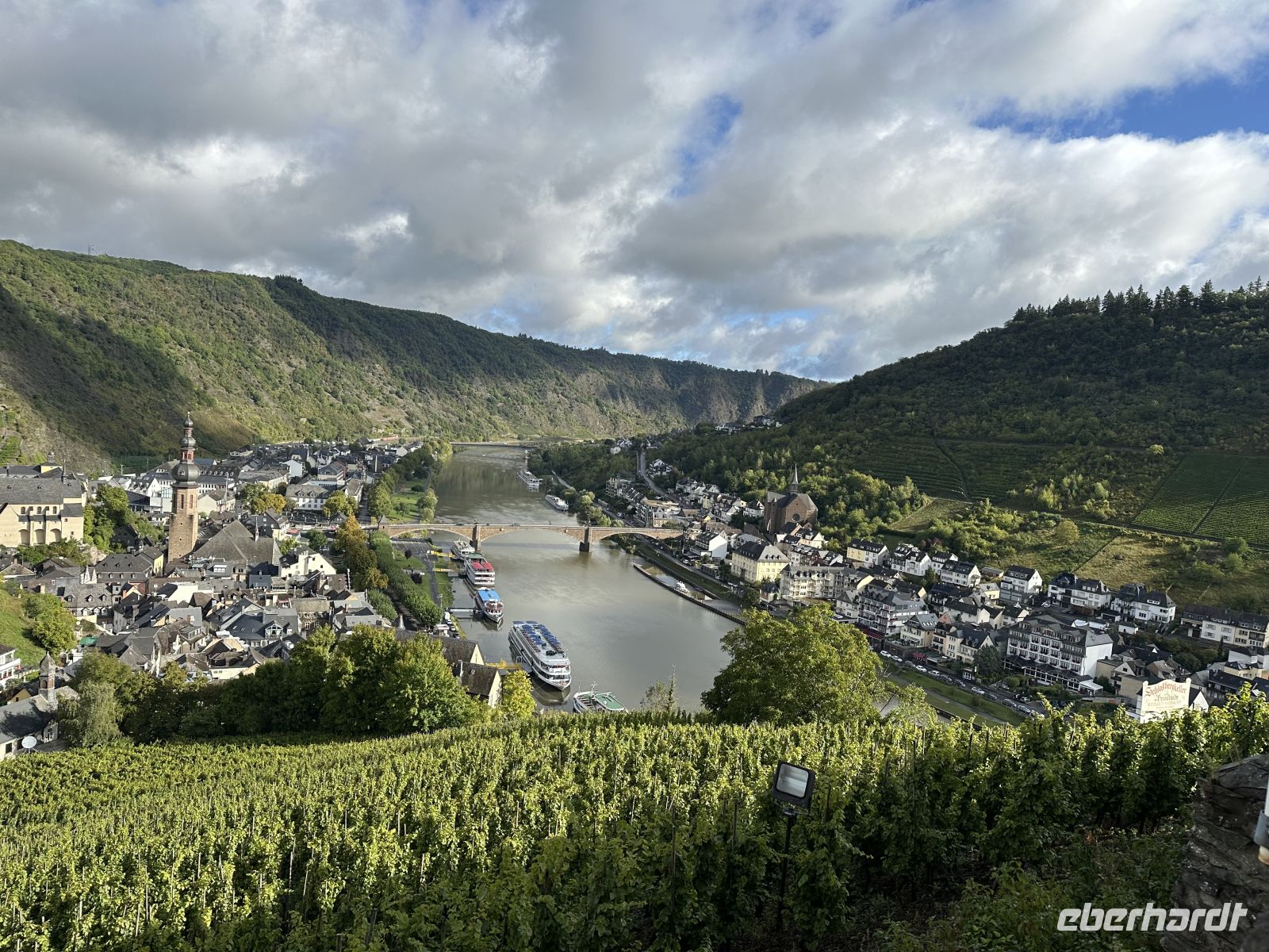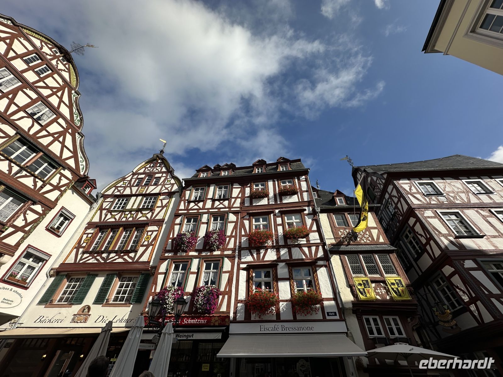 Am Abend erreichen wir Bernkastel-Kues. Vom Oberdeck haben wir einen tollen Blick auf die mittelalterliche Altstadt mit ihren Fachwerkhäusern und die über der Stadt thronende Burg Landshut.