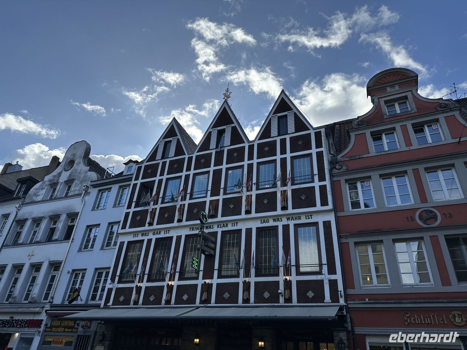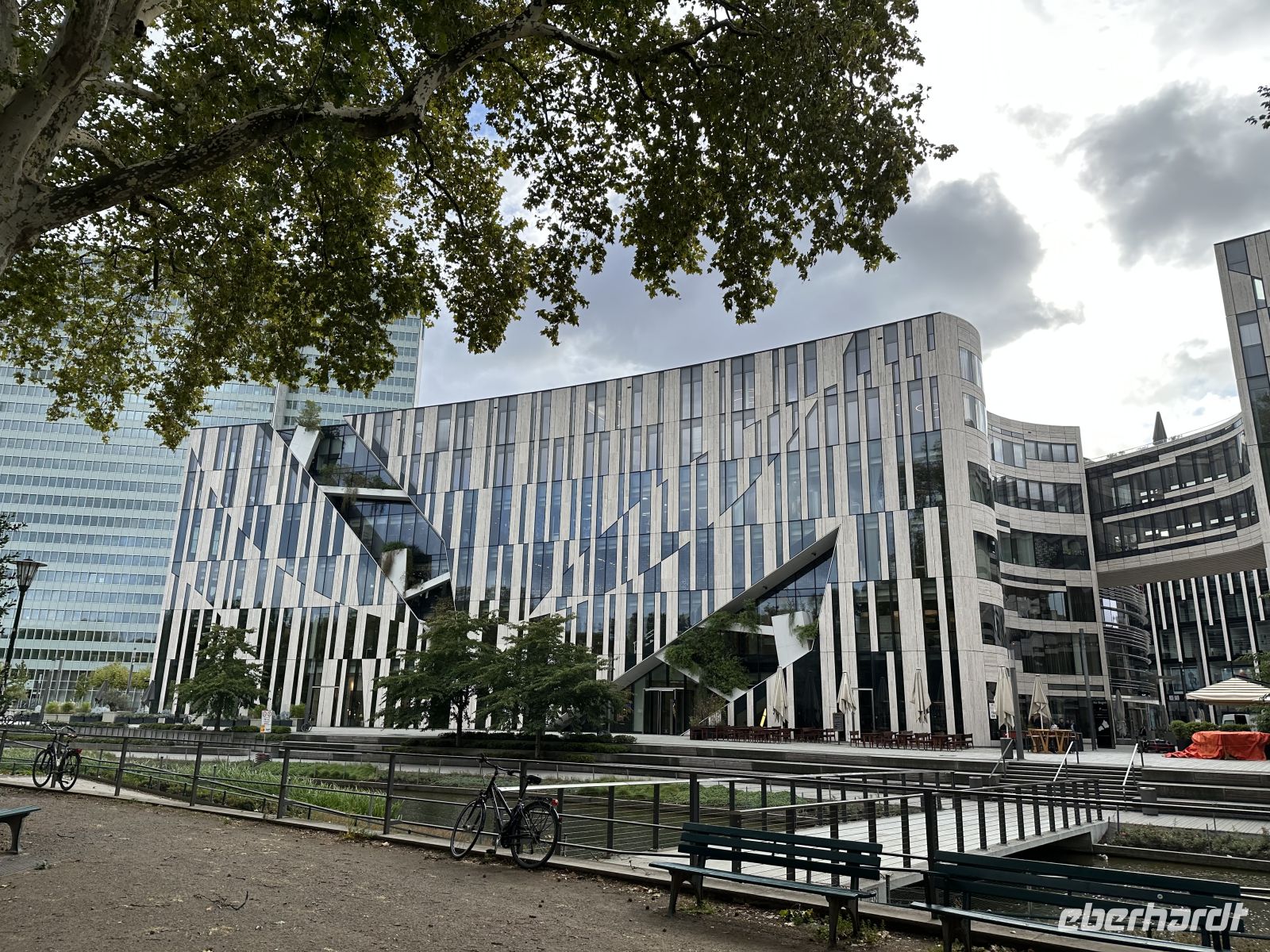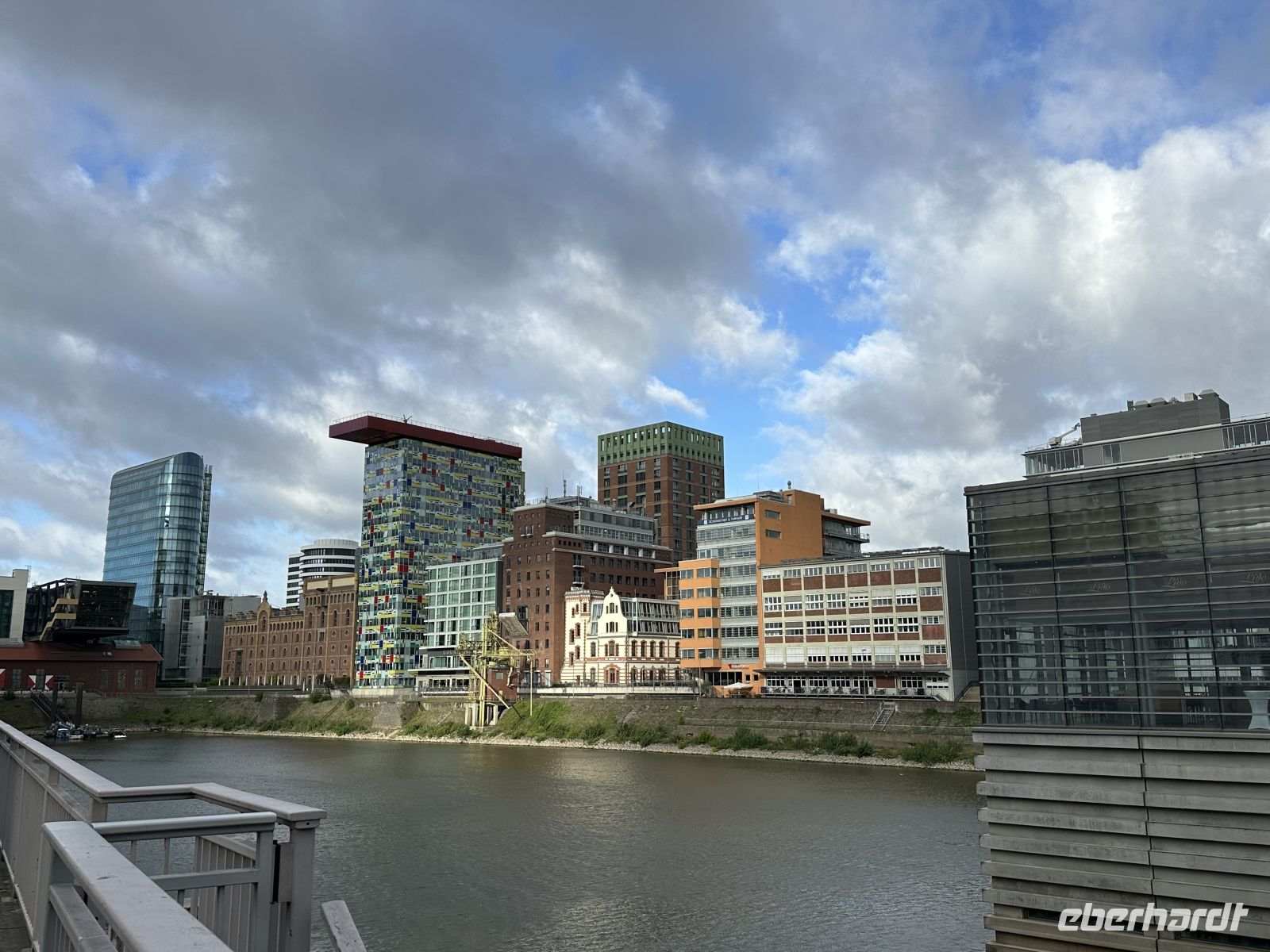 Der Bus wartet in unmittelbarer Nähe des Schiffes, wir starten zunächst mit der Rundfahrt und fahren als erstes zum Medienhafen. Früher gab es hier lange einen Industriehafen, heute ist es ein modernes Stadtviertel mit beeindruckender Architektur. International bekannte Stararchitekten durften sich hier verwirklichen. Das auffälligste Merkmal sind die sogenannten "Gehry-Bauten" am Neuen Zollhof, die mit ihren tanzenden Formen und Fassaden aus unterschiedlichen Materialien (Klinker, weißer Putz und Metall) zu einem Wahrzeichen der Stadt geworden sind. Neben diesen futuristischen Bauten sehen wir auch historische Elemente des alten Hafens, wie zum Beispiel alte Kräne und Lagerhäuser, die in das moderne Stadtbild integriert sind. Unsere Stadtführer berichten, dass der Medienhafen nicht nur ein architektonisches Highlight ist, sondern auch ein wichtiger Wirtschaftsstandort. Zahlreiche Unternehmen aus den Bereichen Medien, Kommunikation, Mode und Beratung haben hier ihren Sitz. Darüber hinaus hat sich das Viertel mit seinen Restaurants, Bars und Cafés zu einem beliebten Treffpunkt für Einheimische und Touristen entwickelt. Weiter geht es für uns nach Monkey Island. „Monkey Island" war eine legendäre Strandbar in Düsseldorf, die sich in den frühen 2000er Jahren großer Beliebtheit erfreute. Sie befand sich auf einer Landzunge am Düsseldorfer Hafen und war bekannt für ihr einzigartiges Konzept, bei dem Tonnen von Sand aufgeschüttet wurden, um ein urbanes Strandgefühl zu schaffen. Die Bar war nicht nur ein beliebter Treffpunkt zum Entspannen am Wasser und zum Sonnenuntergang, sondern auch ein Ort für Kunst und Kultur. Sie wurde vom Kunsthändler Helge Achenbach gegründet und war für ihre lockere Atmosphäre sowie die regelmäßig stattfindenden Partys bekannt. "Monkey Island" existierte allerdings nur für wenige Jahre und musste 2006 dem Bau des Hyatt-Hotels weichen, das heute die Spitze des Medienhafens ziert und zahlreiche bekannte Prominente beherbergt. Zu Fuß spazieren wir durch die Düsseldorfer Altstadt die als Zentrum für Gastronomie, Kultur und Nachtleben bekannt ist. Man sagt international: "die längste Theke der Welt" – ein Spitzname, der auf die außergewöhnlich hohe Dichte von über 260 Bars, Kneipen und Hausbrauereien in den engen Gassen zurückgeht. Wir besichtigen den Burgplatz, das Herzstück der Altstadt. Hier steht der Schlossturm, das einzige Überbleibsel des ehemaligen Düsseldorfer Schlosses, das heute das Schifffahrtmuseum beherbergt. Auch mit der Tradition der Brauhäuser werden wir bekannt gemacht, allerdings nur theoretisch, eine Verkostung gibt es nicht. In einem der Brauhäuser wird das berühmte Düsseldorfer Altbier gebraut und ausgeschenkt. Brauereien wie "Im Füchschen", "Uerige" und "Zum Schlüssel" sind feste Institutionen, in denen man das traditionelle Bier direkt vom Fass probieren kann, wenn man die Zeit dafür hat. Wir kehren zurück zum Schiff und setzen unsere Reise fort.