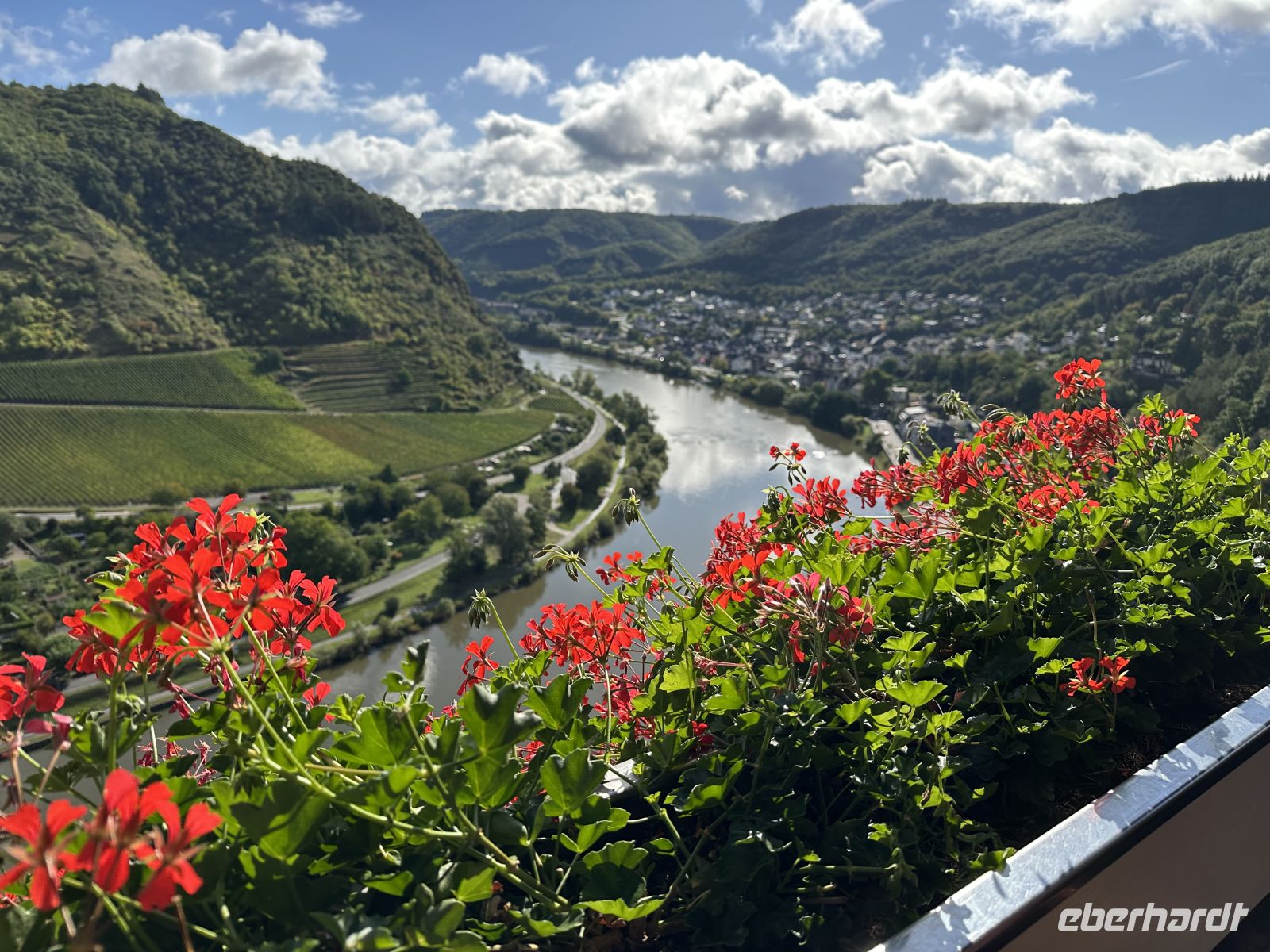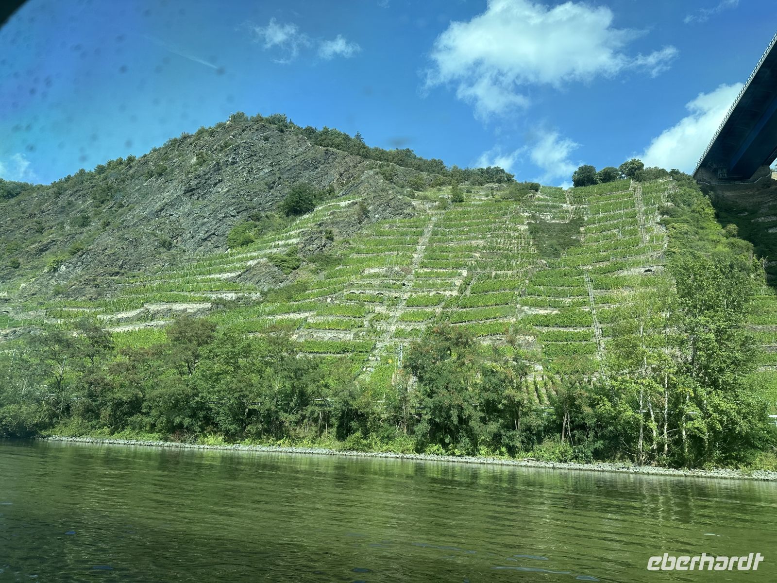 Am Nachmittag gleitet unsere MS Thurgau Saxonia bei schönstem Wetter durch das romantische Moseltal.