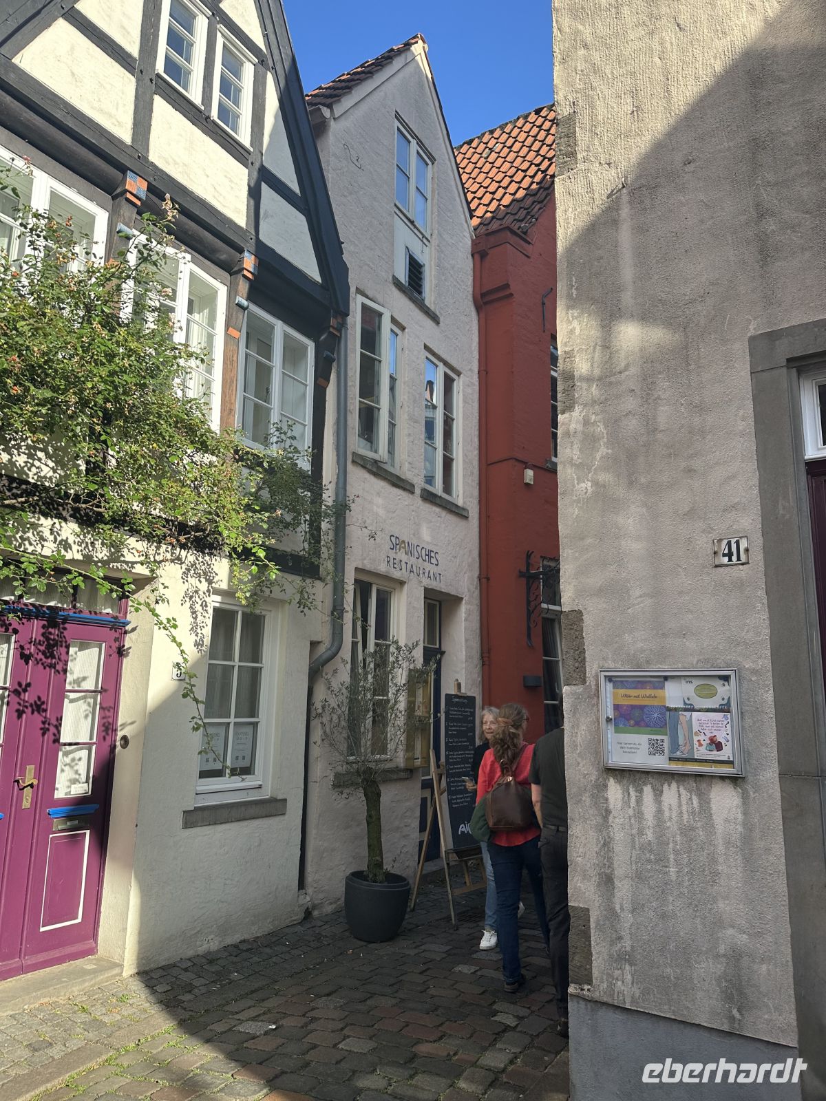 Und die Palmieri-Orgel: Ein seltenes, kleines Instrument aus Neapel. Die Vielfalt dieser Orgeln ermöglicht es, Musik aus den verschiedensten Epochen auf den jeweils passendsten Instrumenten aufzuführen. Wir verlassen den Dom und besuchen ein weiteres Wahrzeichen der Stadt: Die Bremer Stadtmusikanten. Helga erzählt uns freundlicherweise noch einmal das Märchen dazu. Nun wissen wir wieder, warum Esel, Hund, Katze und Hahn übereinander stehen. Wir setzen unseren Spaziergang fort und erreichen das Schnoorviertel, das älteste Stadtviertel der Hansestadt. Sein Name leitet sich vom niederdeutschen Wort "Schnur" ab, da sich die kleinen, dicht aneinandergereihten Fachwerkhäuser aus dem 15. und 16. Jahrhundert wie auf einer Schnur aufreihen. Die engen Gassen und schmalen Gebäude schaffen ein historisches und malerisches Ambiente. Das Viertel war ursprünglich die Heimat von Seeleuten, Fischern und Handwerkern. Heute ist es bekannt für seine kleinen Kunsthandwerksläden, urigen Kneipen, charmanten Cafés und Restaurants. In der Nähe zu unserem Schiff verabschieden wir uns von Helga. Nun besteht die Möglichkeit, an Bord zurückzukehren oder Bremen auf eigene Faust weiter zu erkunden.