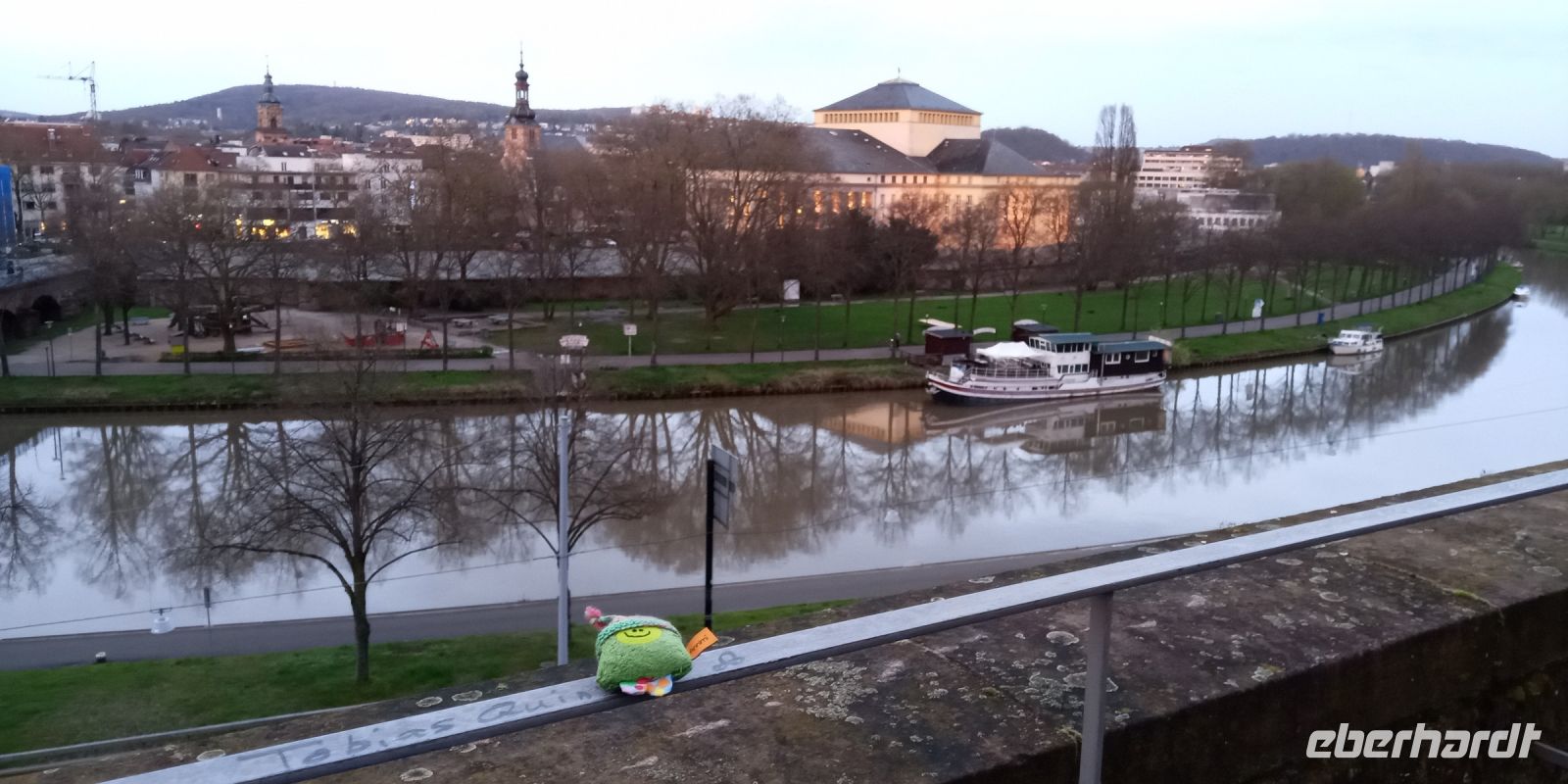 8 Uhr morgens starteten wir am Flughafen Dresden zusammen mit unserem Busfahrer Jan, vom Busunternehmen Satra Eberhardt GmbH, und den ersten Reisegästen, die Reise ins flächenmäßig kleinste Bundesland Deutschlands, dem Saarland. Das Saarland war nach dem 2.Weltkrieg bis 1956 ein eigener Staat und wurde erst 1957 zum 11.Bundesland der damaligen Bundesrepublik Deutschland. Wir begrüßten auch die weiteren Gäste, welche in Nossen, Chemnitz und an der Raststätte Teufelstal dazu stiegen. Bei blauem Himmel und Sonnenschein, ging es entspannt weiter über die A4 vorbei an Eisenach und Bad Hersfeld bis zur Raststätte Rimberg, wo wir unsere Mittagspause einlegten. Gut gestärkt, setzten wir unsere Reise fort. Rund um Frankfurt(Main) bekamen wir doch ein bisschen den Osterreiseverkehr zu spüren. Und so fuhren wir eine alternativ Route über Wiesbaden und Mainz. Am späten Nachmittag erreichten wir schließlich nach 650 km unser Ziel, das Mercure Hotel in Saarbrücken. Hier erwarteten uns auch schon die letzten 2 Reisegäste, welche mit der Bahn angereist waren. Nachdem die Zimmer bezogen wurden, konnte wer Lust hatte anschließend mit mir noch einen ersten kleinen Spaziergang entlang der Saar absolvieren. Denn das Hotel liegt direkt an der Saarufer-Promenade, welche regelrecht zum flanieren einlädt. Die Saar ist mit sein ca. 246km der längste Nebenfluss der Mosel. Auf dem anderen Saarufer sahen wir aber auch das laute Band der Saar, die Stadtautobahn A620, welche bei Hochwasser den Namen „größte Nebenfluss der Saar“ trägt. Zum Abschluss wurde unser erster Erkundungsspaziergang noch von einem schönen Sonnenuntergang im Saarbrücker Bürgergarten begleitet. Am Abend erwartete uns schließlich unser erstes 3-Gänge-Menü Abendessen im Hotel. Dabei sorgte unser Kellner gleichzeitig noch für gute Laune.